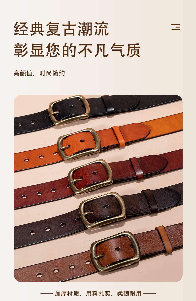 재고 남성 벨트 가죽 탑 레이어 순수 Cowhide 빈티지 구리 버클 캐주얼 올 매치 청바지 벨트 공장 아울렛스토어 가기