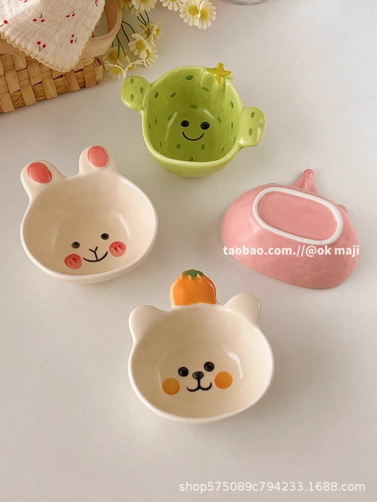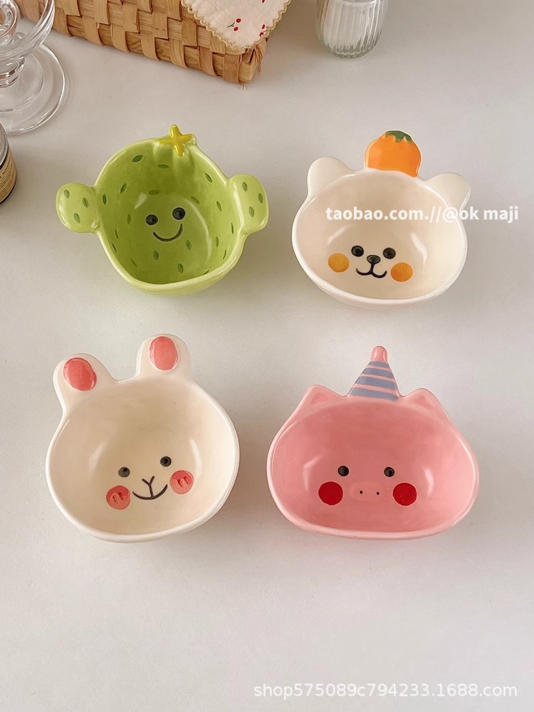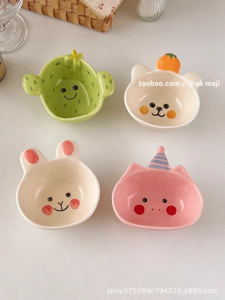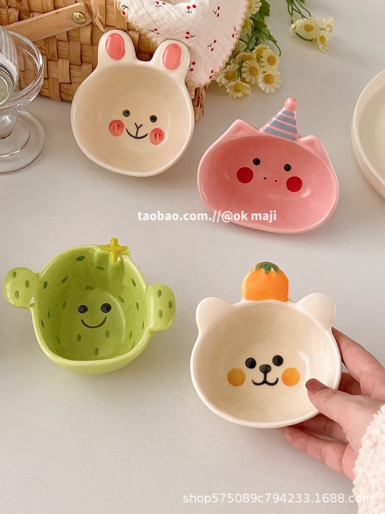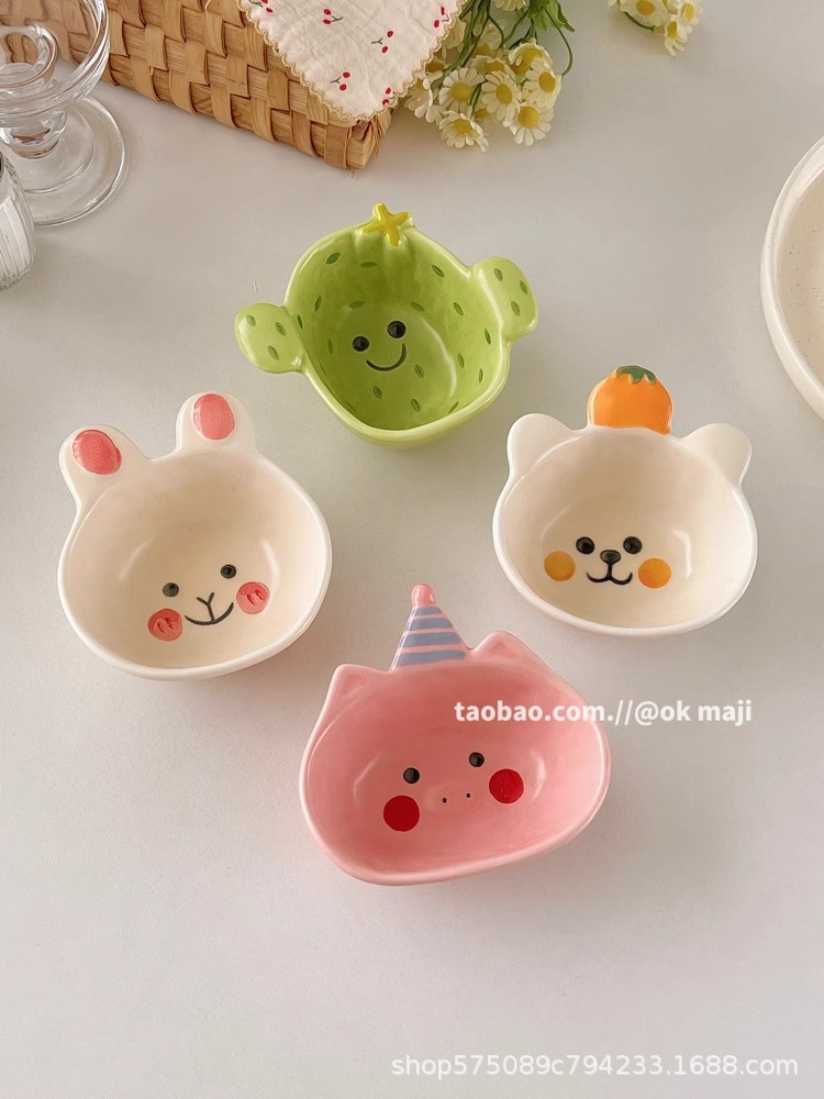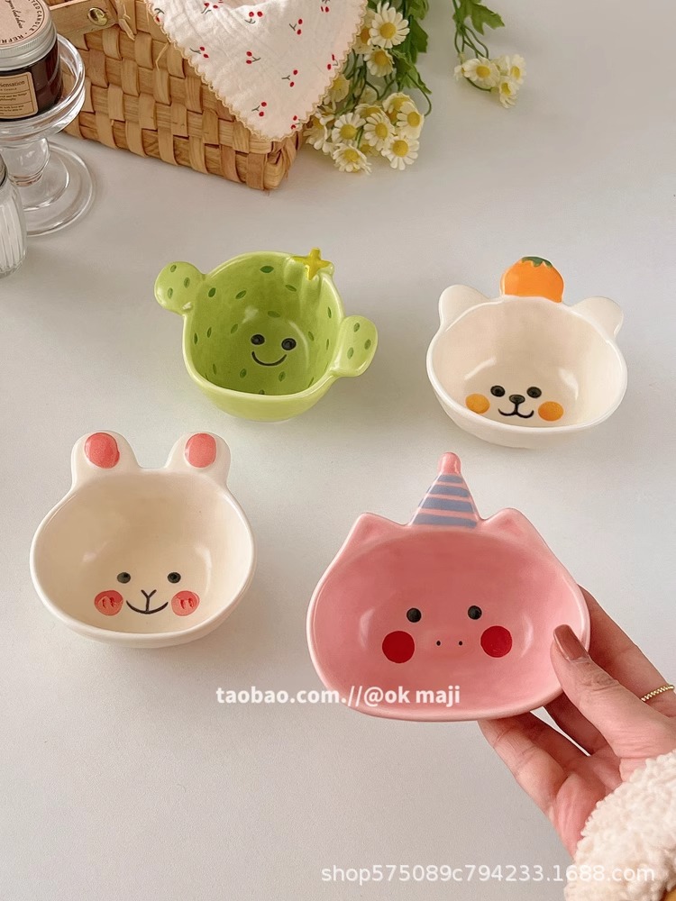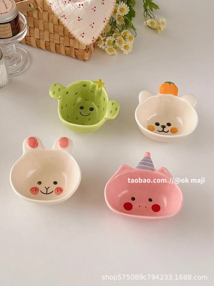 OK maji 귀여운 보완 그릇 아침 식사 그릇 가정용 세라믹 요구르트 작은 그릇 맛 접시 딥 조미료 접시 작은 접시