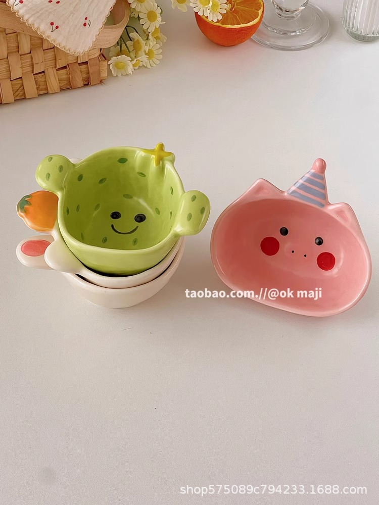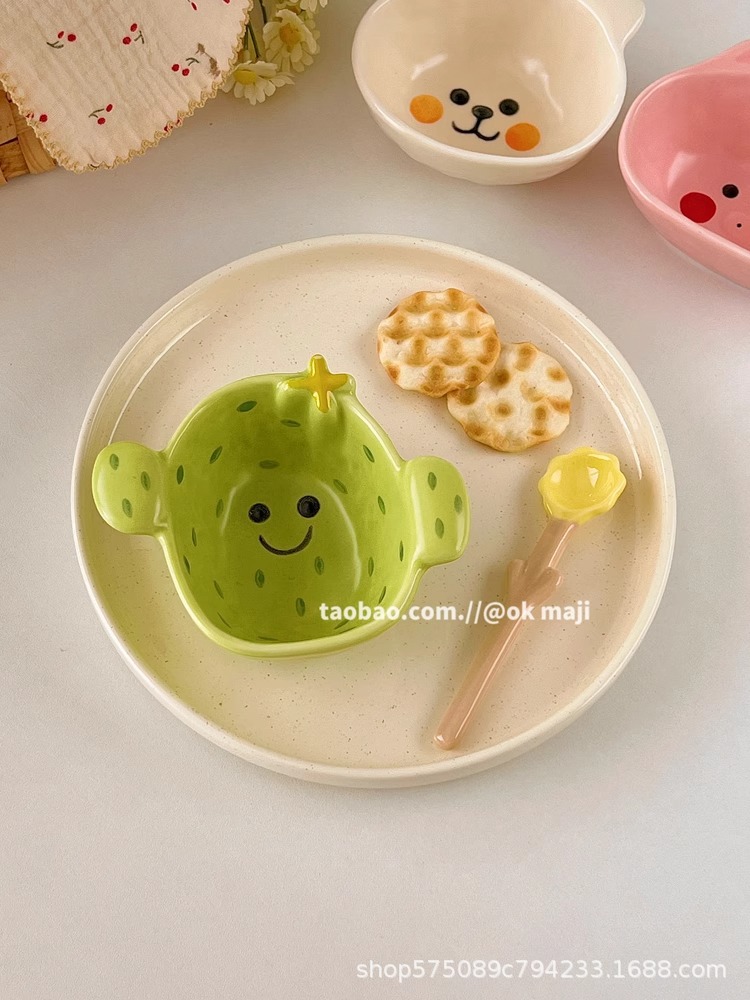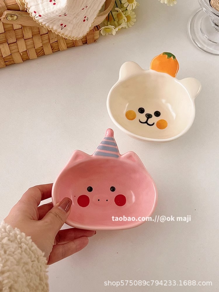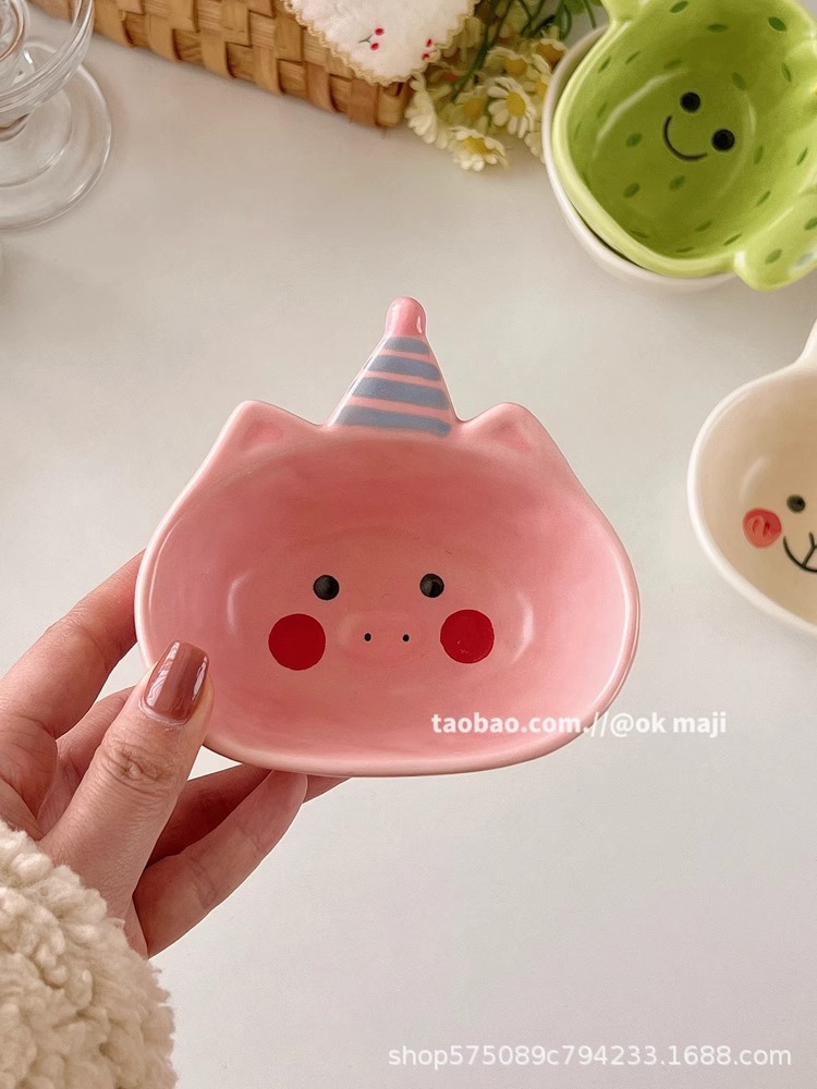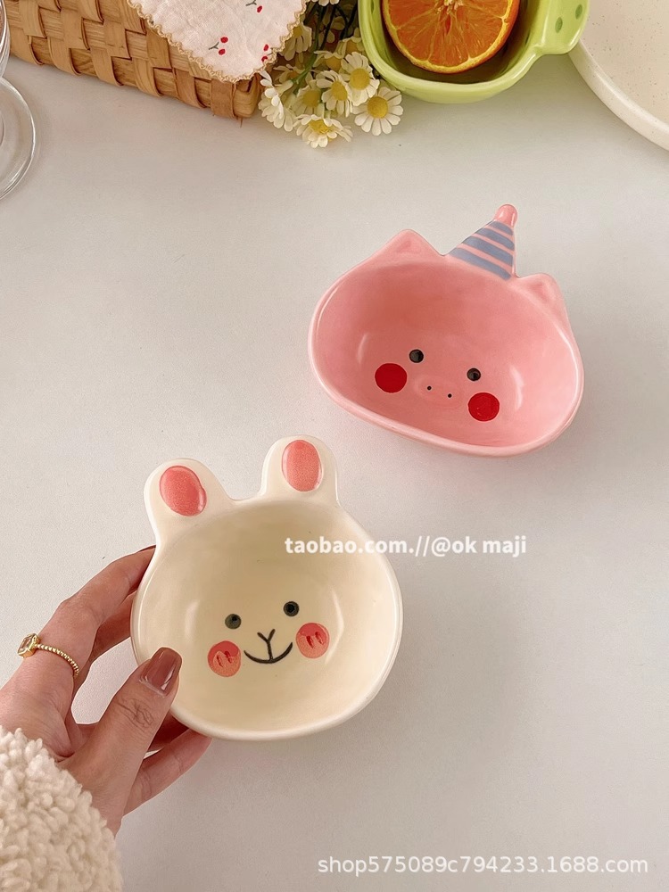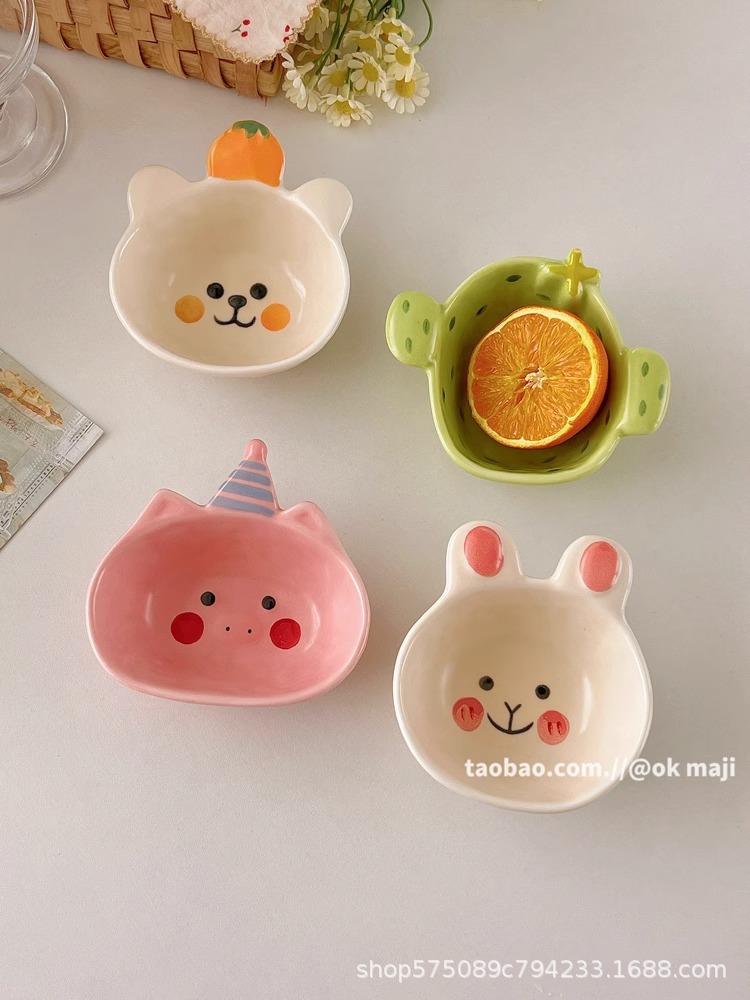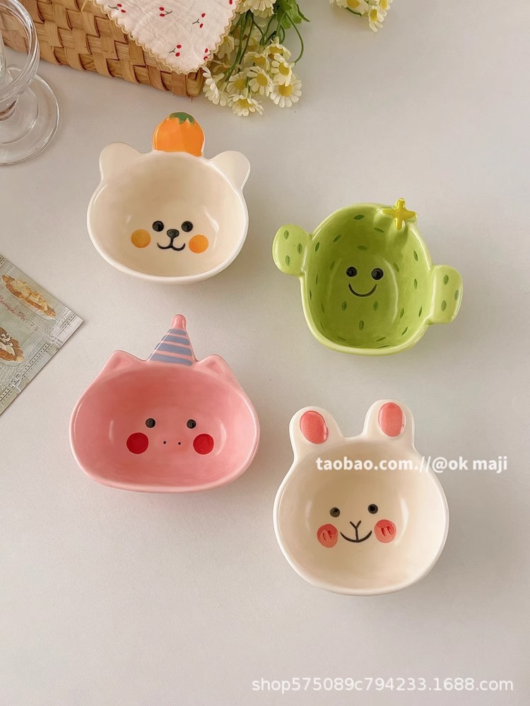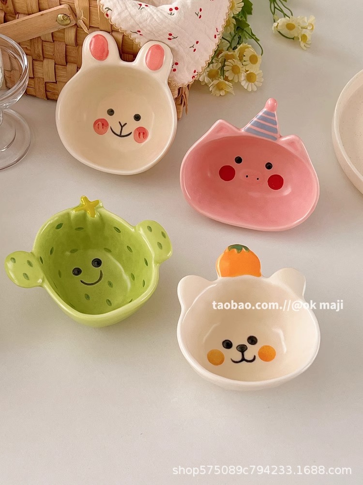 OK maji 귀여운 보완 그릇 아침 식사 그릇 가정용 세라믹 요구르트 작은 그릇 맛 접시 딥 조미료 접시 작은 접시