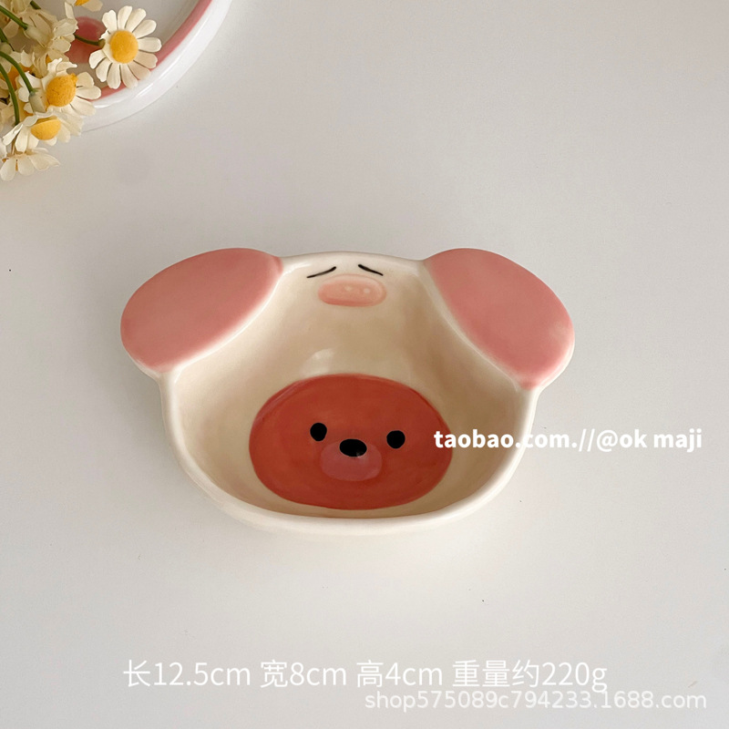 • 만화 음식 그릇 - 돼지 머리띠 강아지