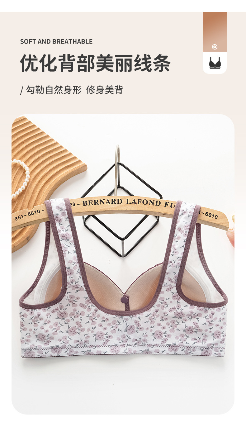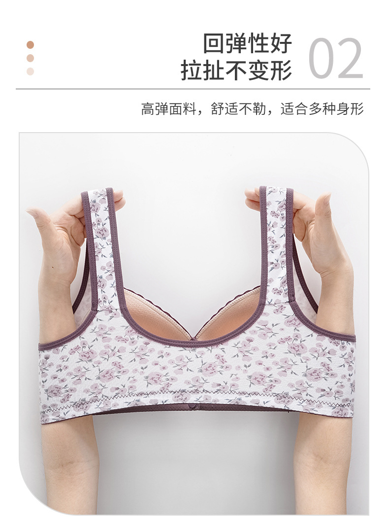 스틸 링이없는 중년 및 노인 어머니를위한 새로운 면화 브래지어 여성을위한 고정 컵 모양의 조끼 스타일 속옷