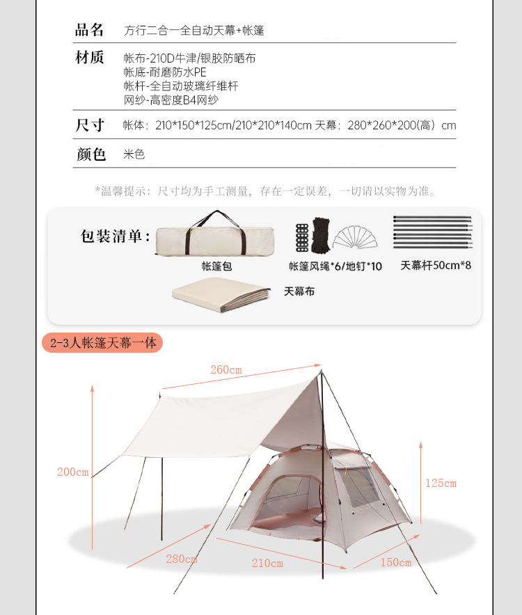 텐트 야외 캠핑 설치가 필요 없는 자외선 차단제 새로운 대형 캐노피 투인원 빠른 개방형 방수 피크닉 천막스토어 가기