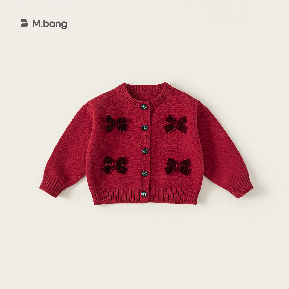 유바오 아동복 여아 리본 스웨터 가디건 가을 겨울 레드 신상 아기 새해옷 니트 자켓