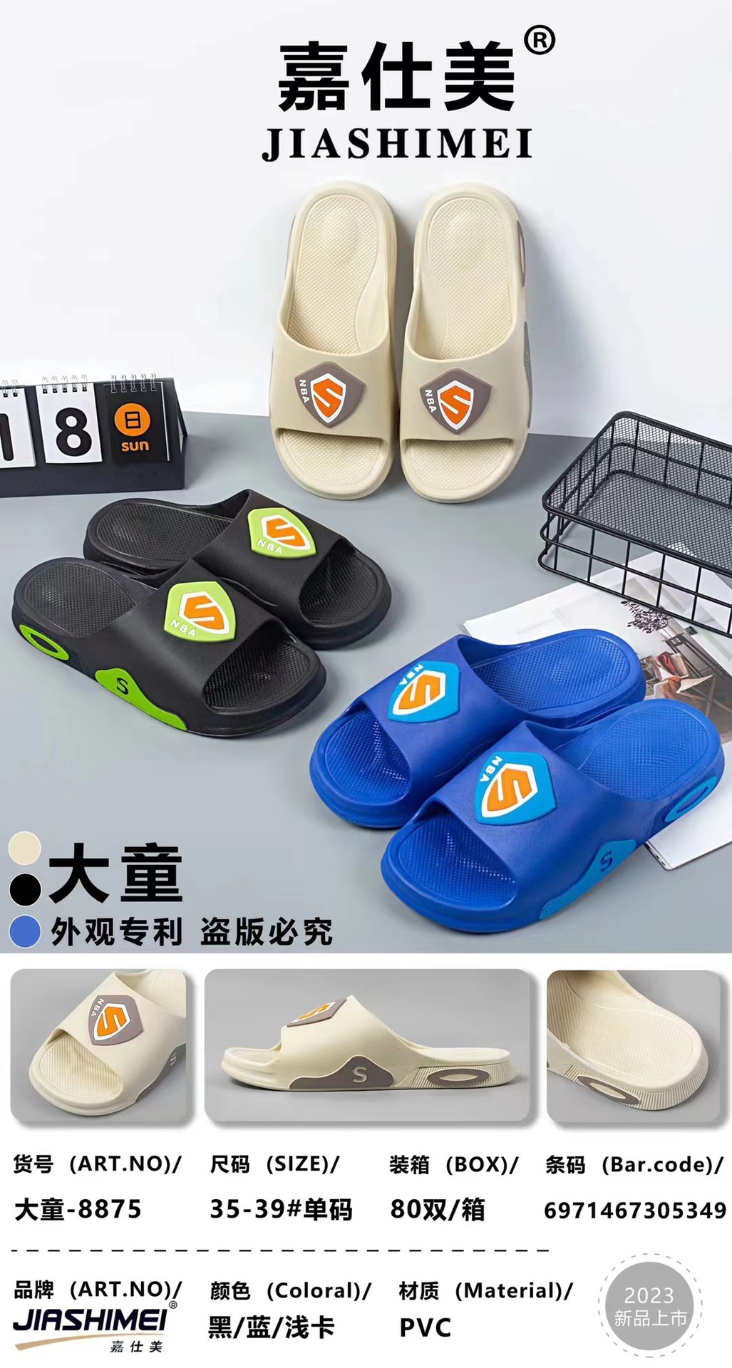 Jiashimei 2023 새로운 큰 어린이 스포츠 슬리퍼 공장 직접 배치 미끄럼 방지 편안한 부드러운 바닥 외부 착용 홈 슬리퍼