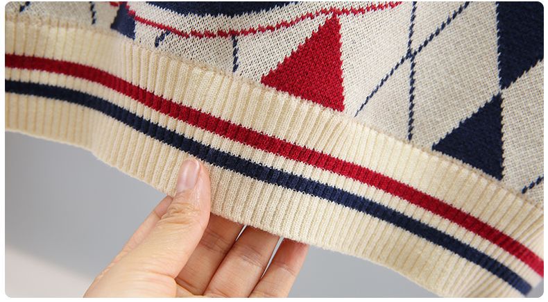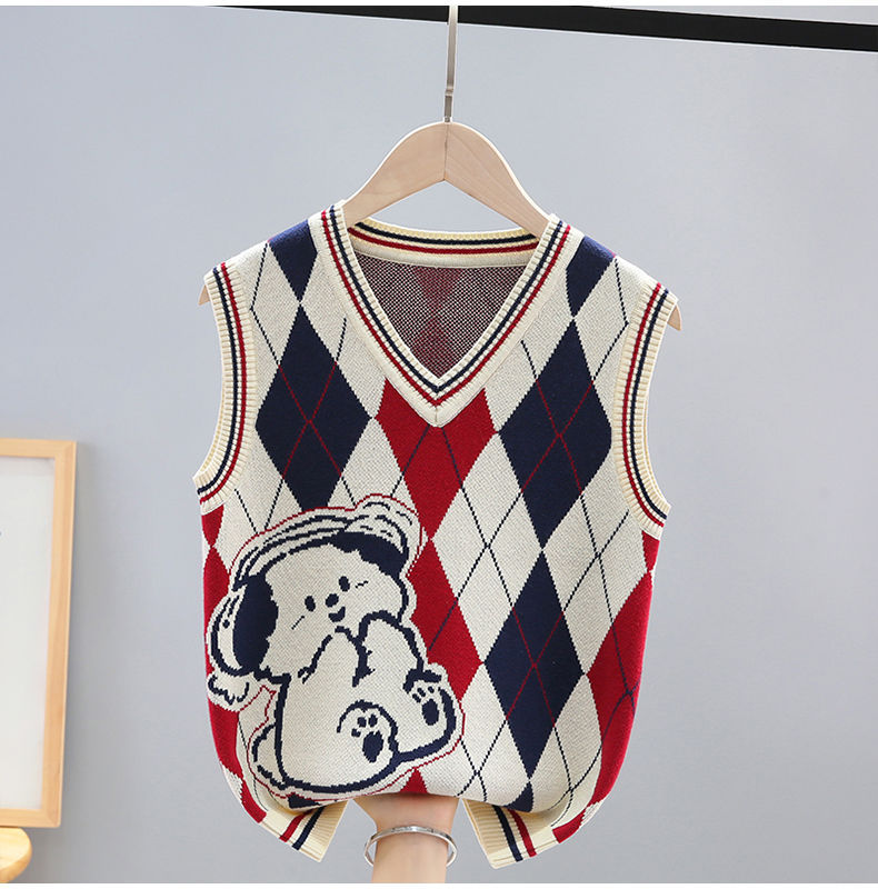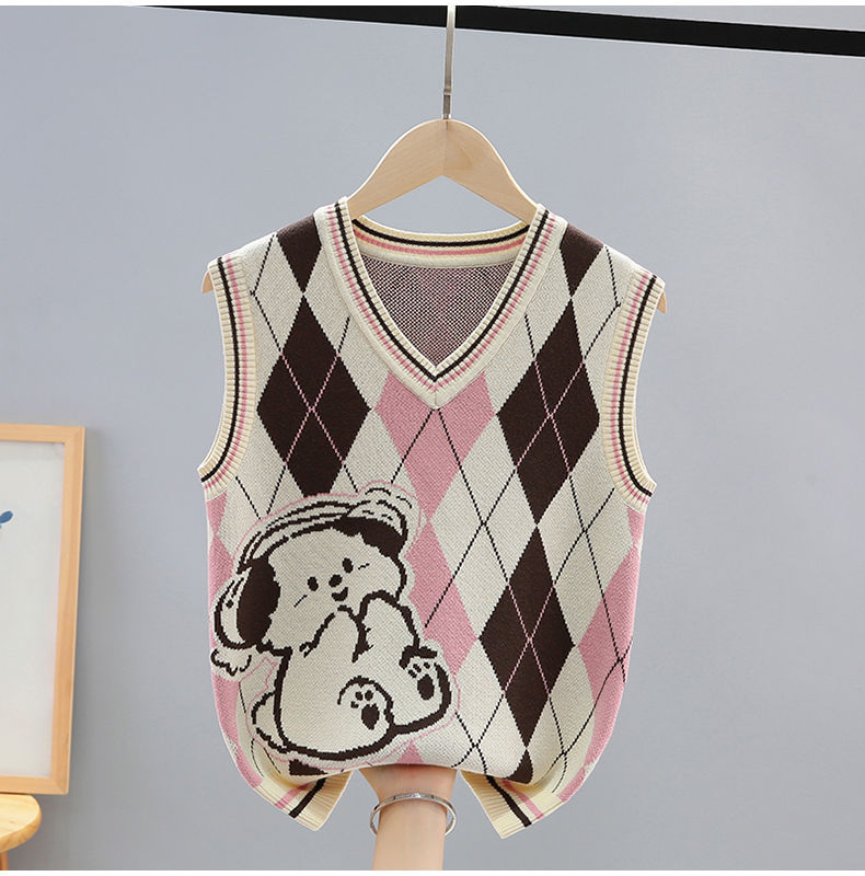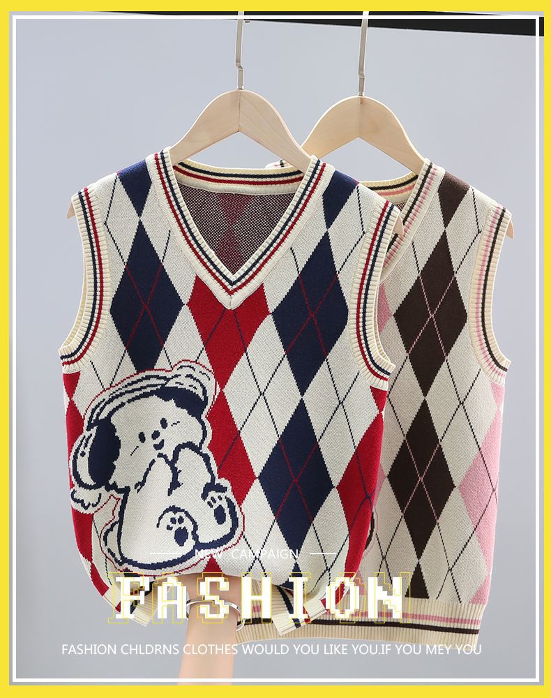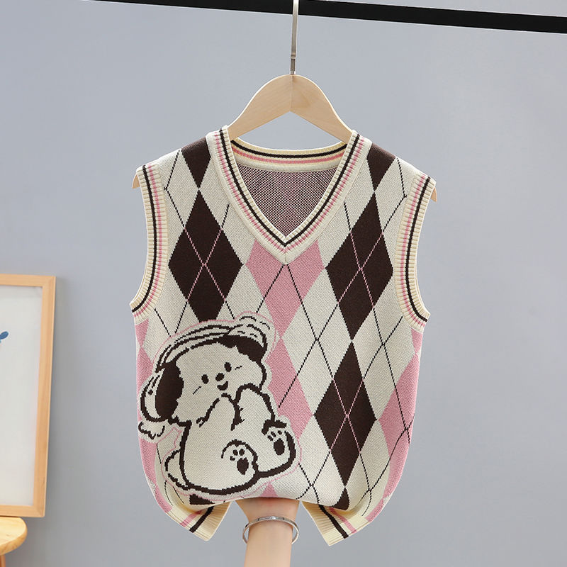 소녀 서양식 스웨터 조끼 어린이 대학 스타일 만화 봄과 가을 V-Neck 조끼 어린이 니트 스웨터