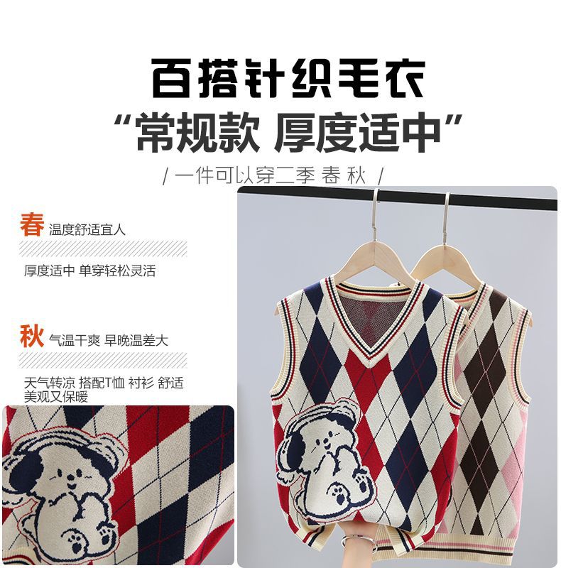 소녀 서양식 스웨터 조끼 어린이 대학 스타일 만화 봄과 가을 V-Neck 조끼 어린이 니트 스웨터스토어 가기