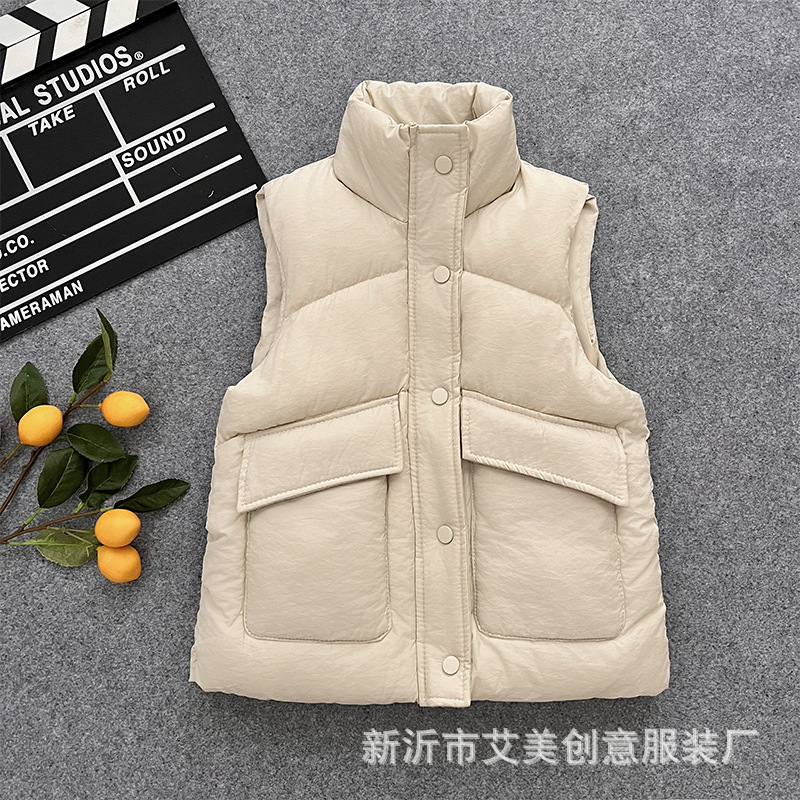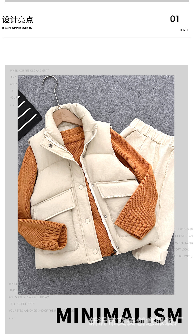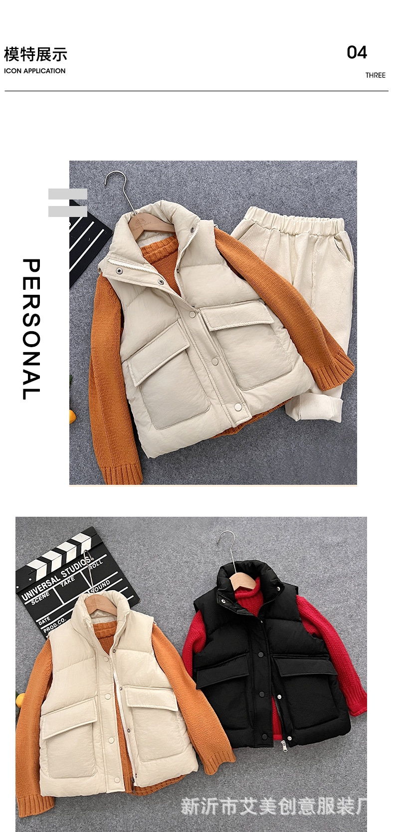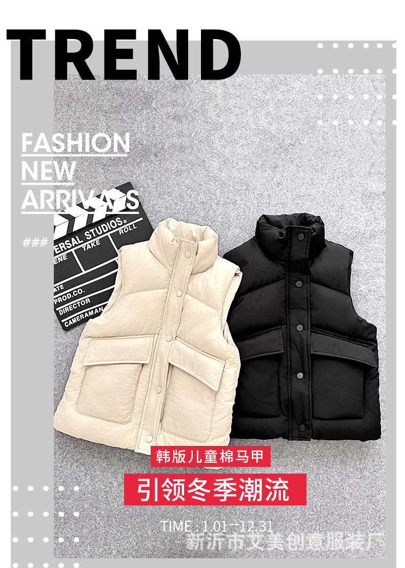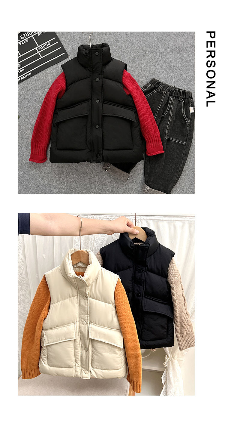 두꺼운 솜조끼 겨울 한국 어린이 느슨한 빵 조끼 단색 따뜻한 조끼 패션 재킷 도매