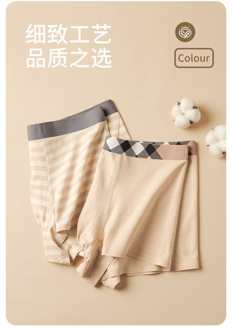 컬러풀한 면 남성 속옷, 고급 신장산 무염색 사각팬티, 중간 허리, 무봉제, 통기성, 5A 항균 가랑이, 사각팬티