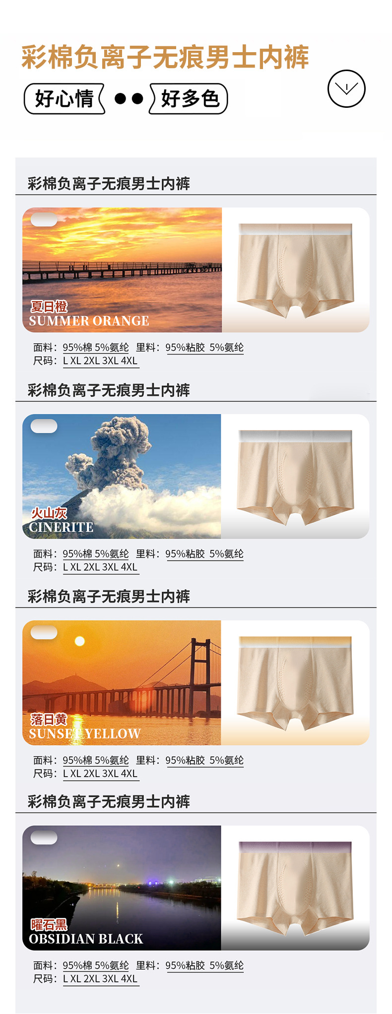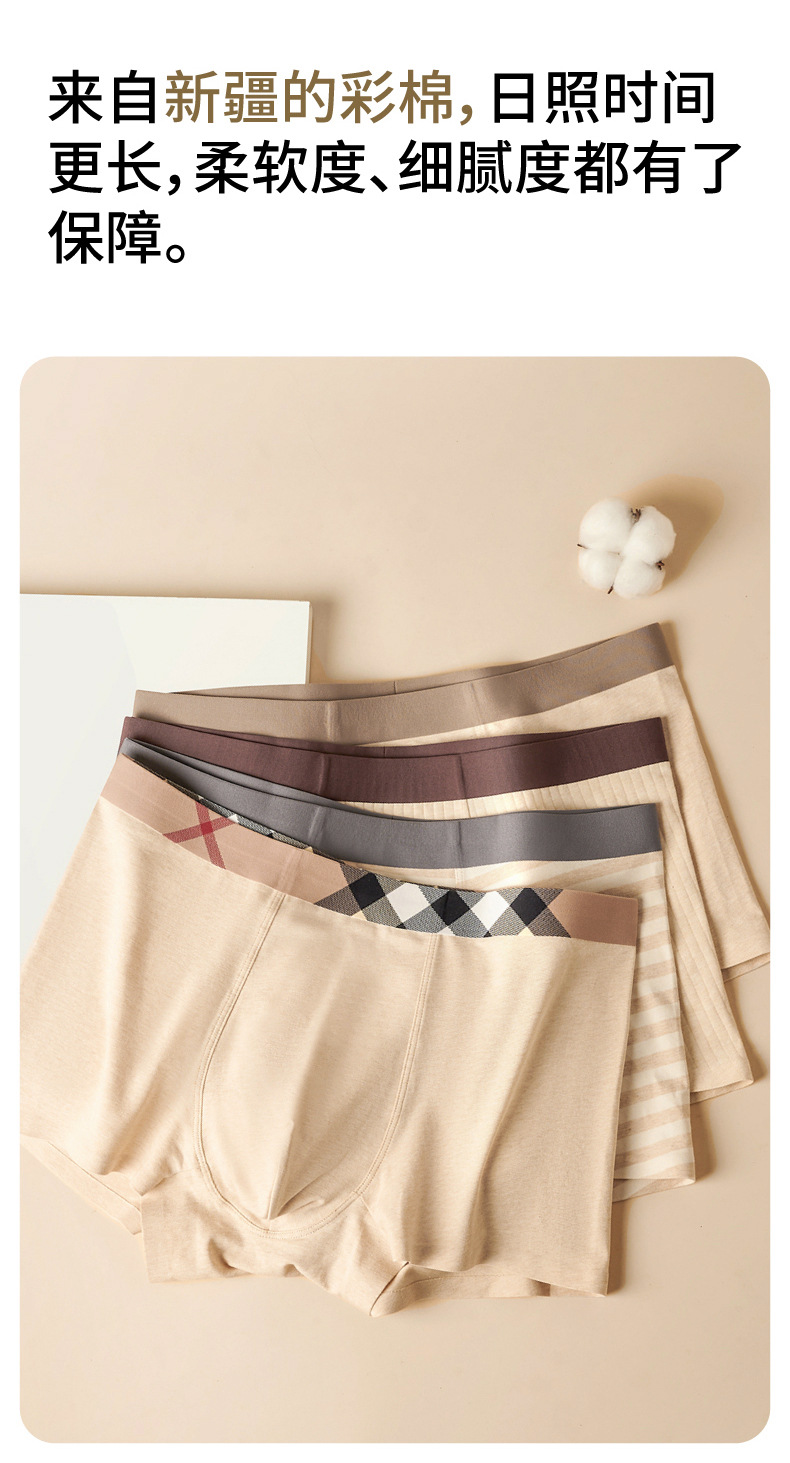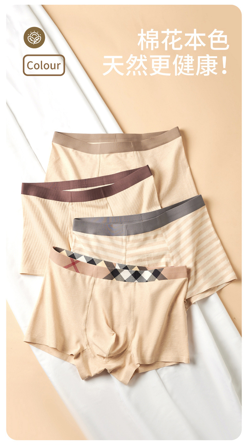 컬러풀한 면 남성 속옷, 고급 신장산 무염색 사각팬티, 중간 허리, 무봉제, 통기성, 5A 항균 가랑이, 사각팬티스토어 가기