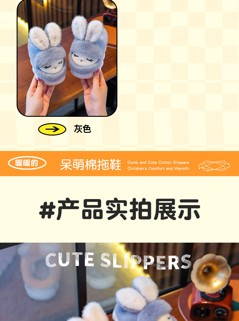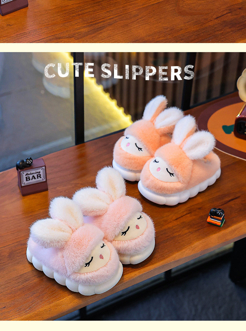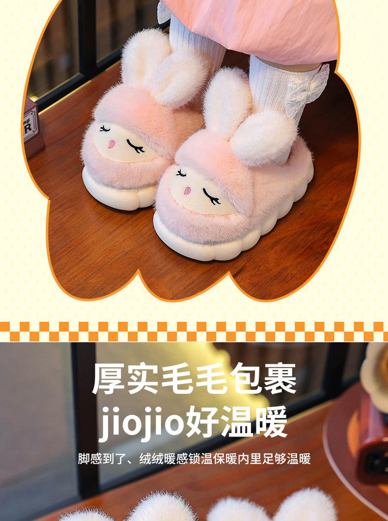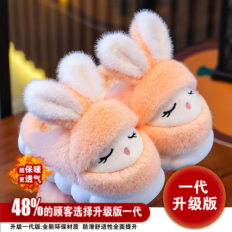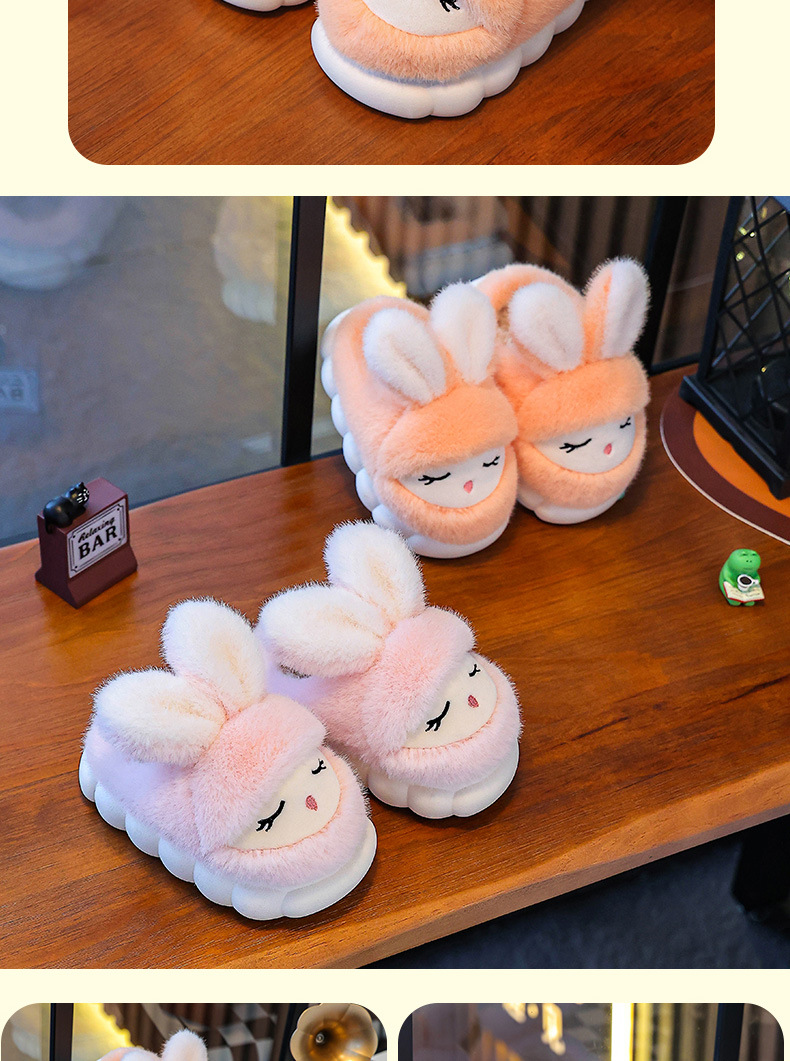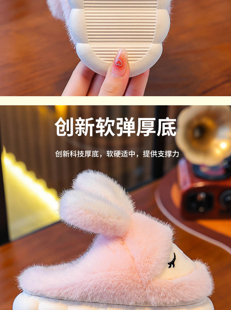 겨울 어린이 면화 슬리퍼 귀여운 토끼 따뜻한 기모 소녀 부모-어린이 홈 미끄럼 방지 플랫폼 아기 면화 신발스토어 가기