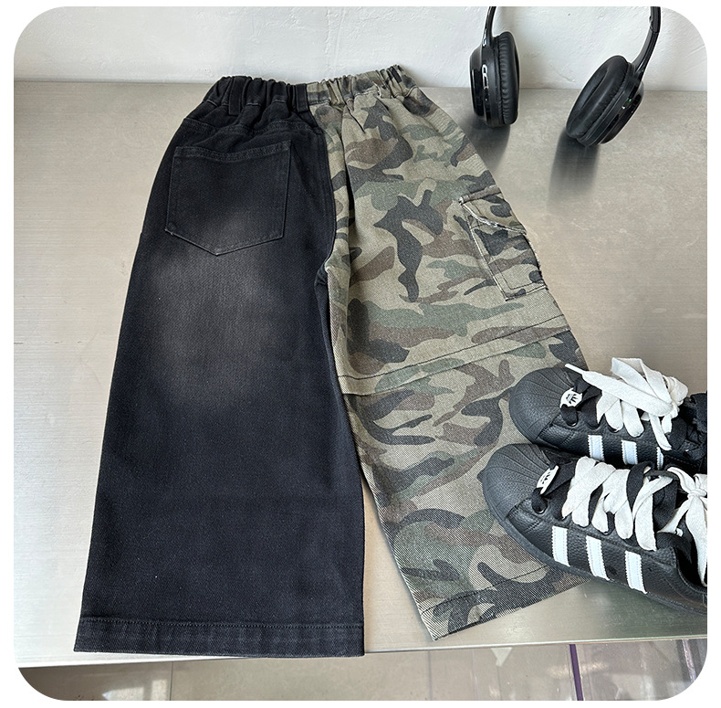Baoquan 의류 어린이 봄, 가을 중대형 어린이 스트리트 댄스 트렌디 AB 버전 위장 작업복 캐주얼 루즈 스트레이트 청바지스토어 가기