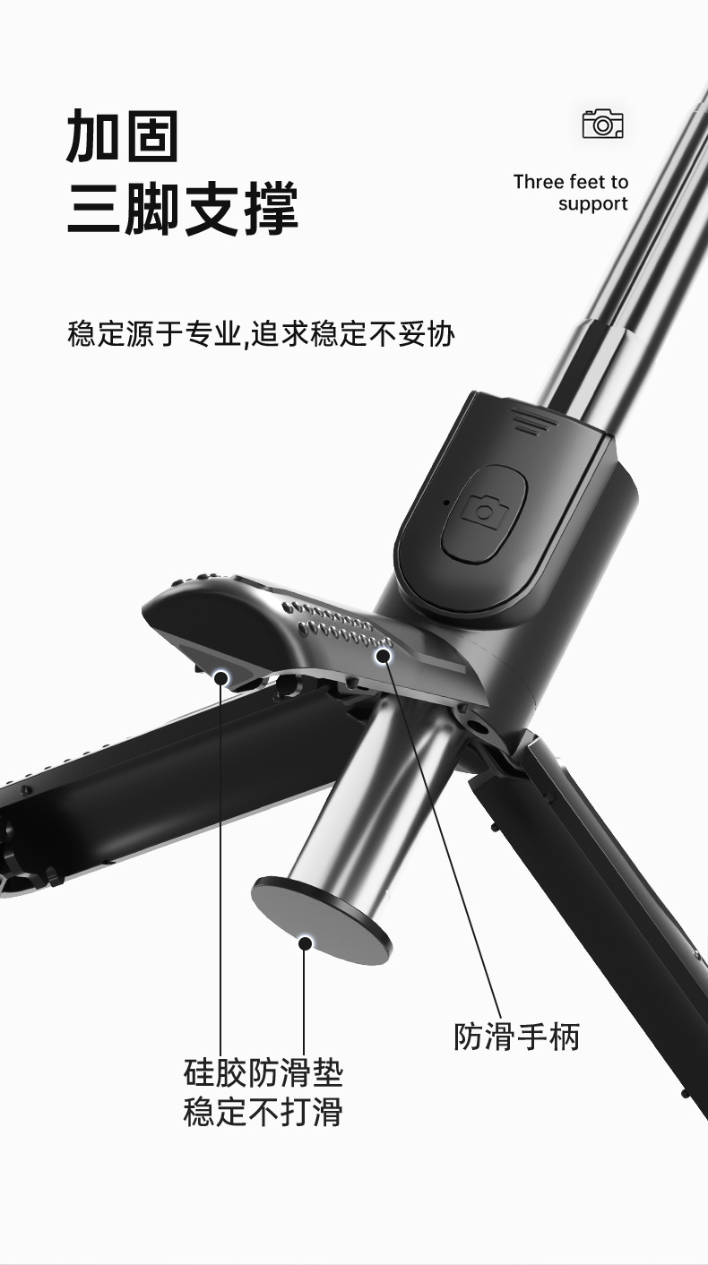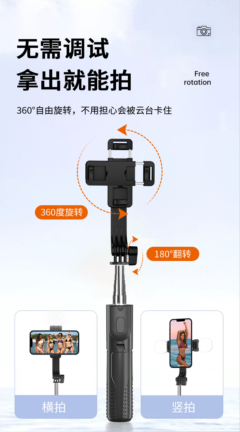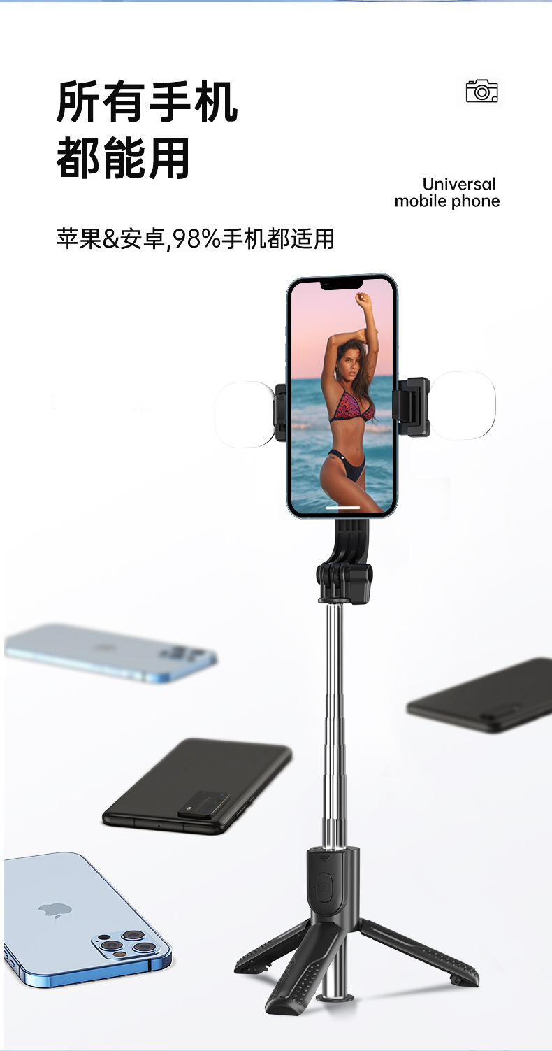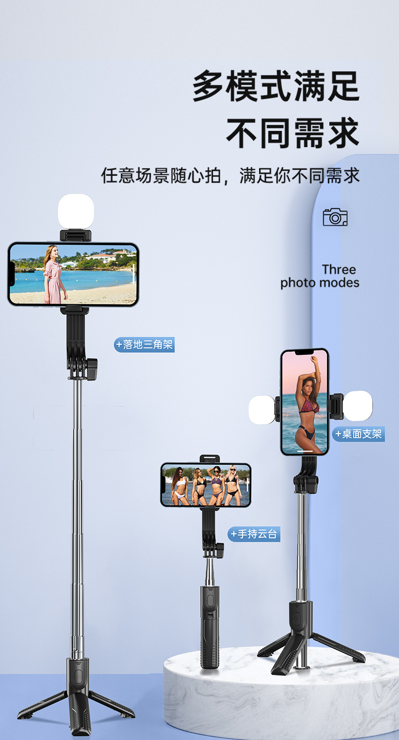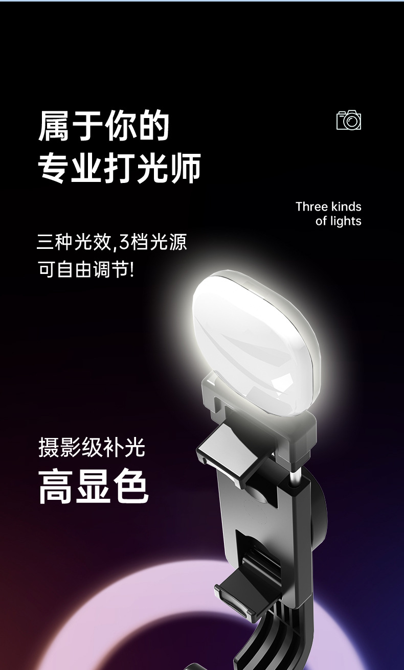 新款抖音手机拍照补光灯一体式蓝牙自拍杆三脚架便携桌面直播支架