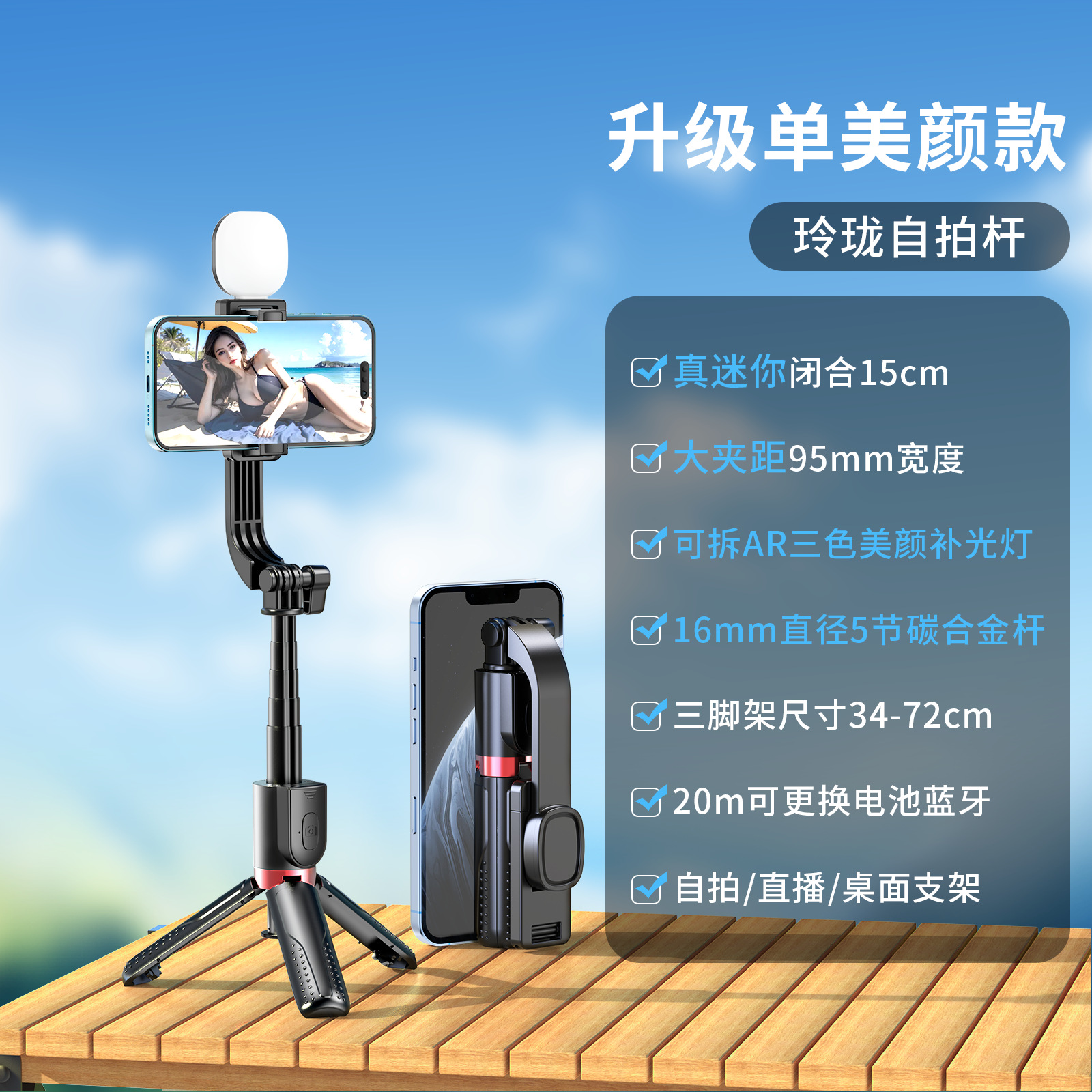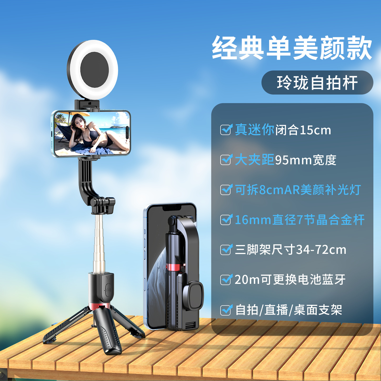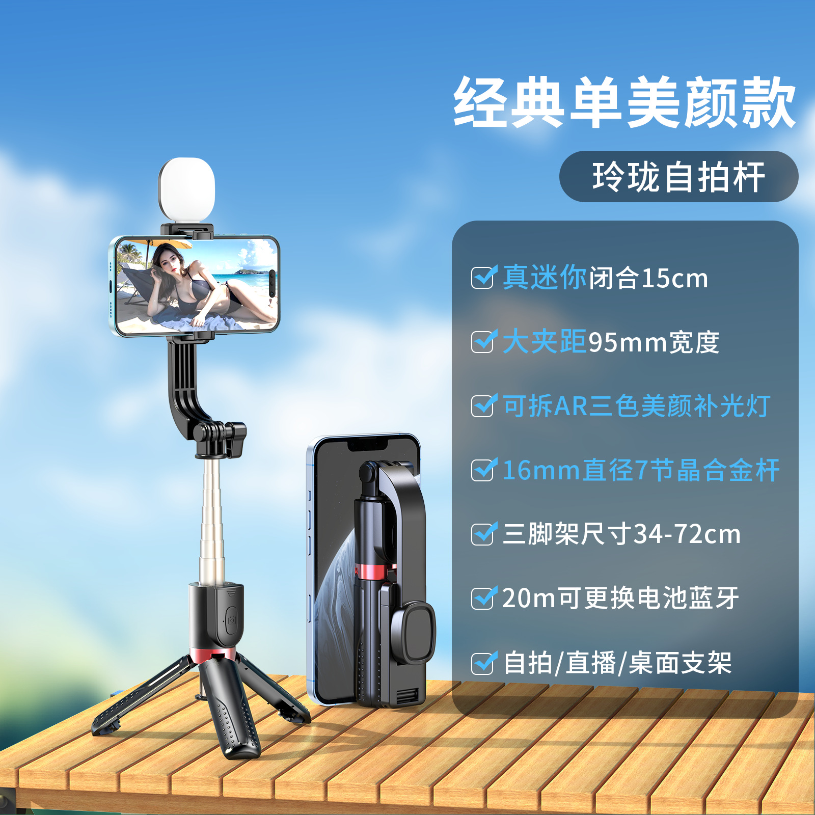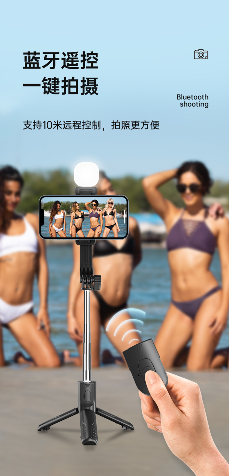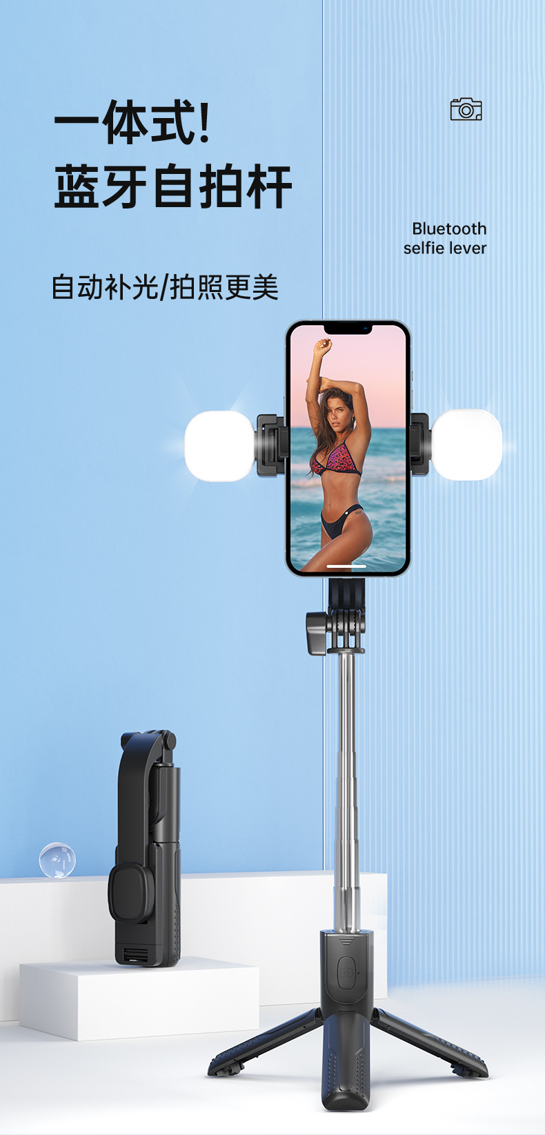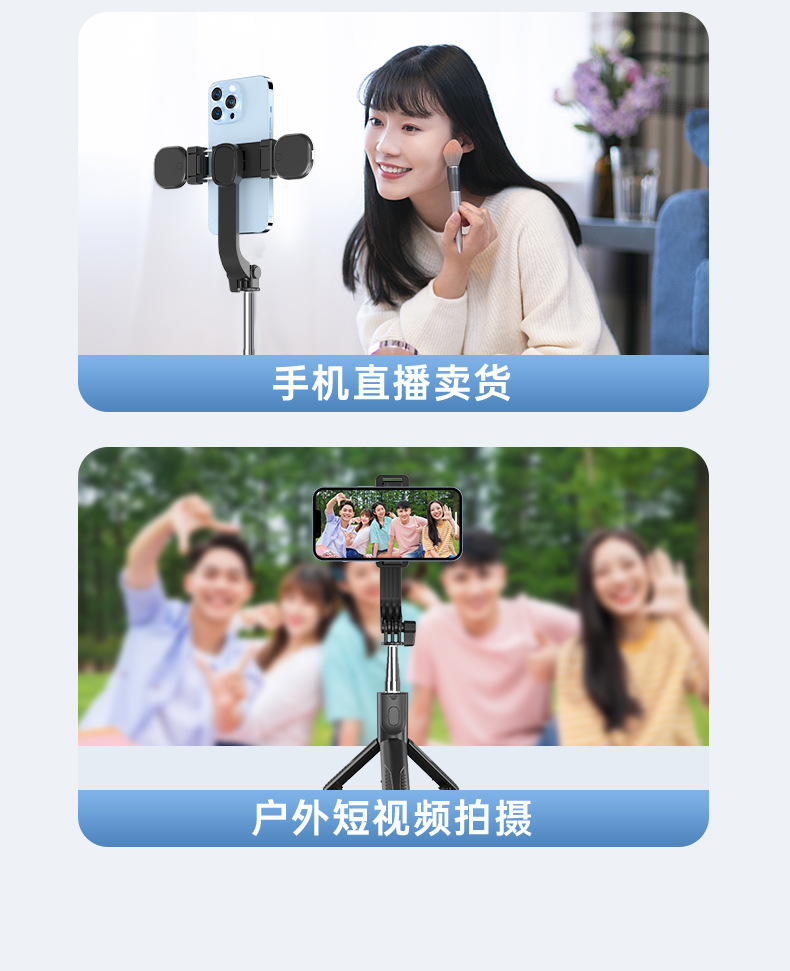 新款抖音手机拍照补光灯一体式蓝牙自拍杆三脚架便携桌面直播支架