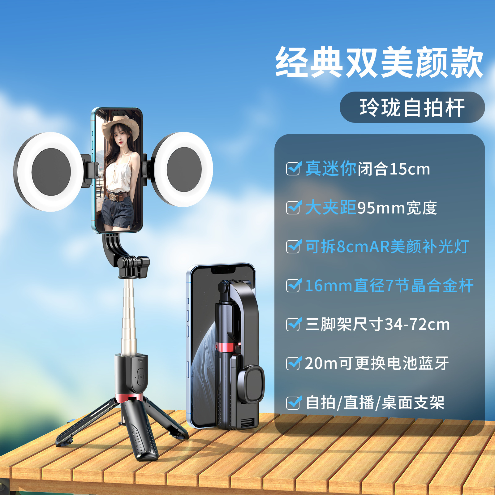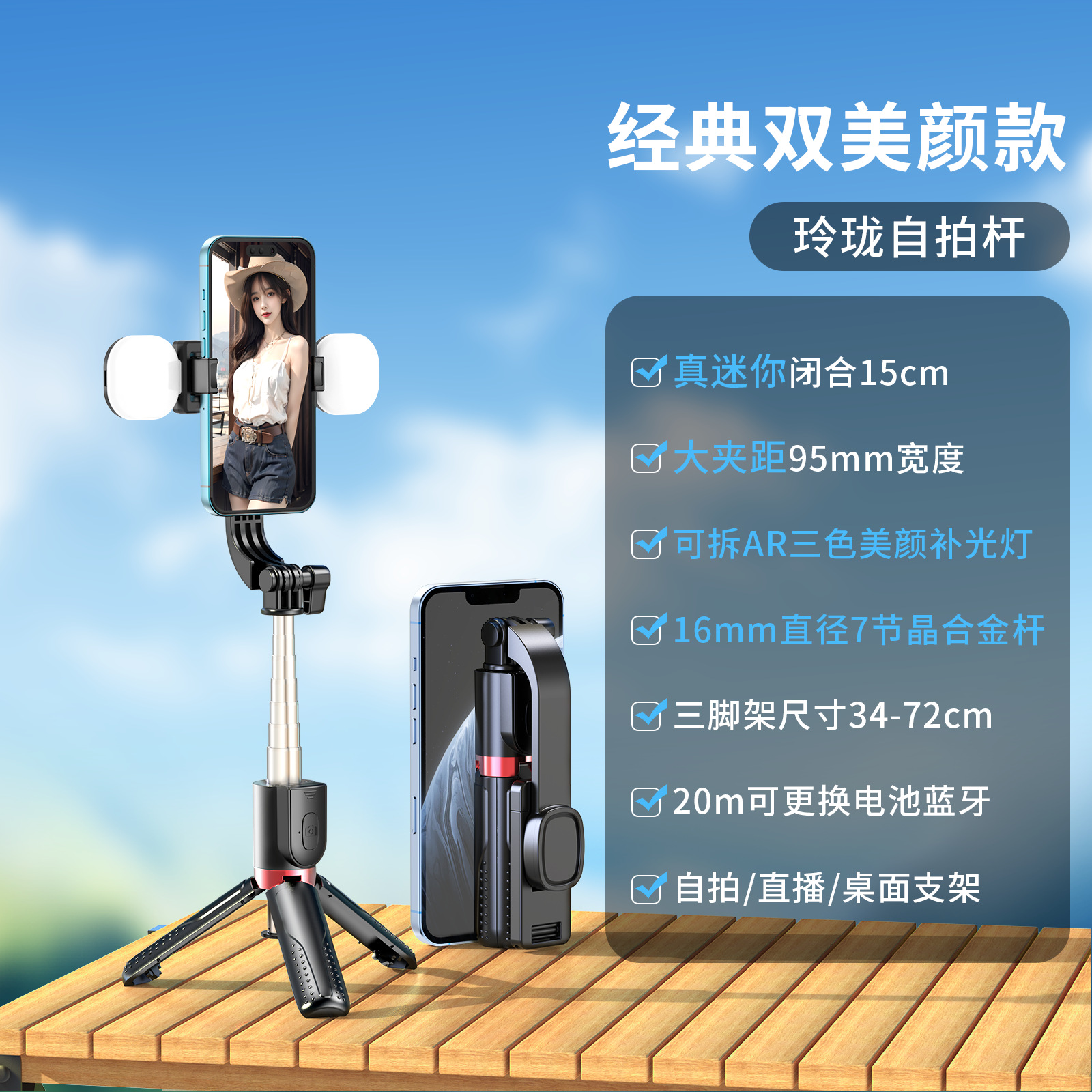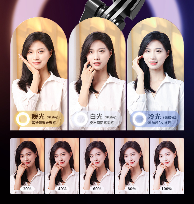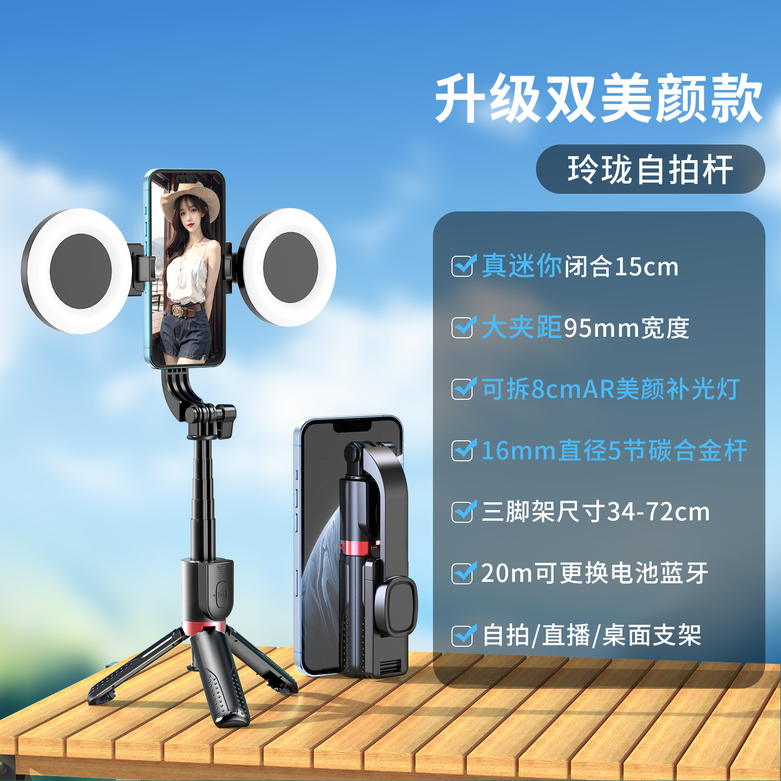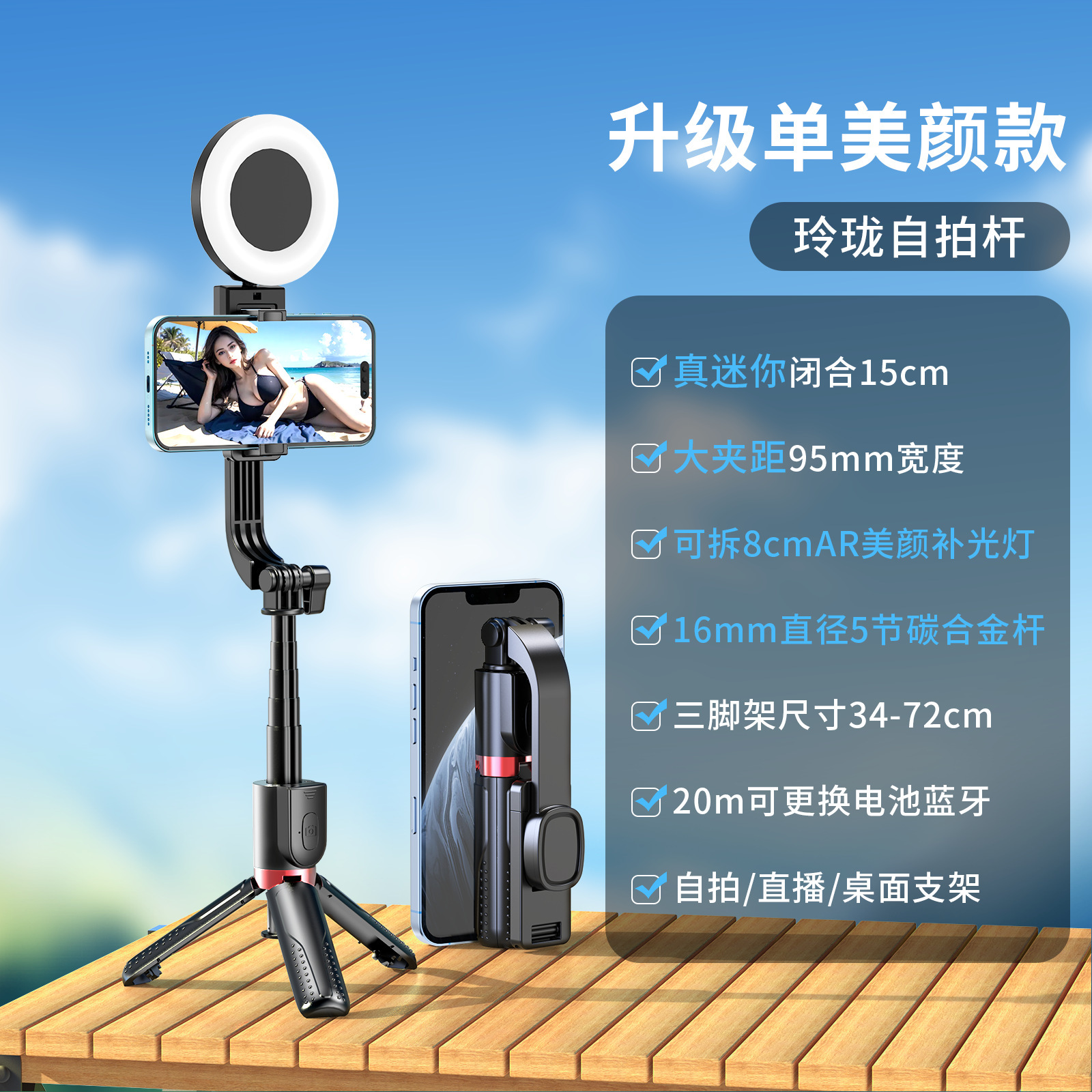 新款抖音手机拍照补光灯一体式蓝牙自拍杆三脚架便携桌面直播支架