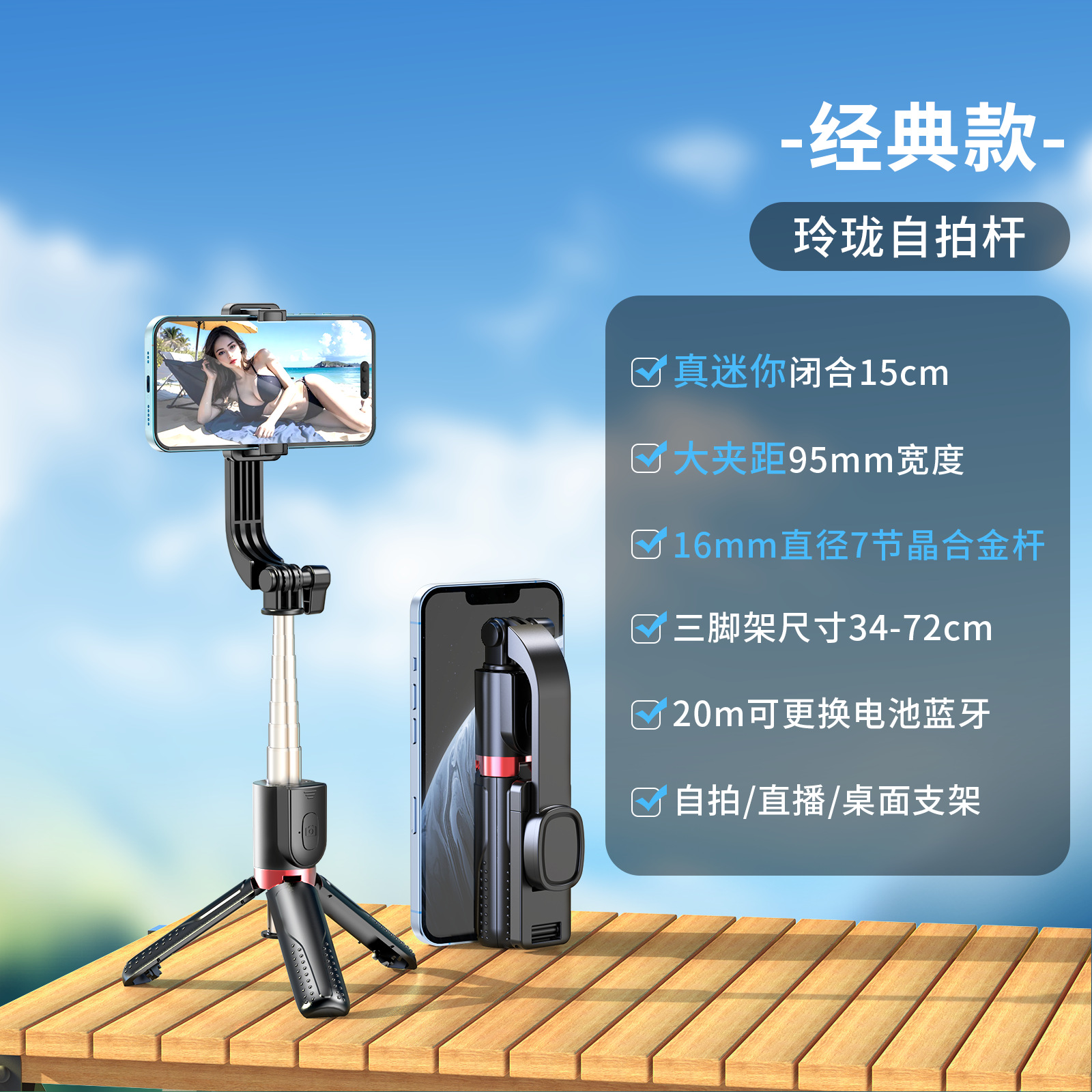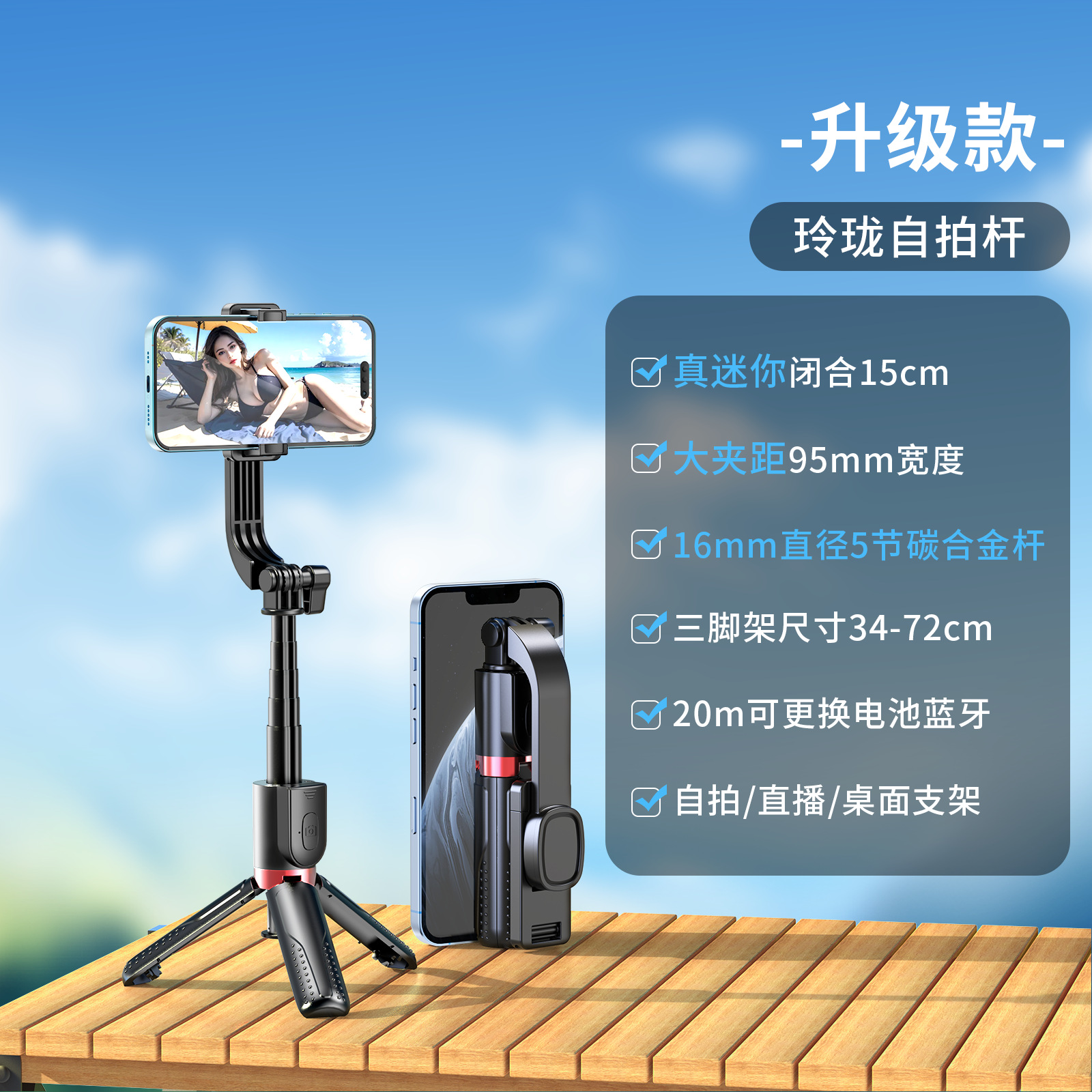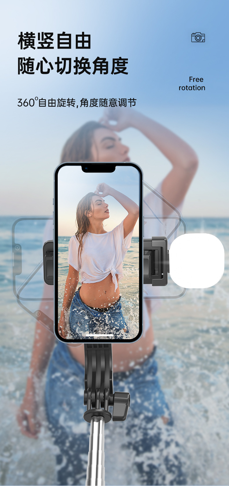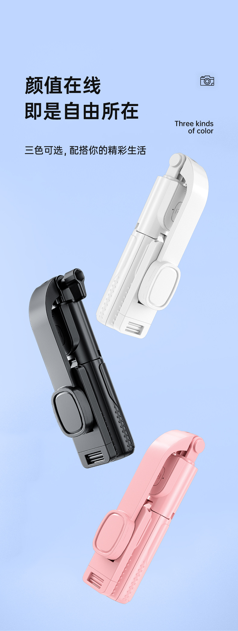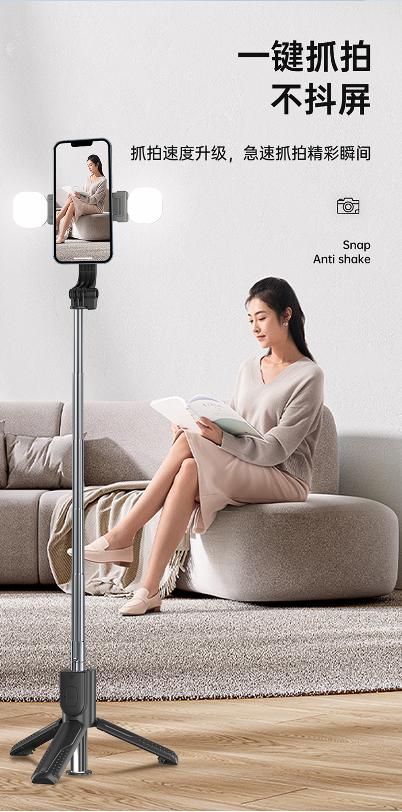 新款抖音手机拍照补光灯一体式蓝牙自拍杆三脚架便携桌面直播支架