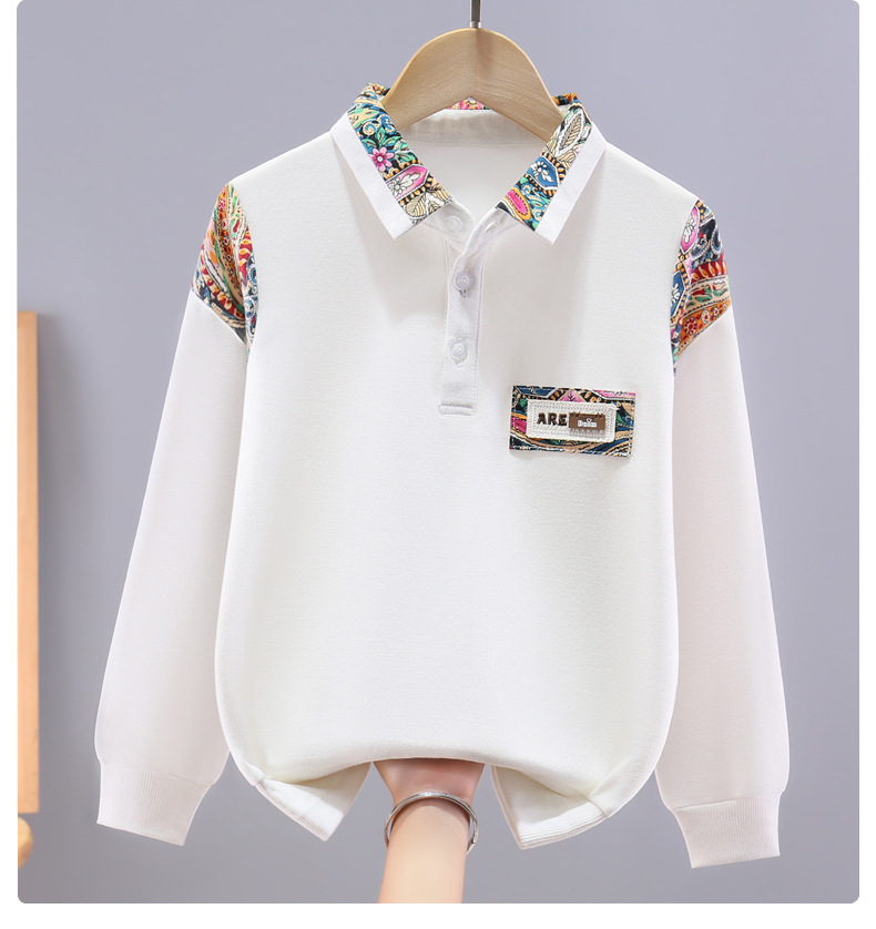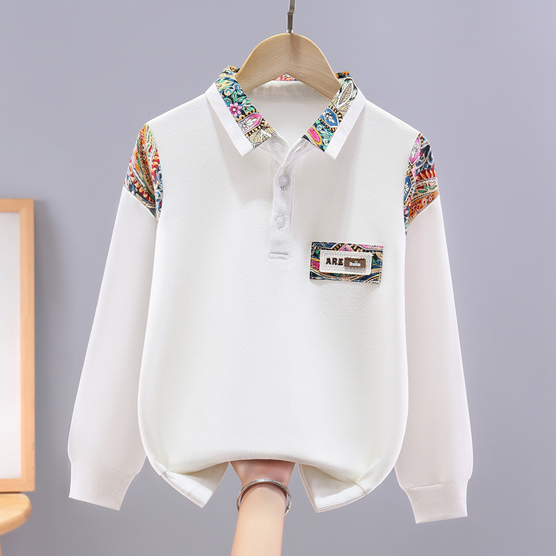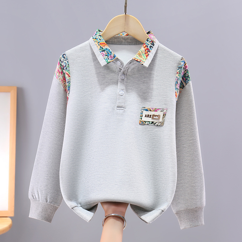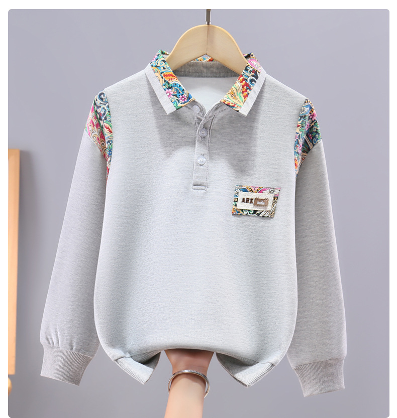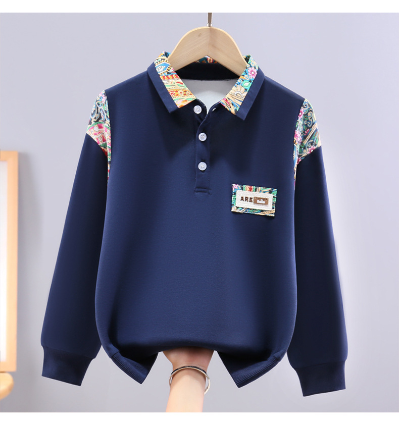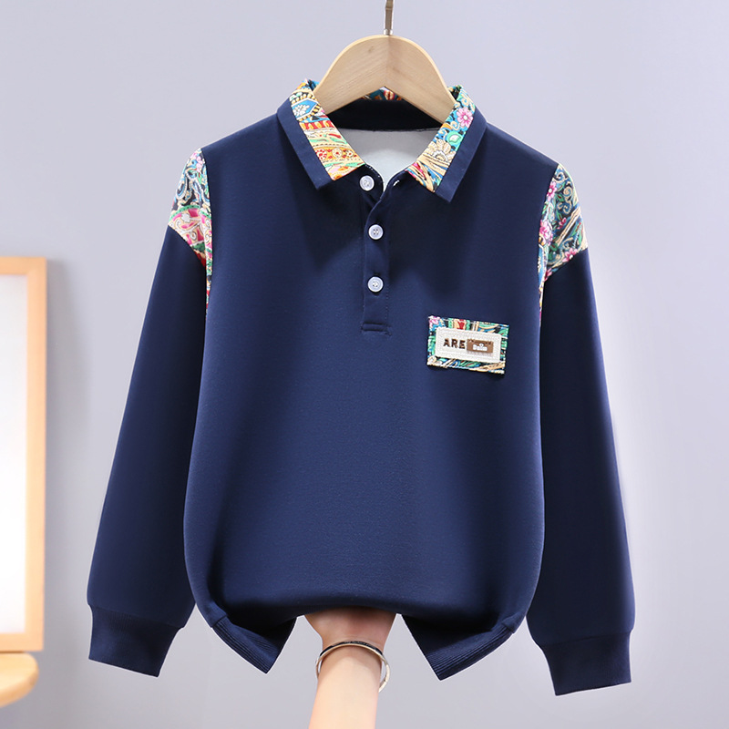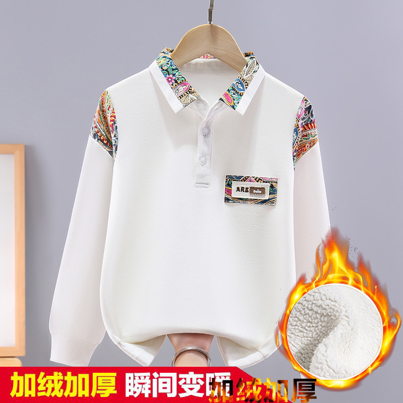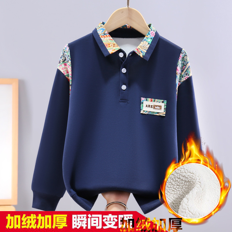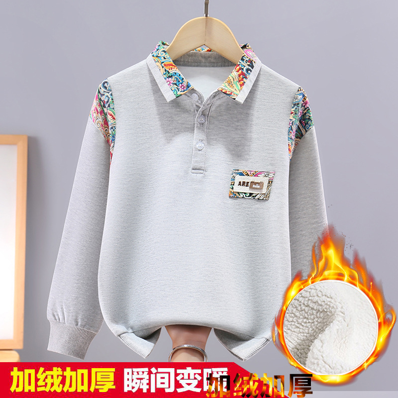 소년의 긴팔 티셔츠 폴로 셔츠 원피스 유명한 민족 스타일 큰 어린이 가을과 겨울 기모 두꺼운 옷깃 캐주얼