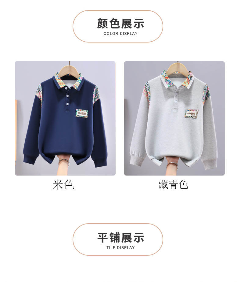 소년의 긴팔 티셔츠 폴로 셔츠 원피스 유명한 민족 스타일 큰 어린이 가을과 겨울 기모 두꺼운 옷깃 캐주얼스토어 가기