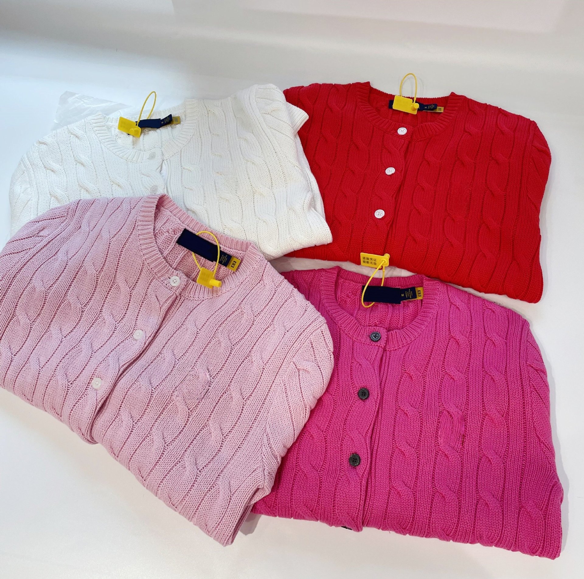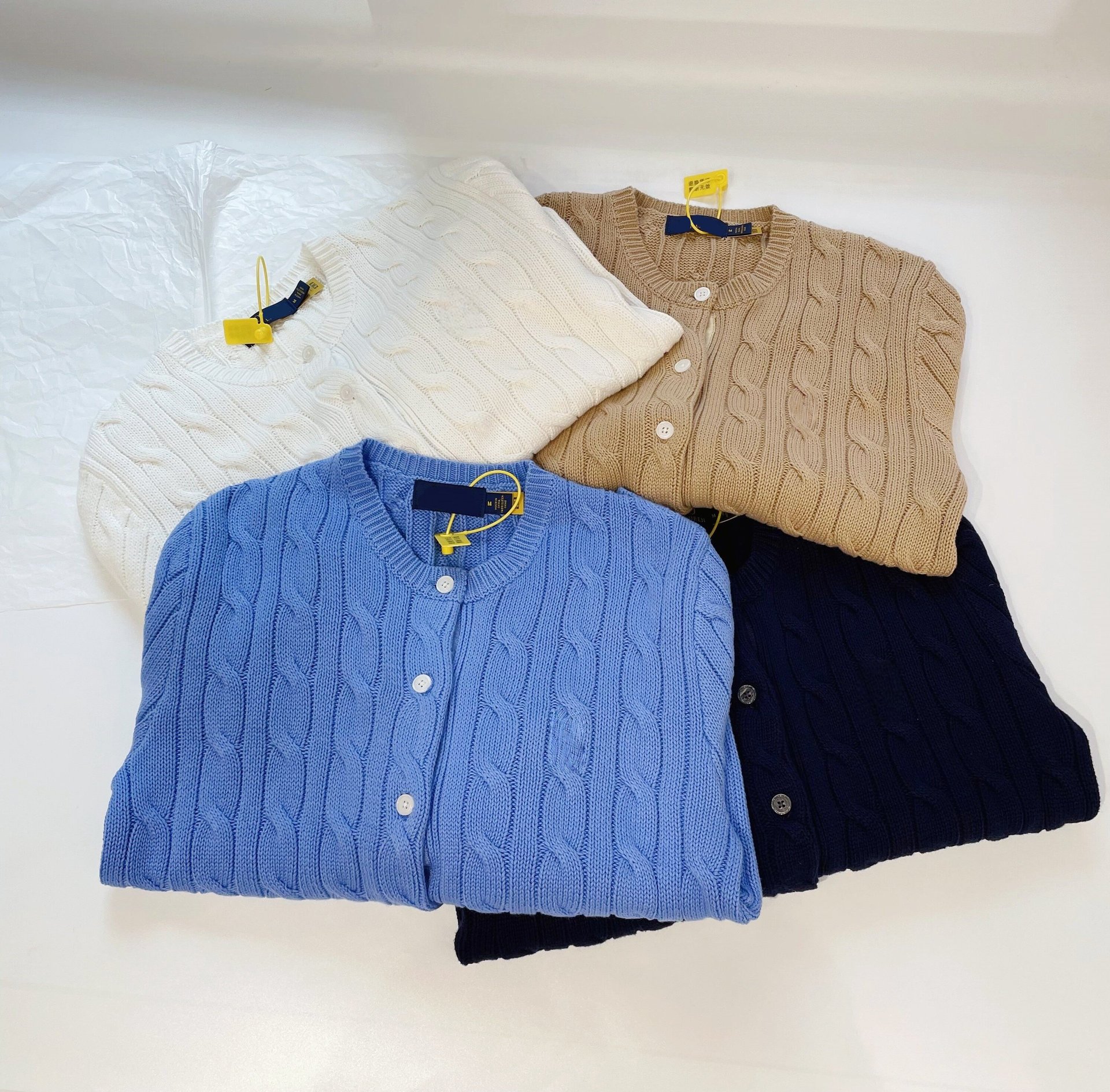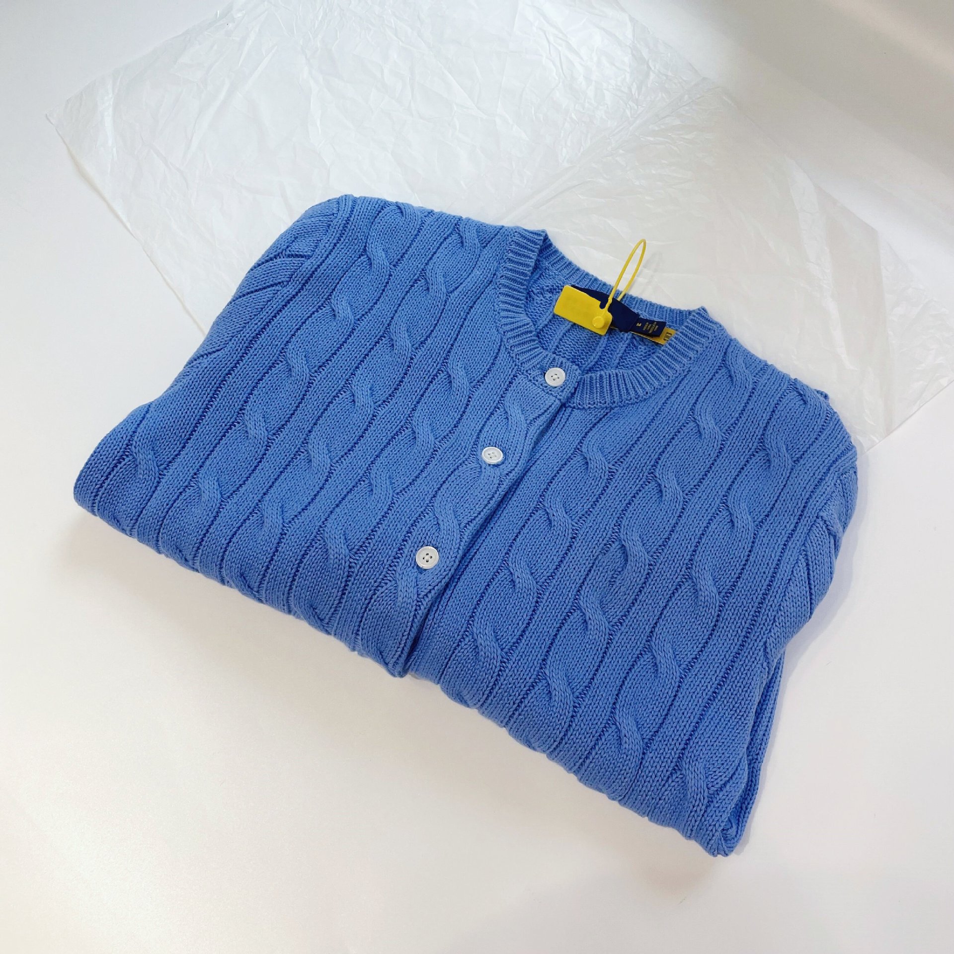 순면 슬림핏 래플 RL 포니 로고 자수 케이블 니트 스웨터 가디건 긴팔 캐주얼 라운드넥스토어 가기