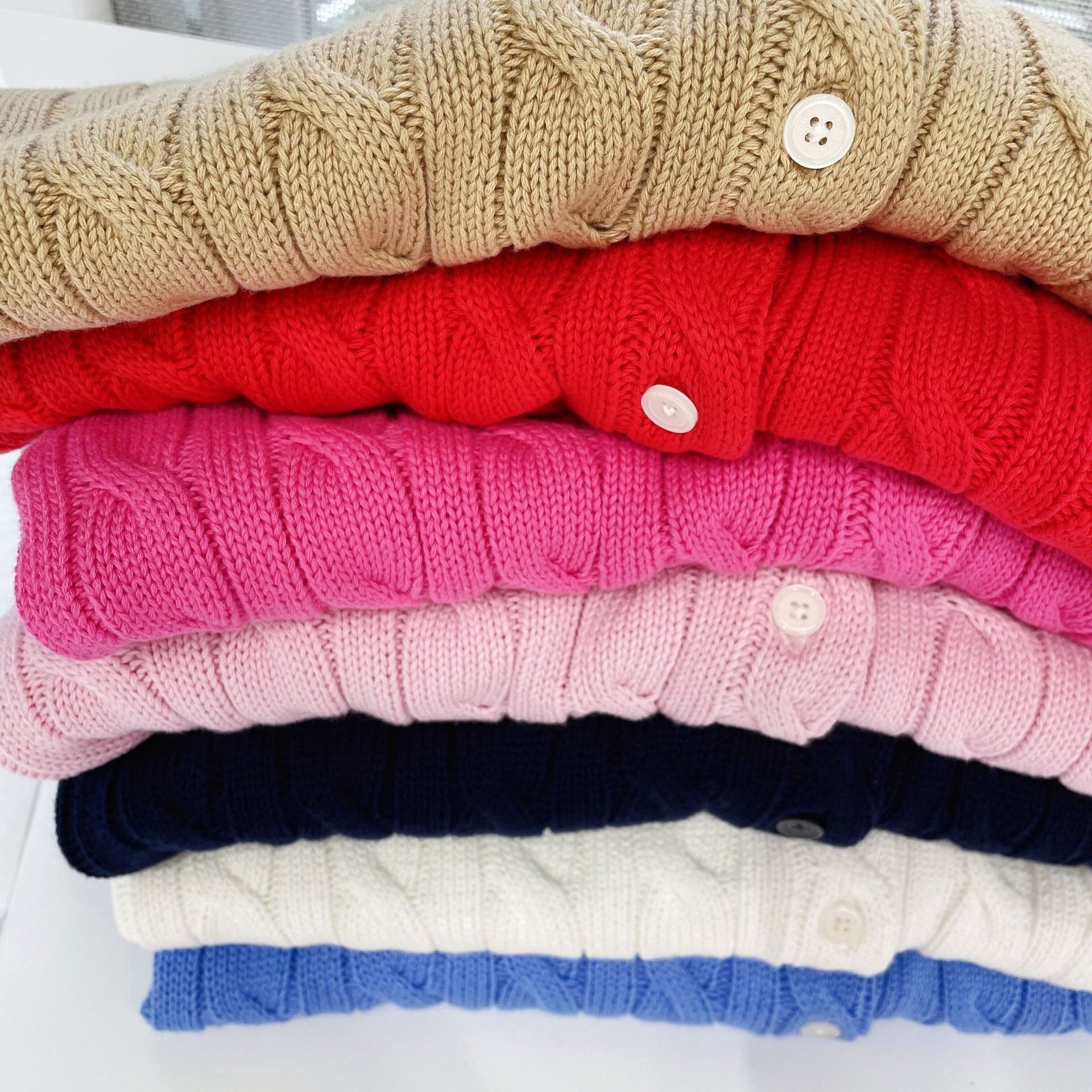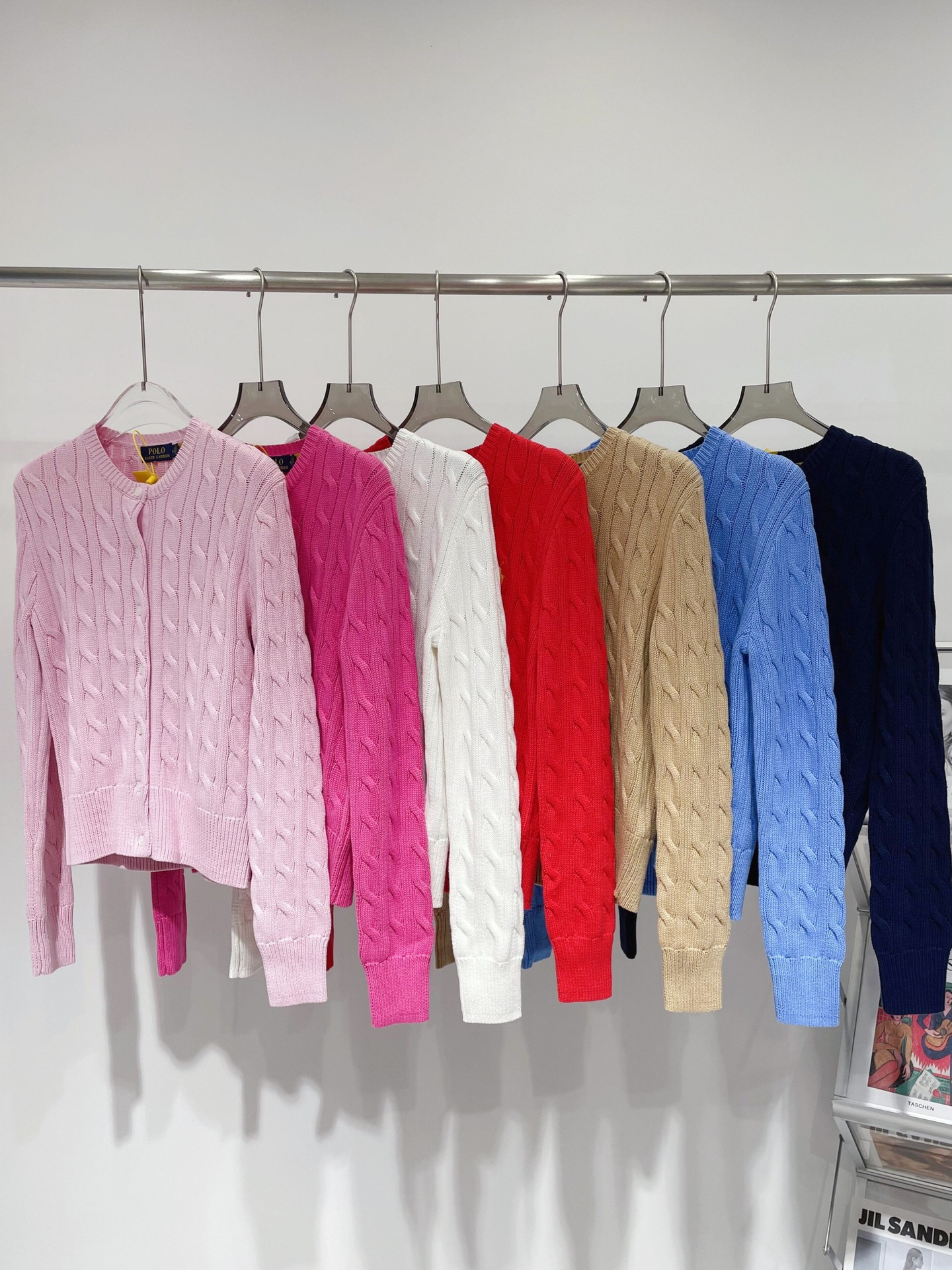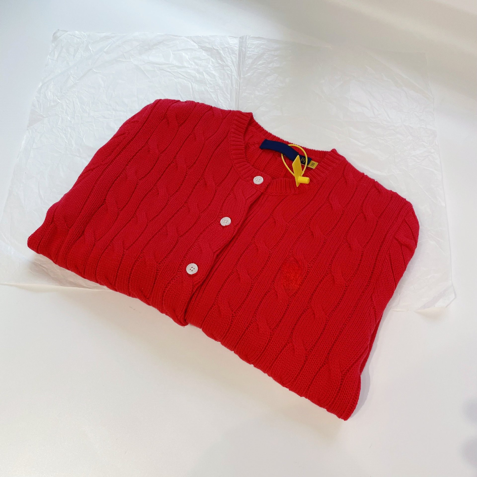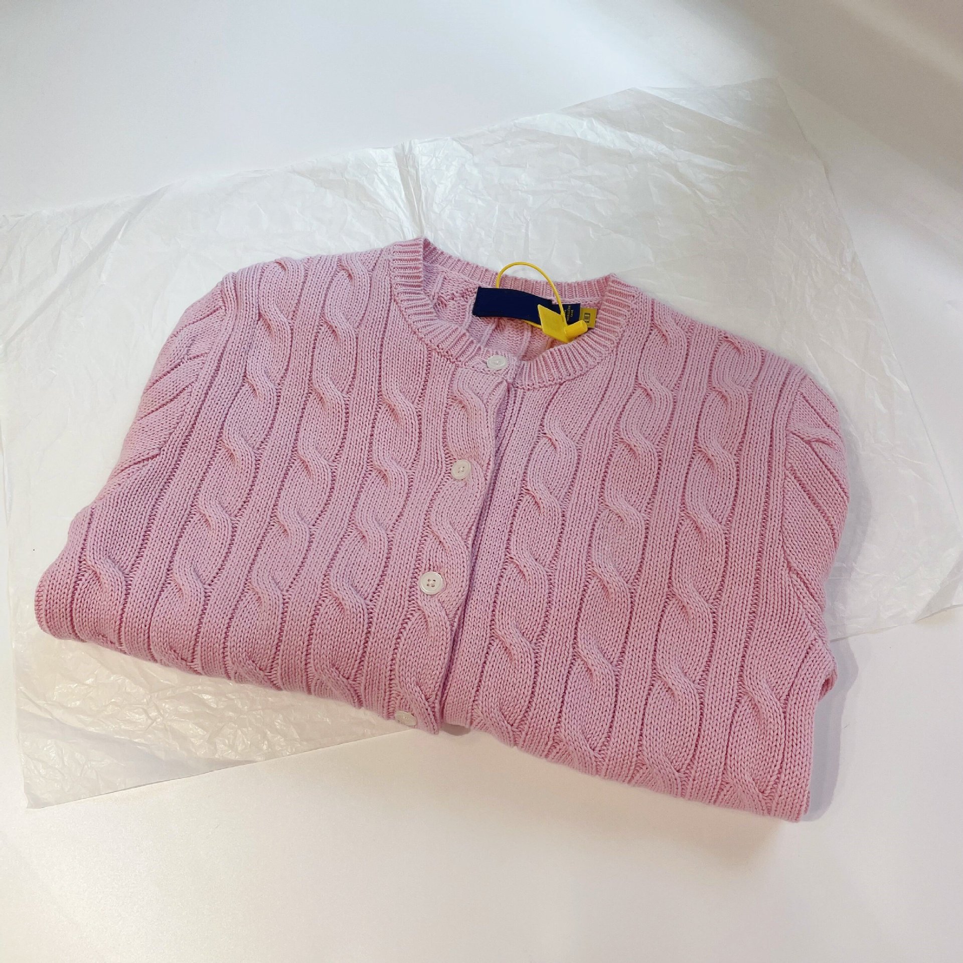 순면 슬림핏 래플 RL 포니 로고 자수 케이블 니트 스웨터 가디건 긴팔 캐주얼 라운드넥스토어 가기