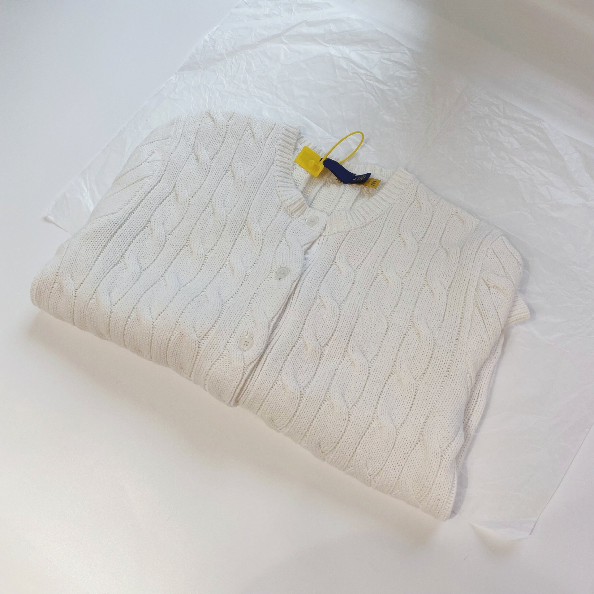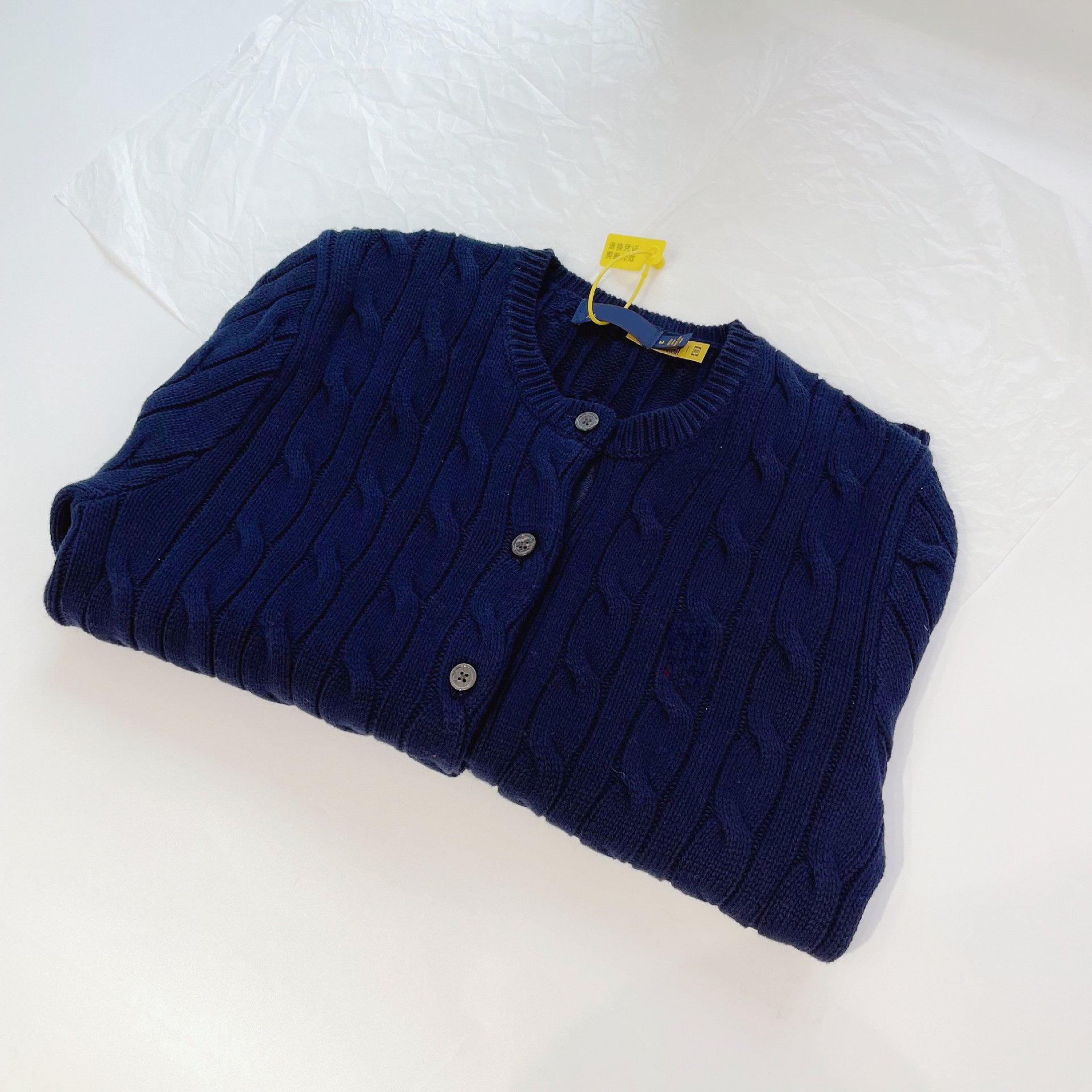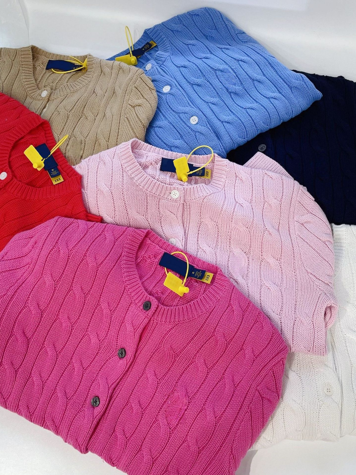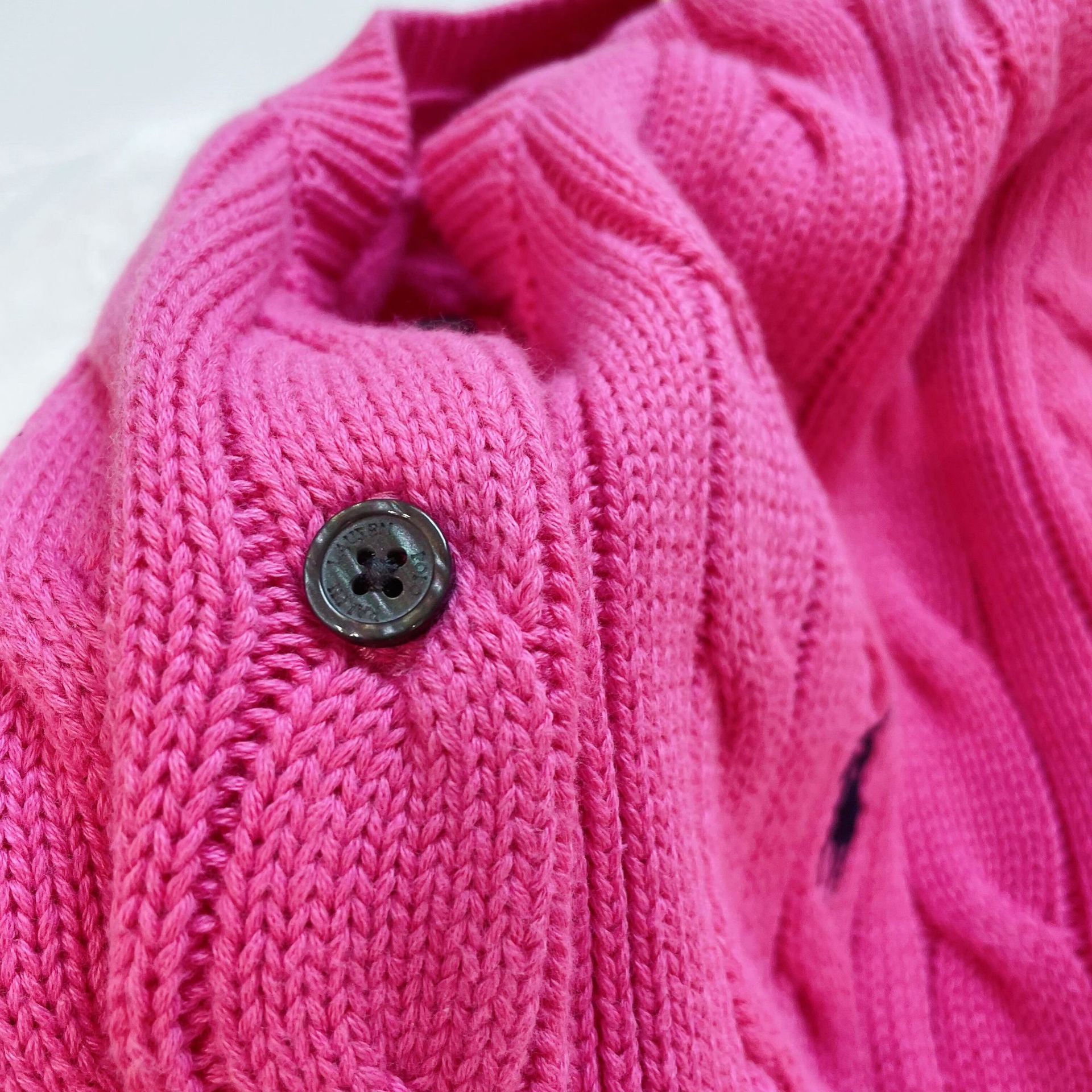 순면 슬림핏 래플 RL 포니 로고 자수 케이블 니트 스웨터 가디건 긴팔 캐주얼 라운드넥