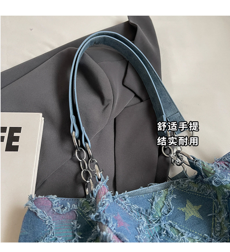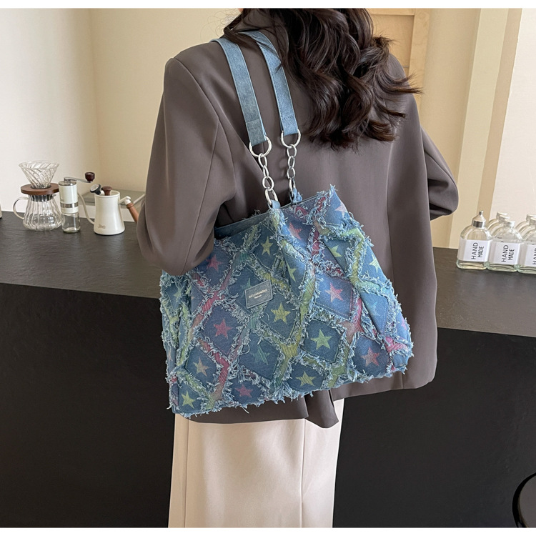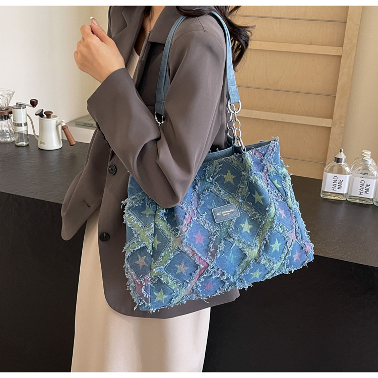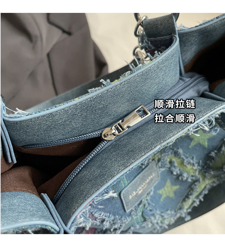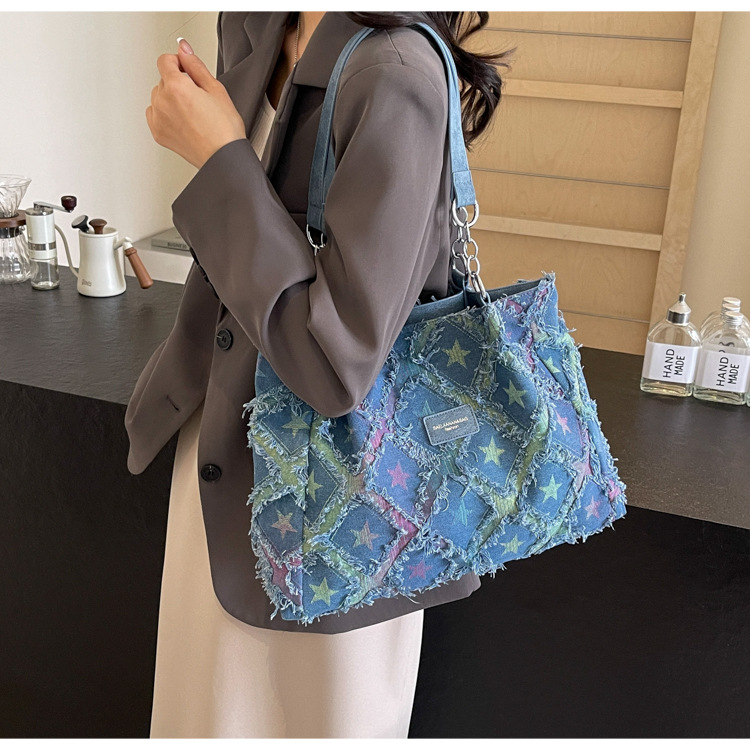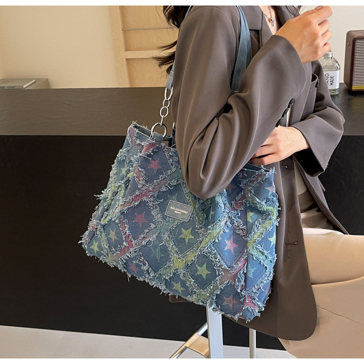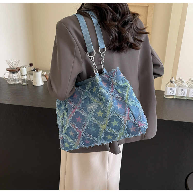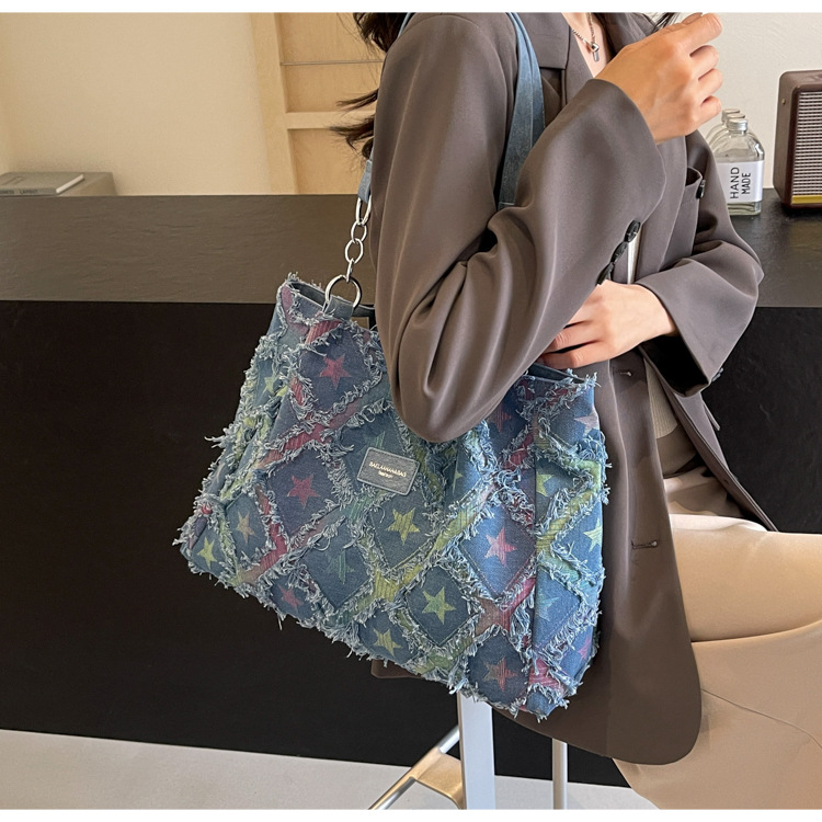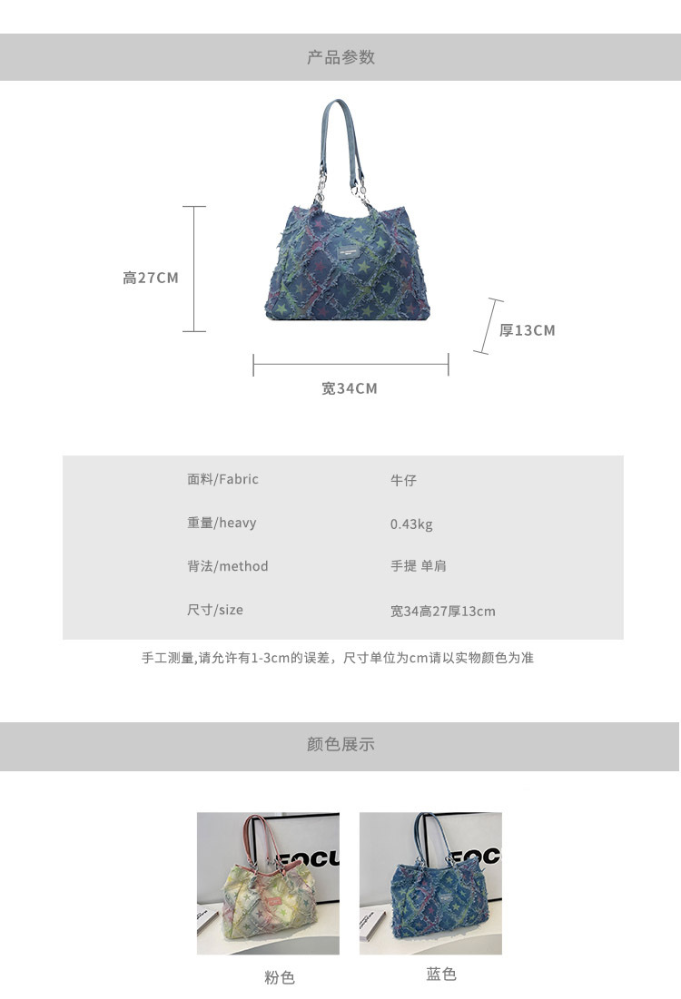 고민 된 데님 토트 백 대용량 가방 여성의 2024 년 새 봄과 여름 핸드백 어깨 가방스토어 가기