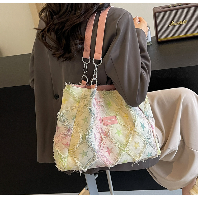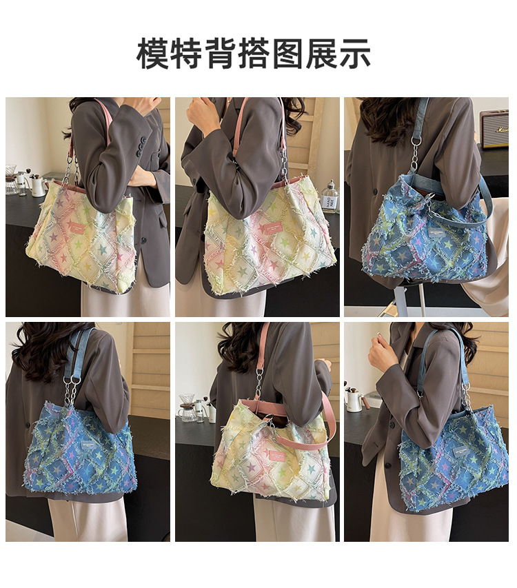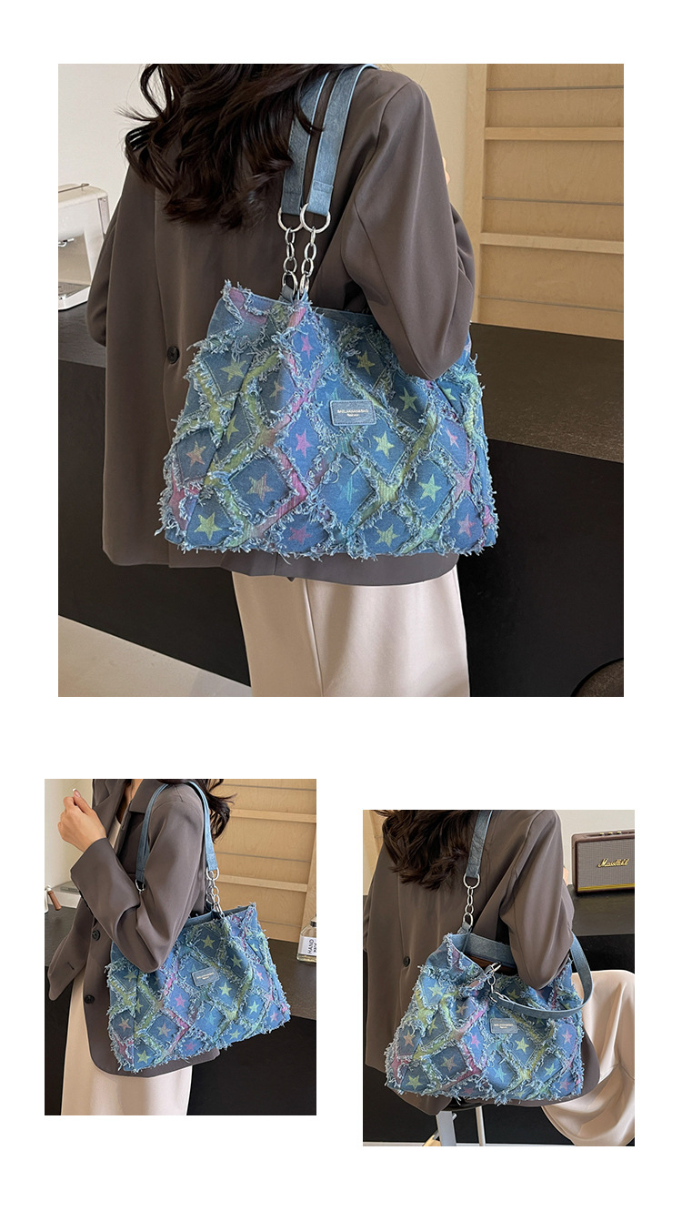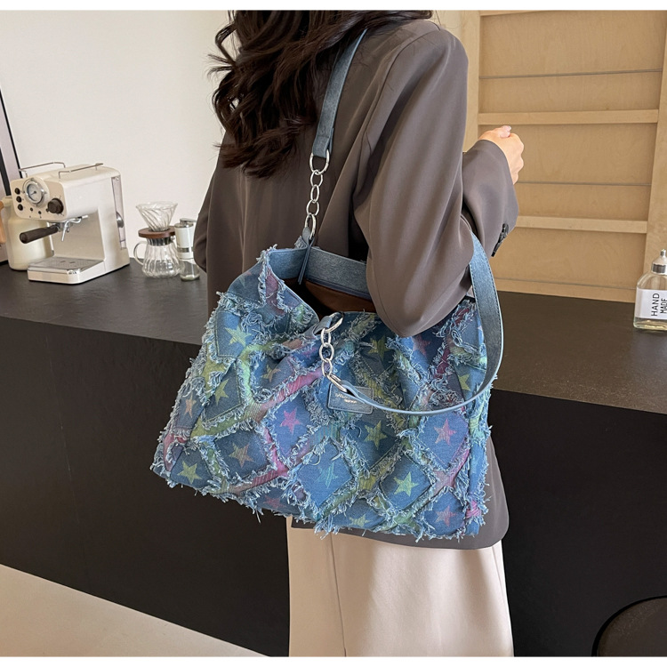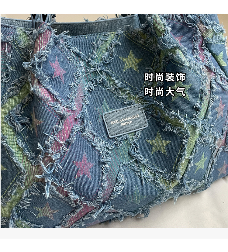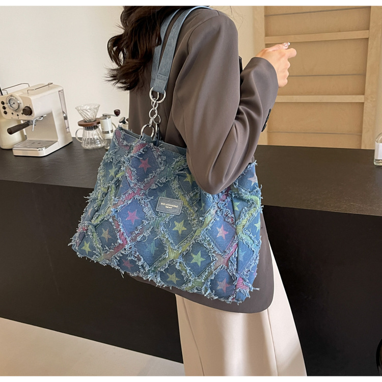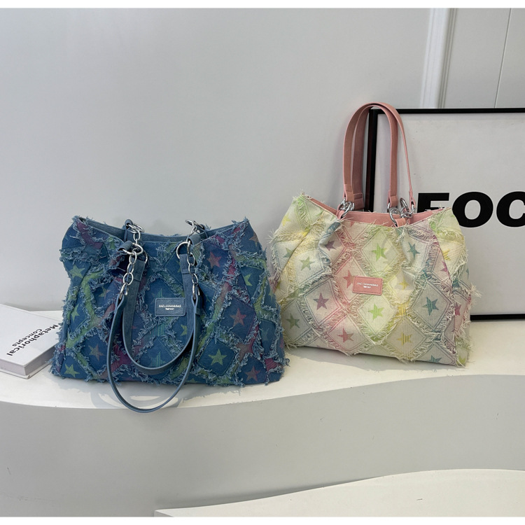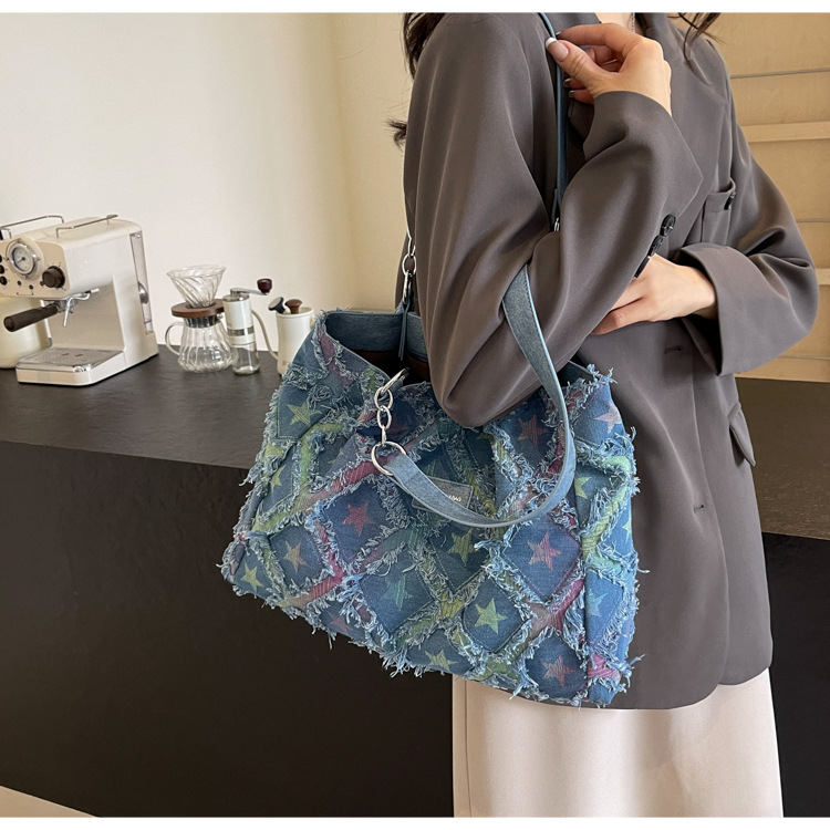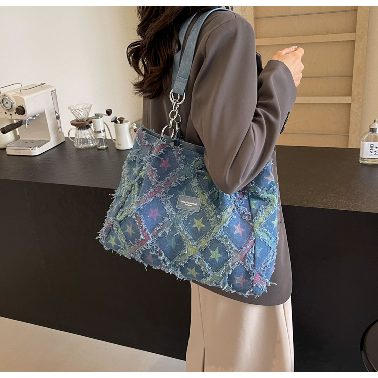 고민 된 데님 토트 백 대용량 가방 여성의 2024 년 새 봄과 여름 핸드백 어깨 가방스토어 가기