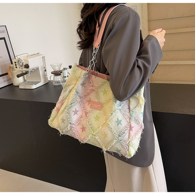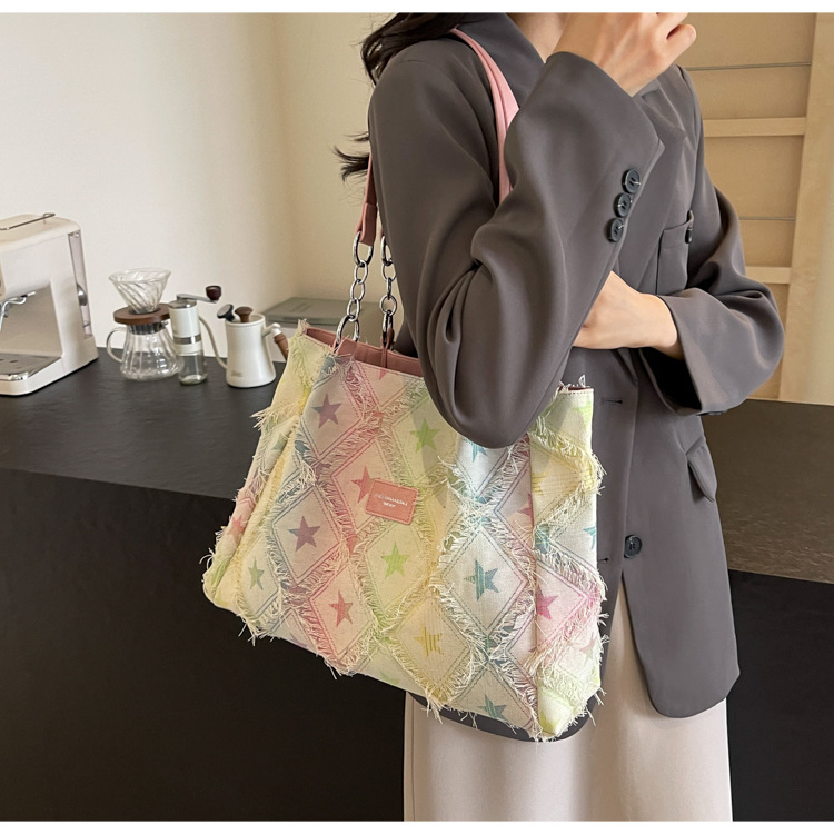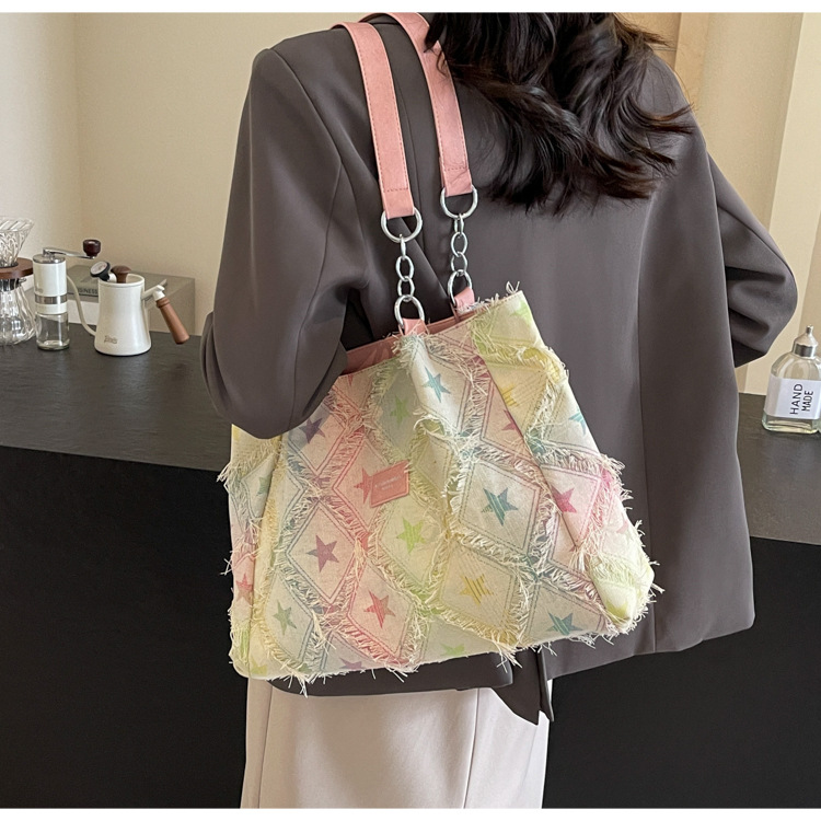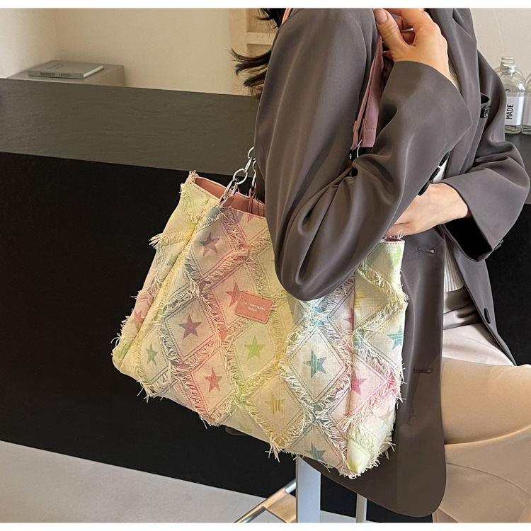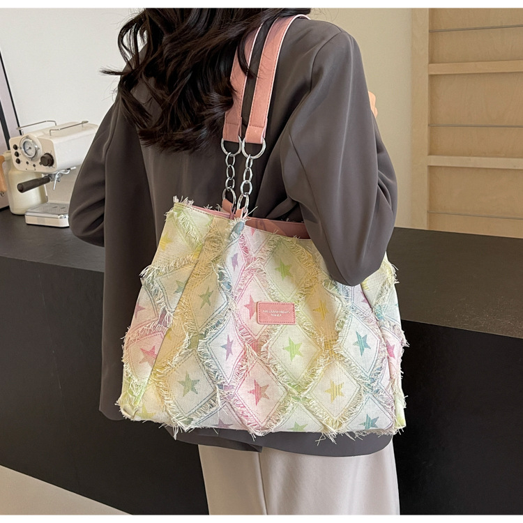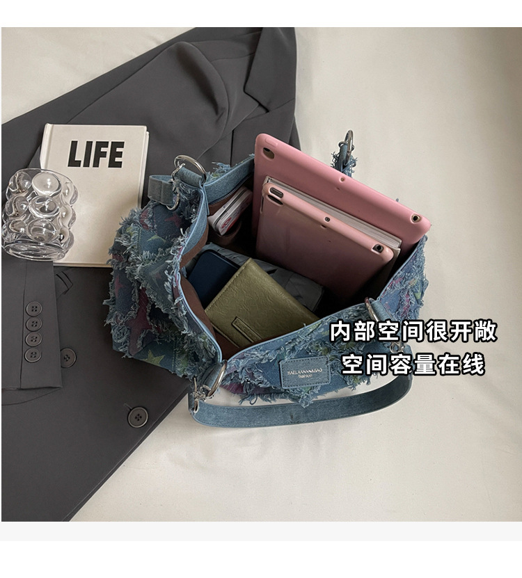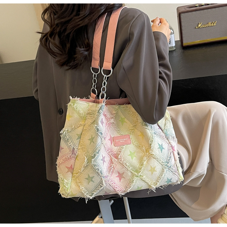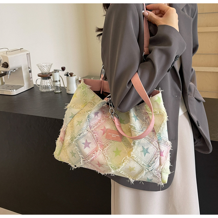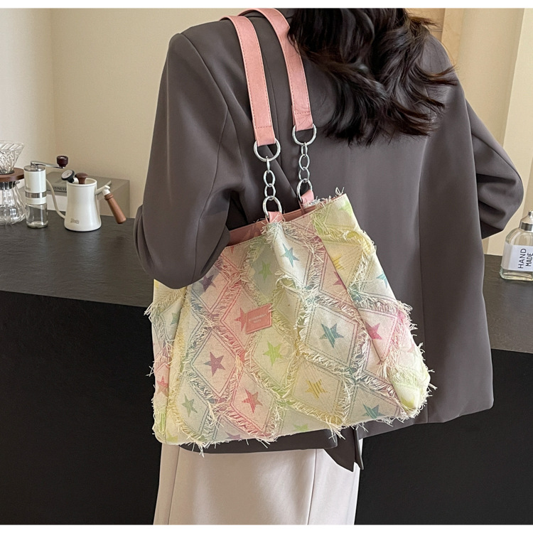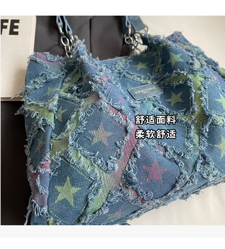고민 된 데님 토트 백 대용량 가방 여성의 2024 년 새 봄과 여름 핸드백 어깨 가방스토어 가기