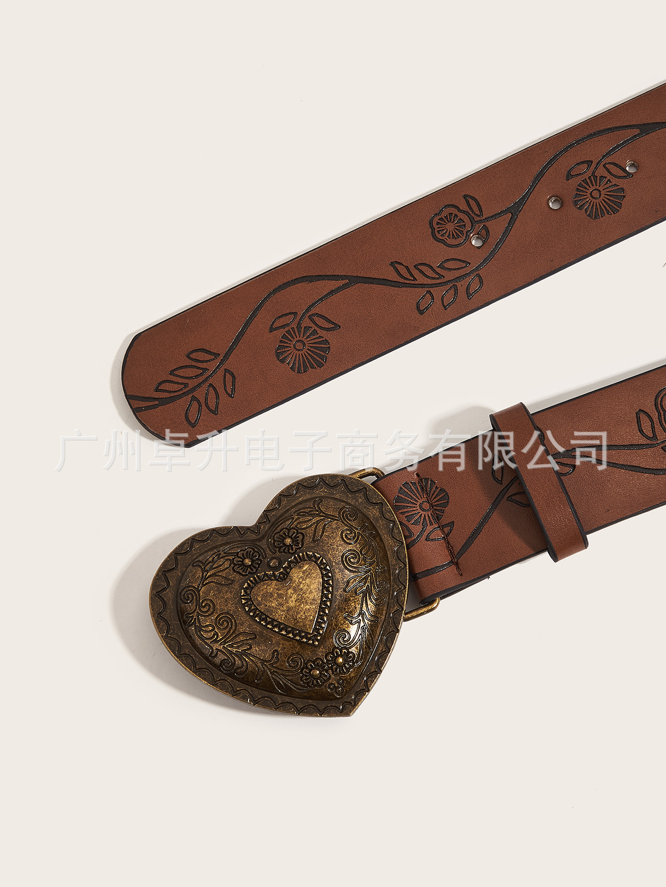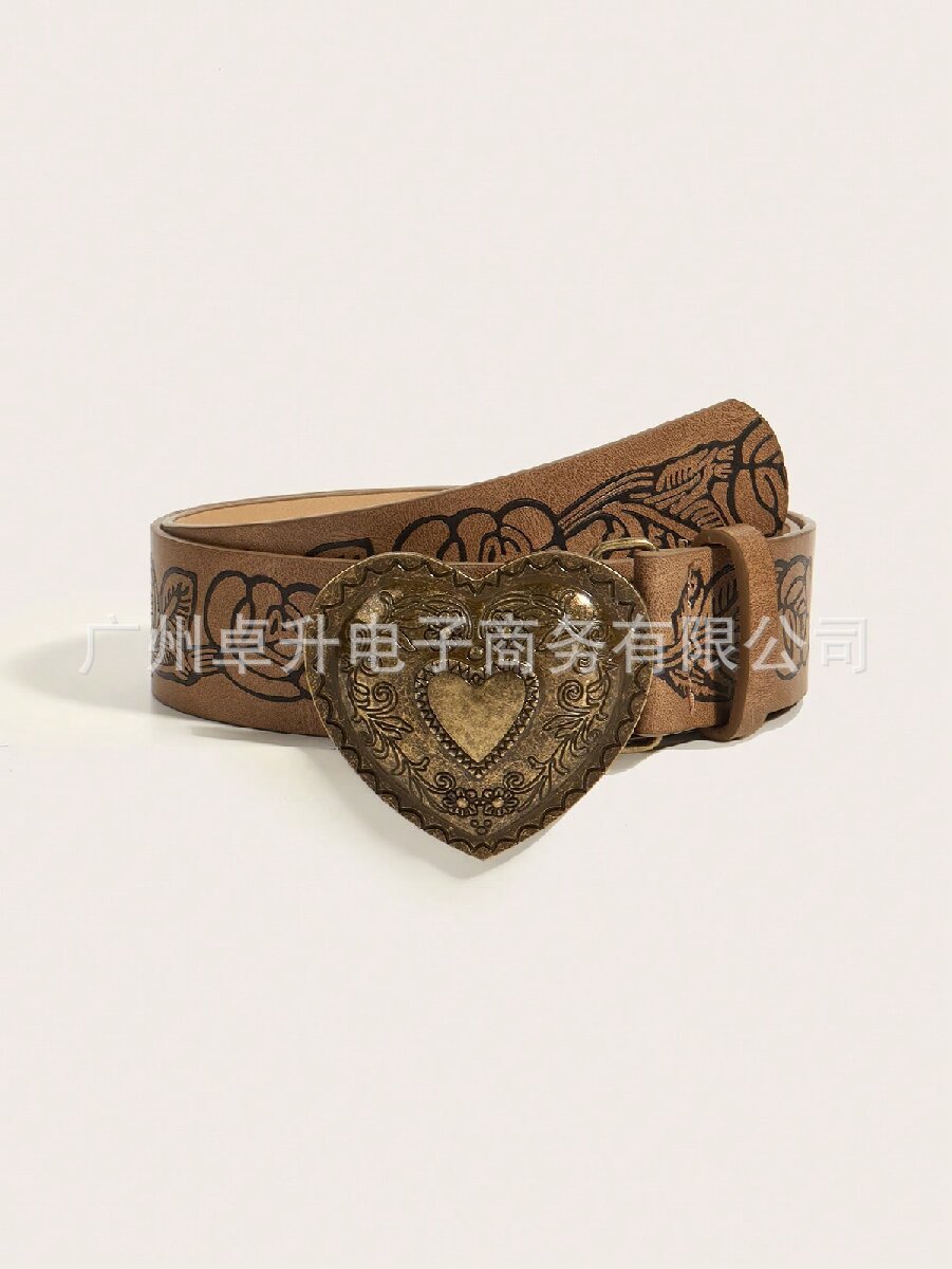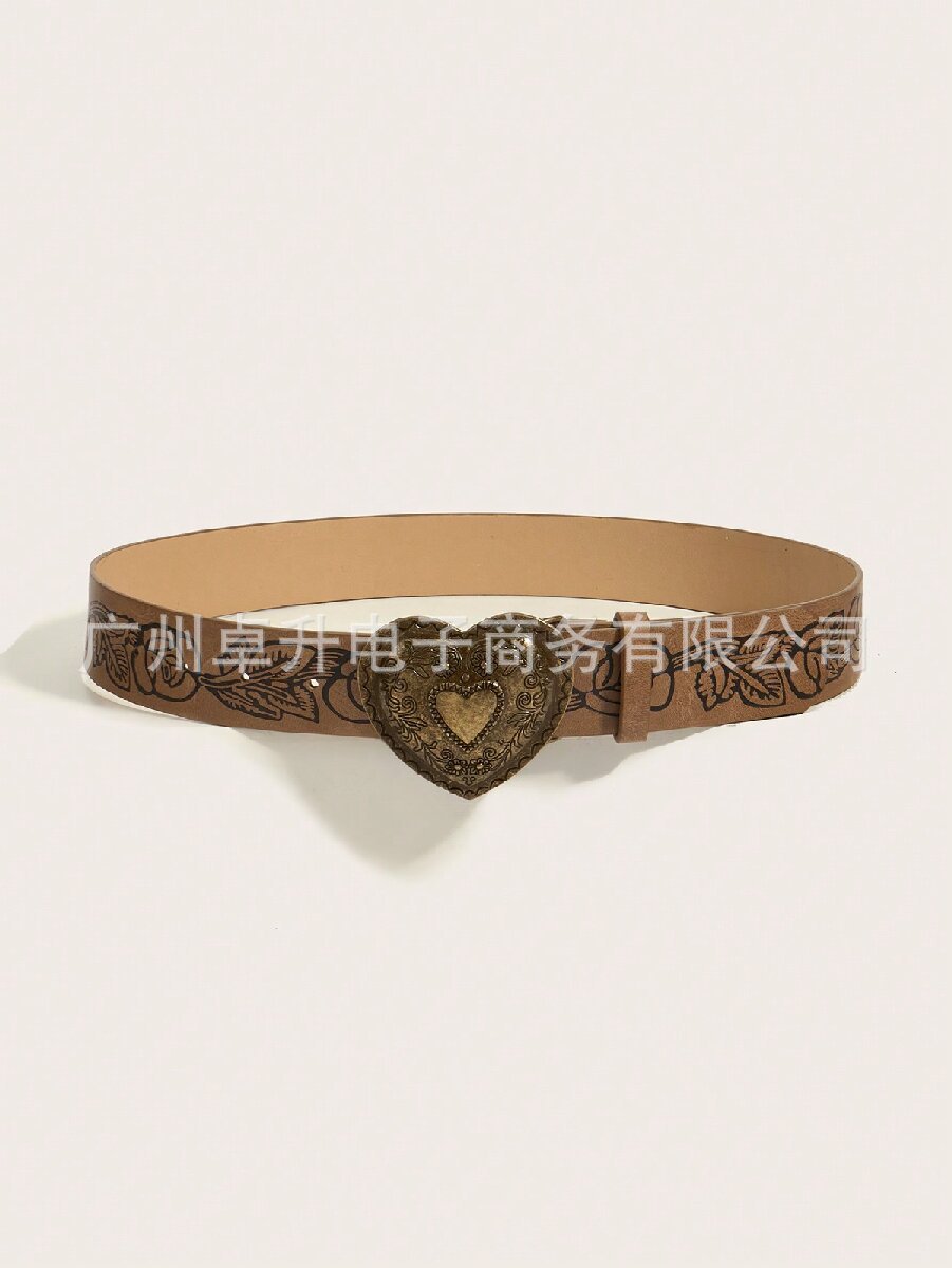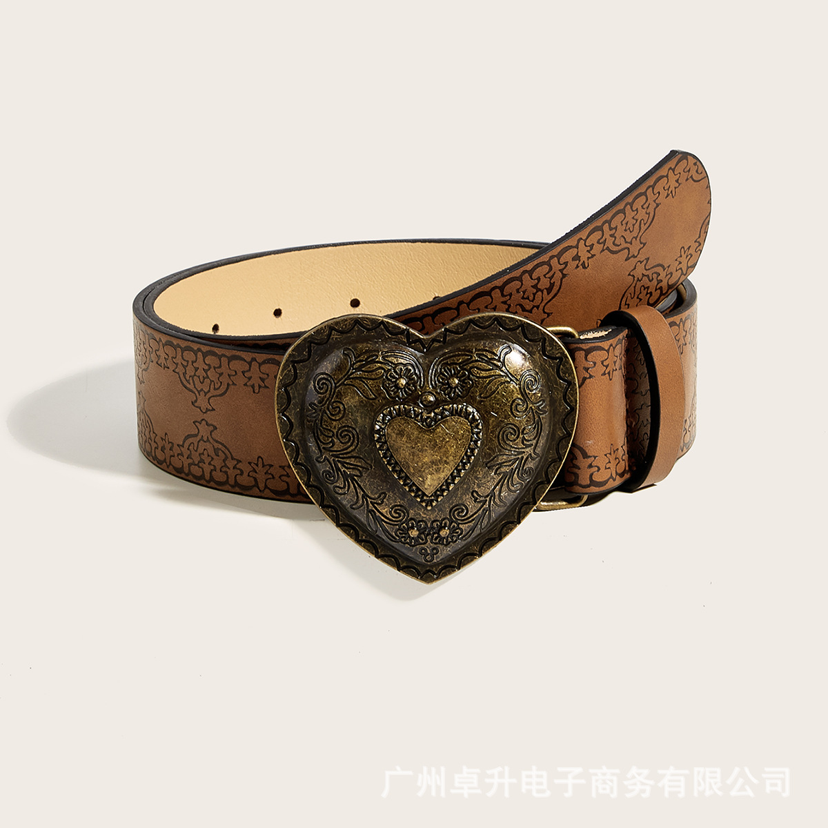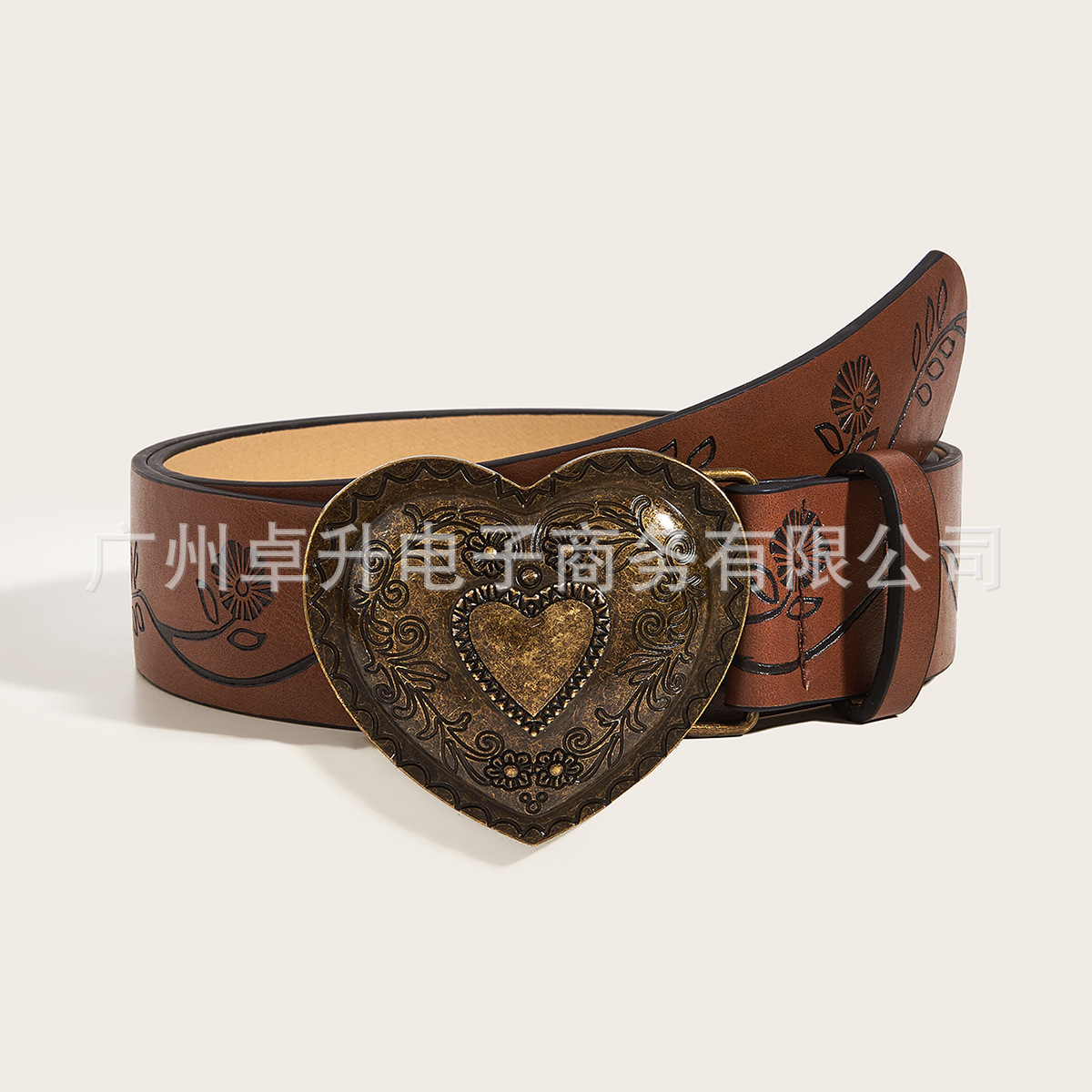 공장 도매 뜨거운 소녀 매일 질감 바람 사랑 버클 벨트 유럽과 미국의 보편적 인 인쇄 다크 브라운 남성과 여성의 벨트 작은스토어 가기