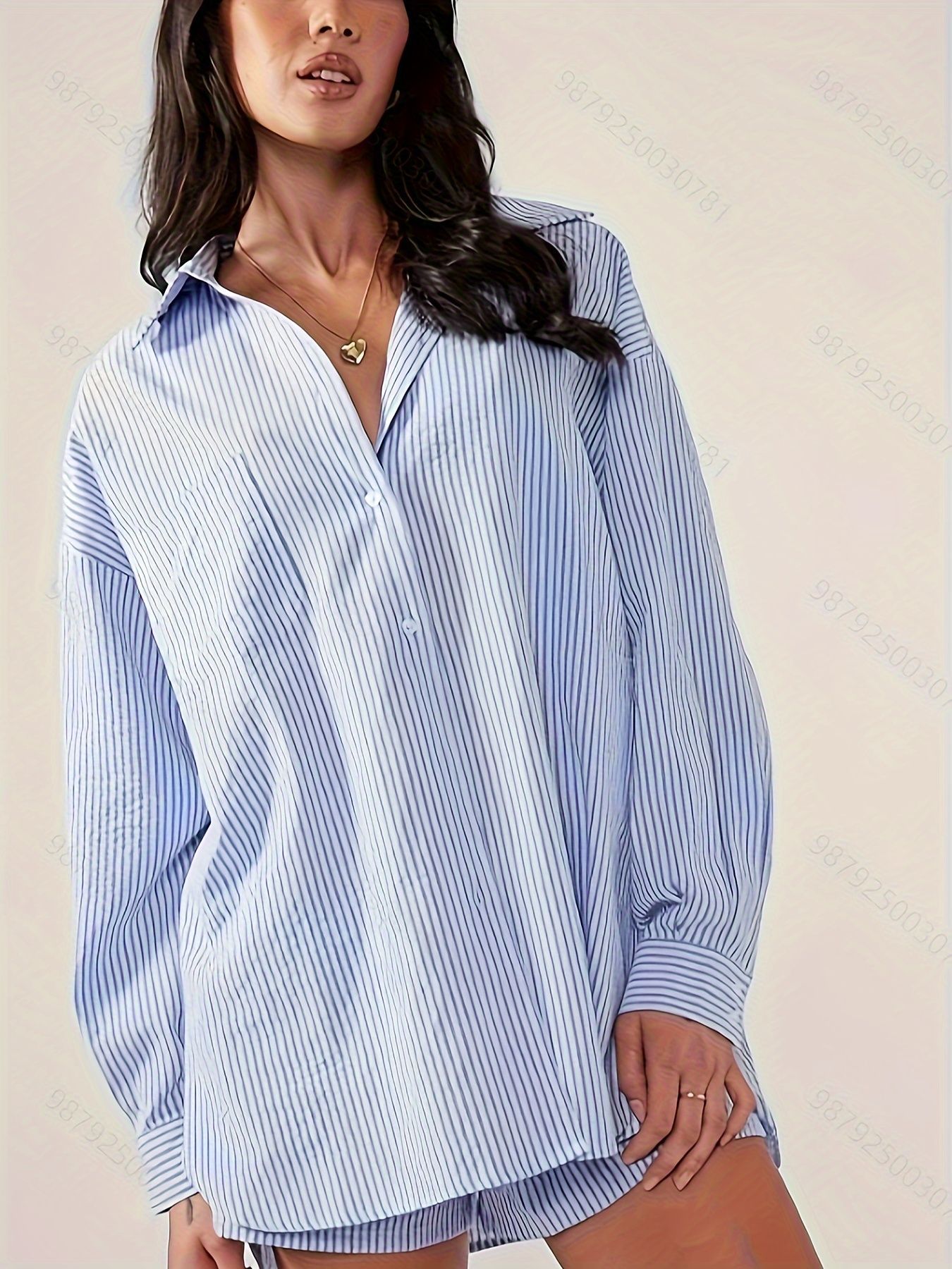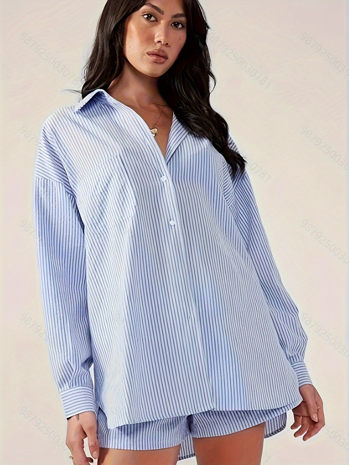 아마존 국경 유럽 및 미국 대외 무역 가을 새로운 간단한 기질 줄무늬 느슨한 캐주얼 긴 소매 셔츠