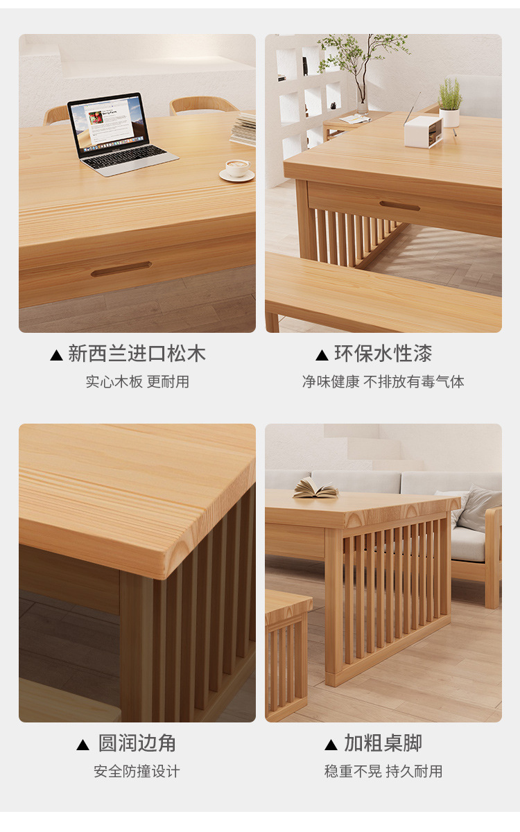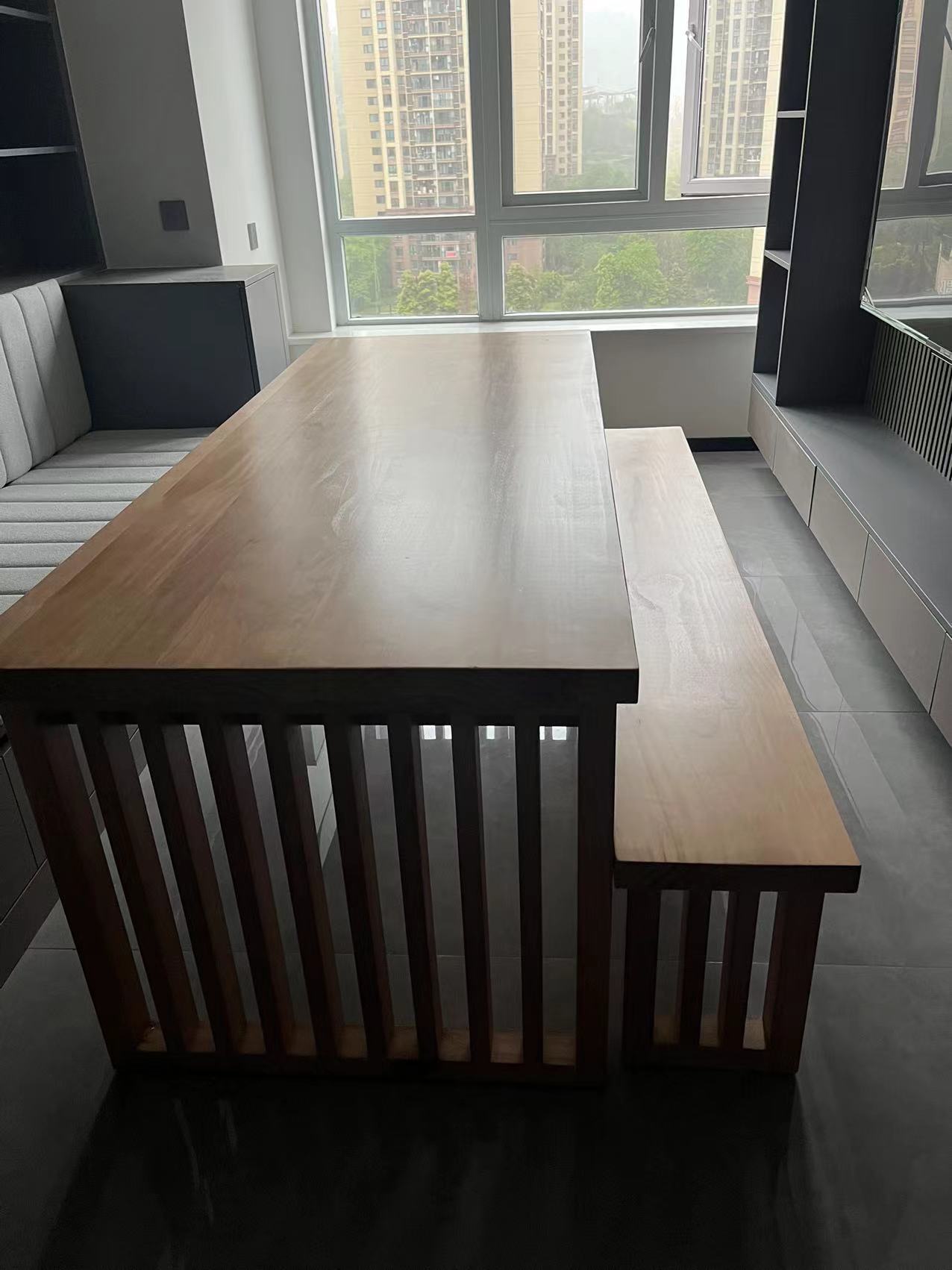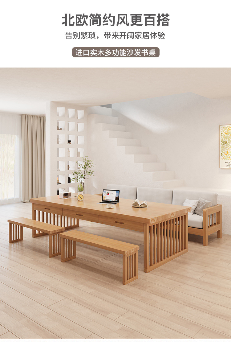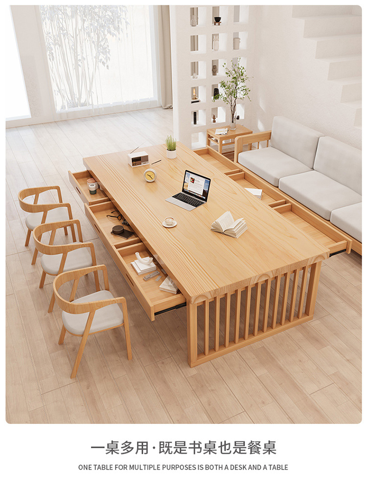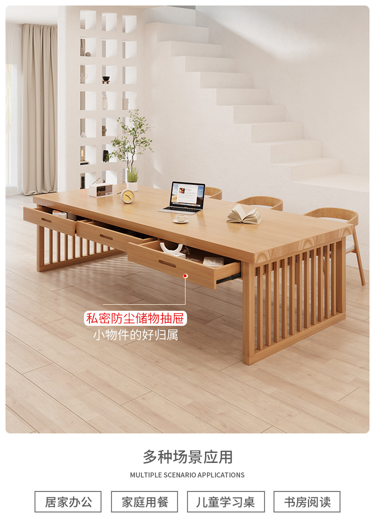 엄밀히 선정 된 거실 대형 롱 데스크 솔리드 우드 더블 어린이 학습 홈 작업대 수제 쓰기 로그 롱 테이블