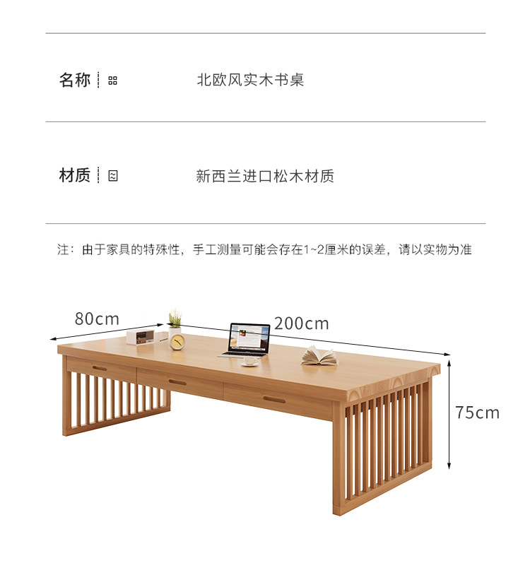 • 테이블: 단면 서랍 3개: 200*80*75 보드 5cm