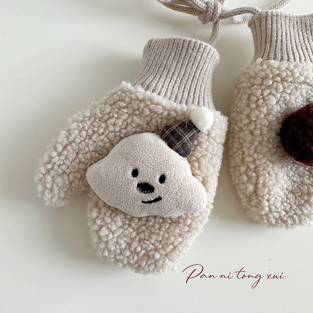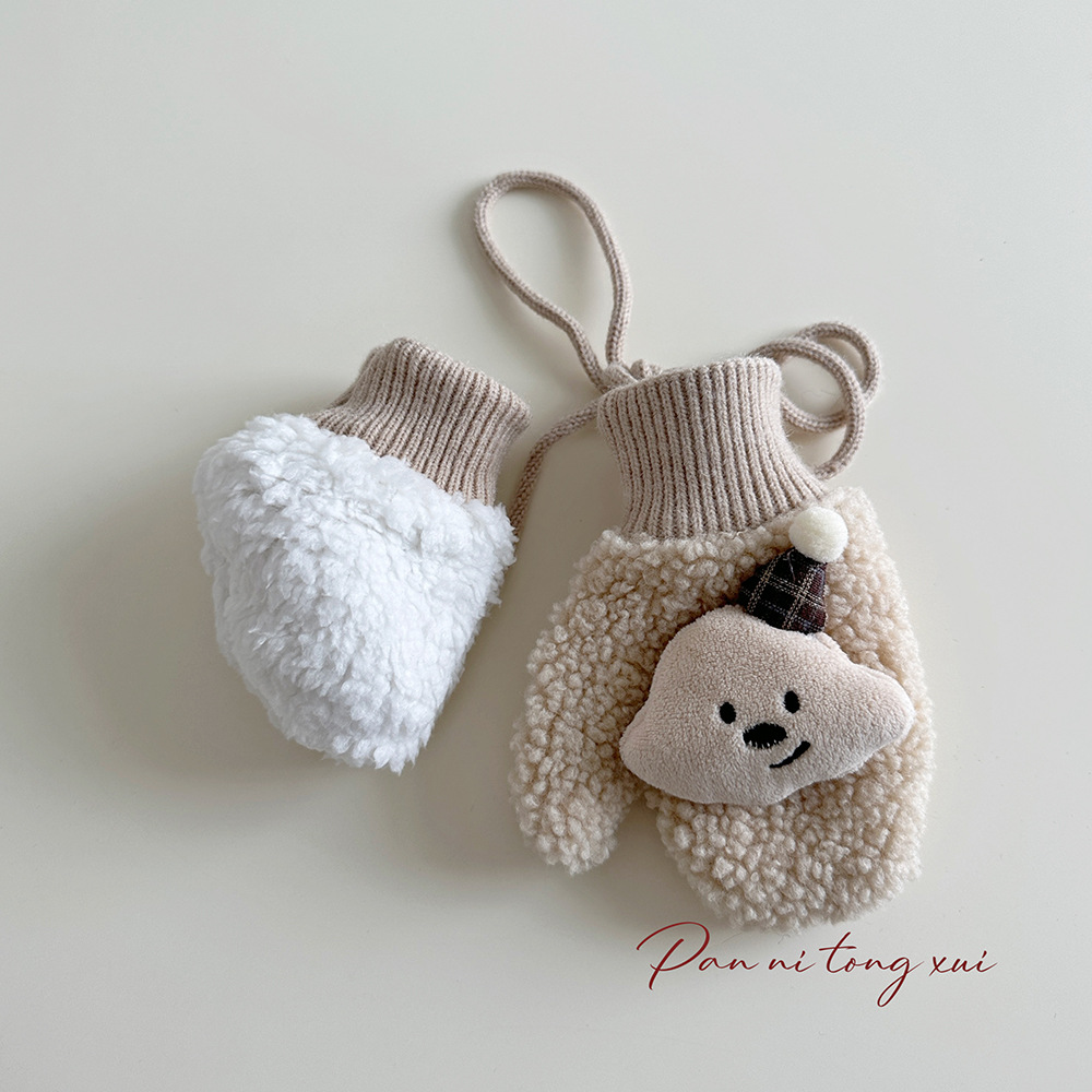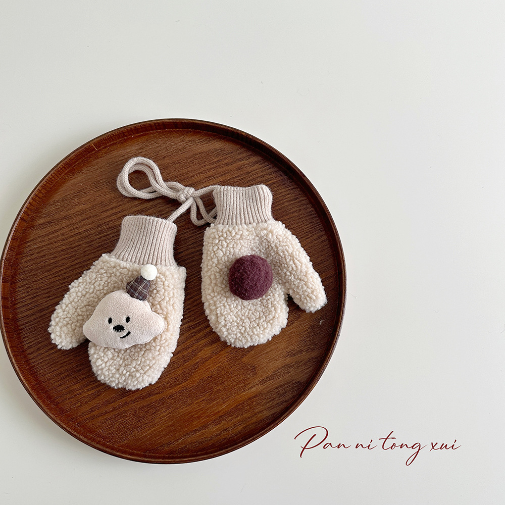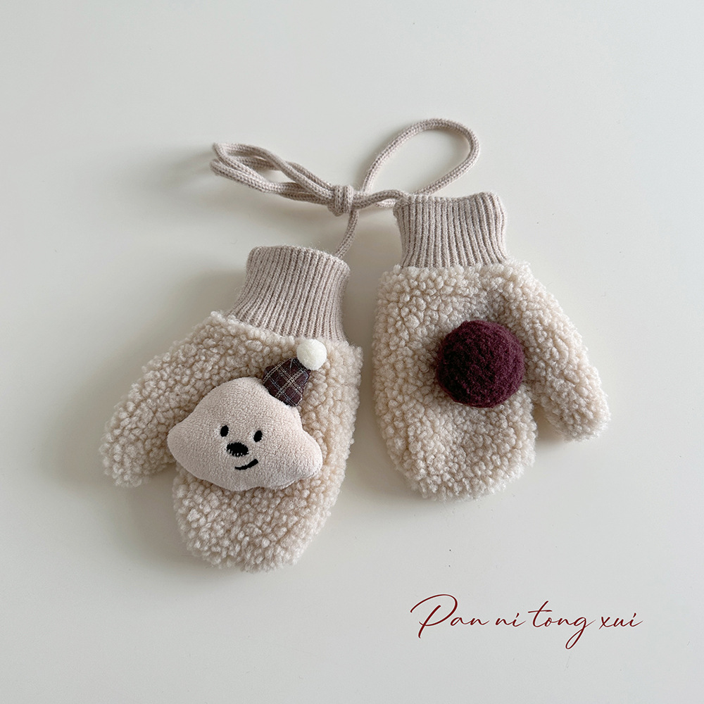 어린이 장갑 겨울 귀여운 만화 기모 따뜻한 어린이 목 가방 손가락 양고기 머리 아기 장갑스토어 가기