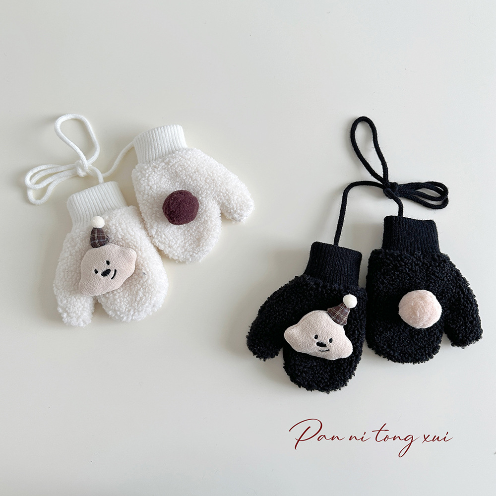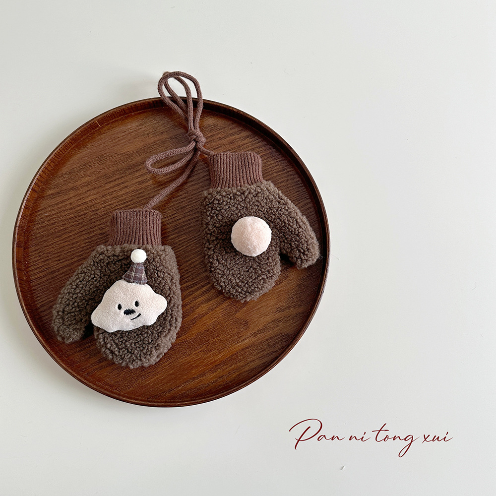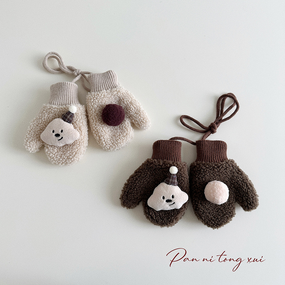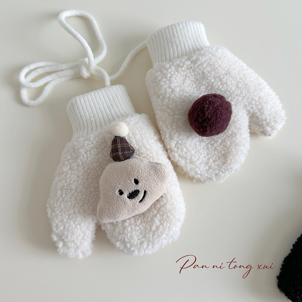어린이 장갑 겨울 귀여운 만화 기모 따뜻한 어린이 목 가방 손가락 양고기 머리 아기 장갑스토어 가기