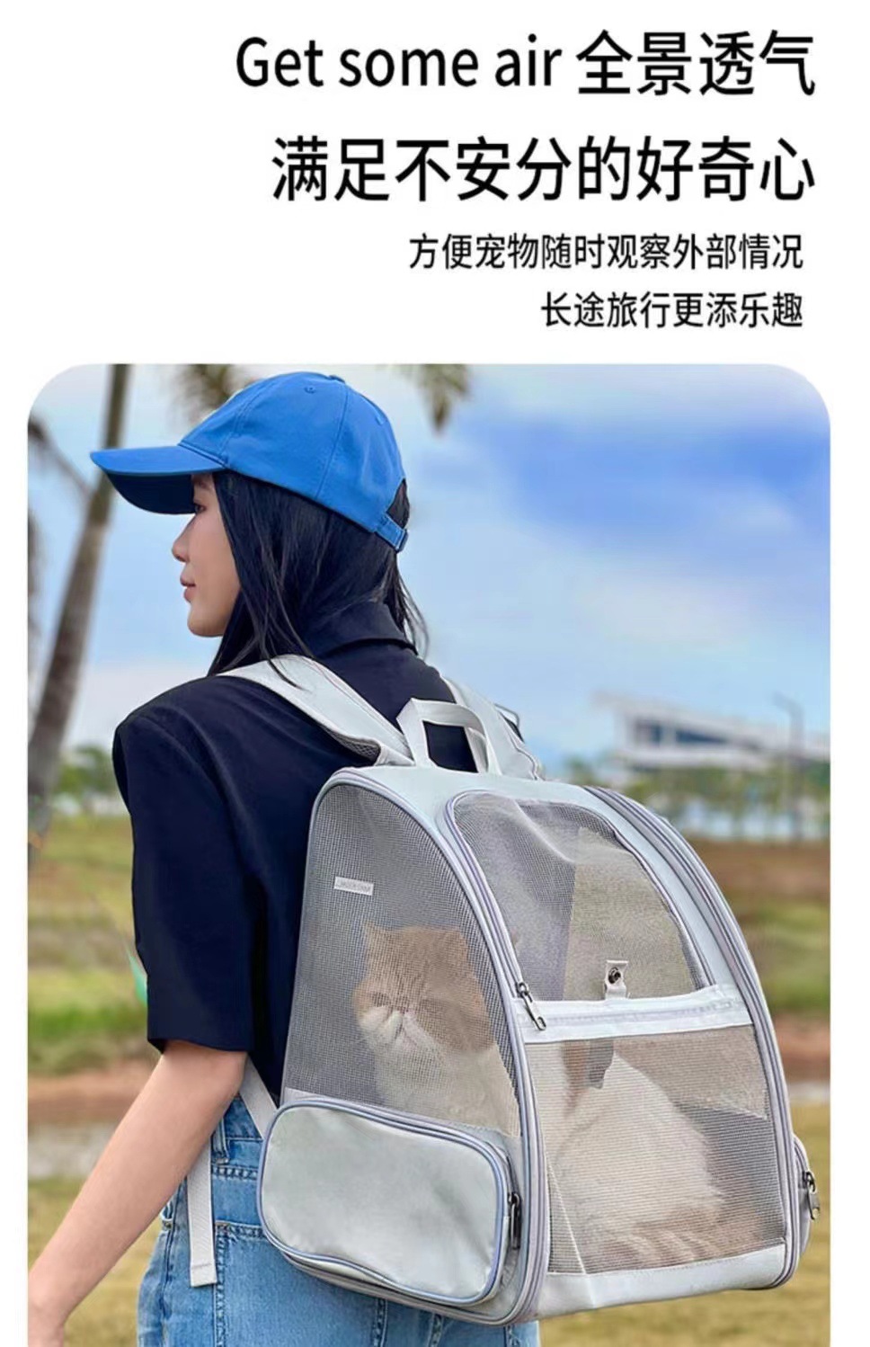통기성 고양이 가방 여름 외출 편리한 배낭 대용량 다기능 휴대용 고양이 가방 작은 개 배낭