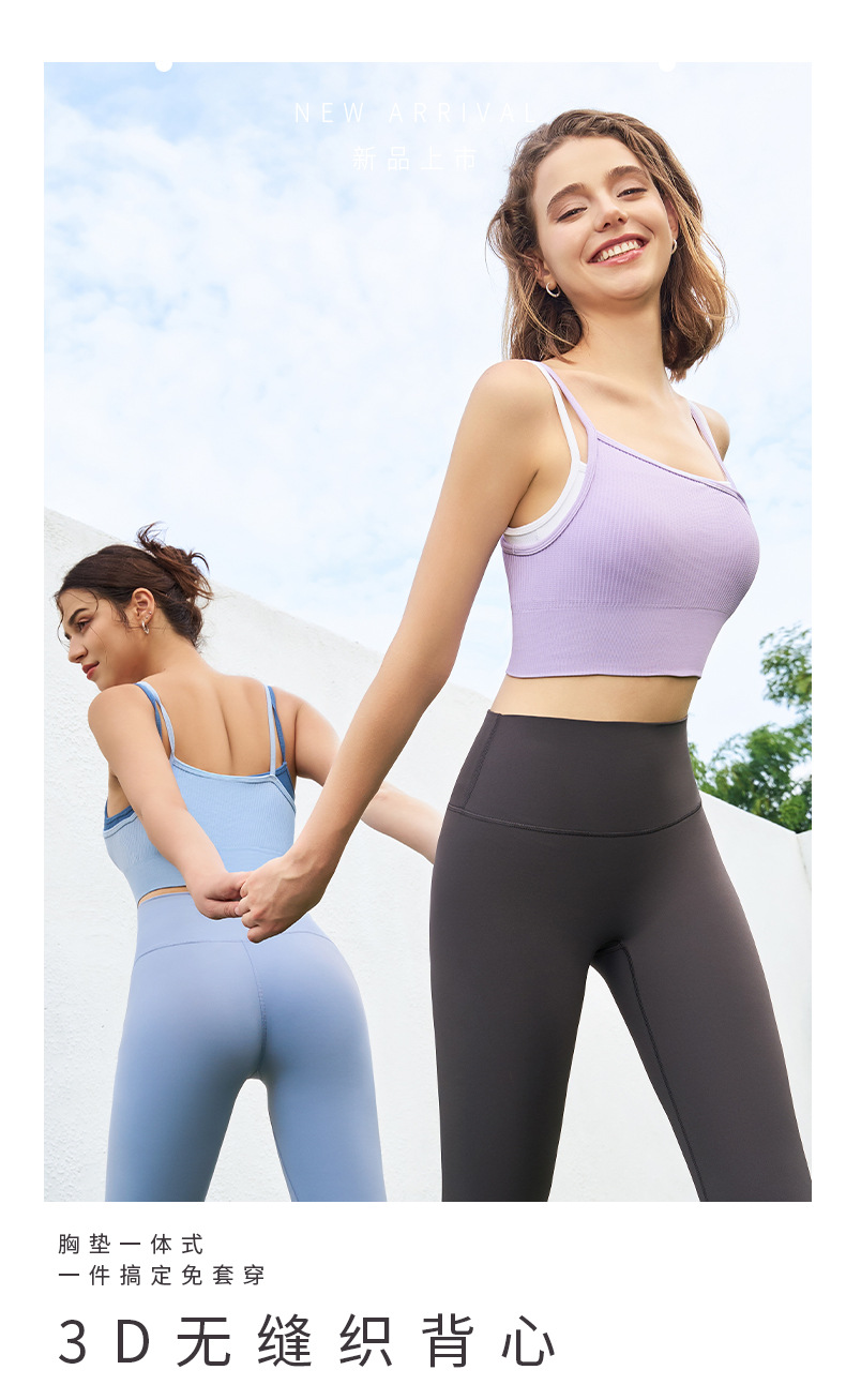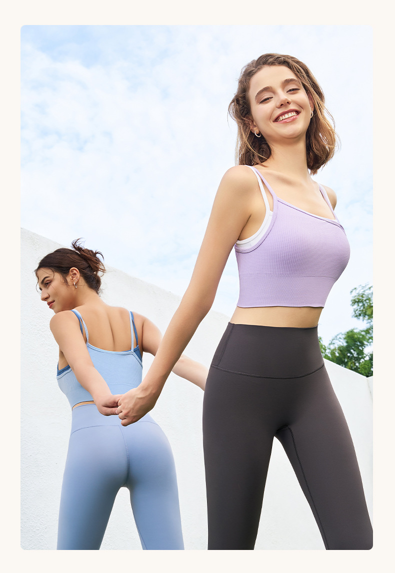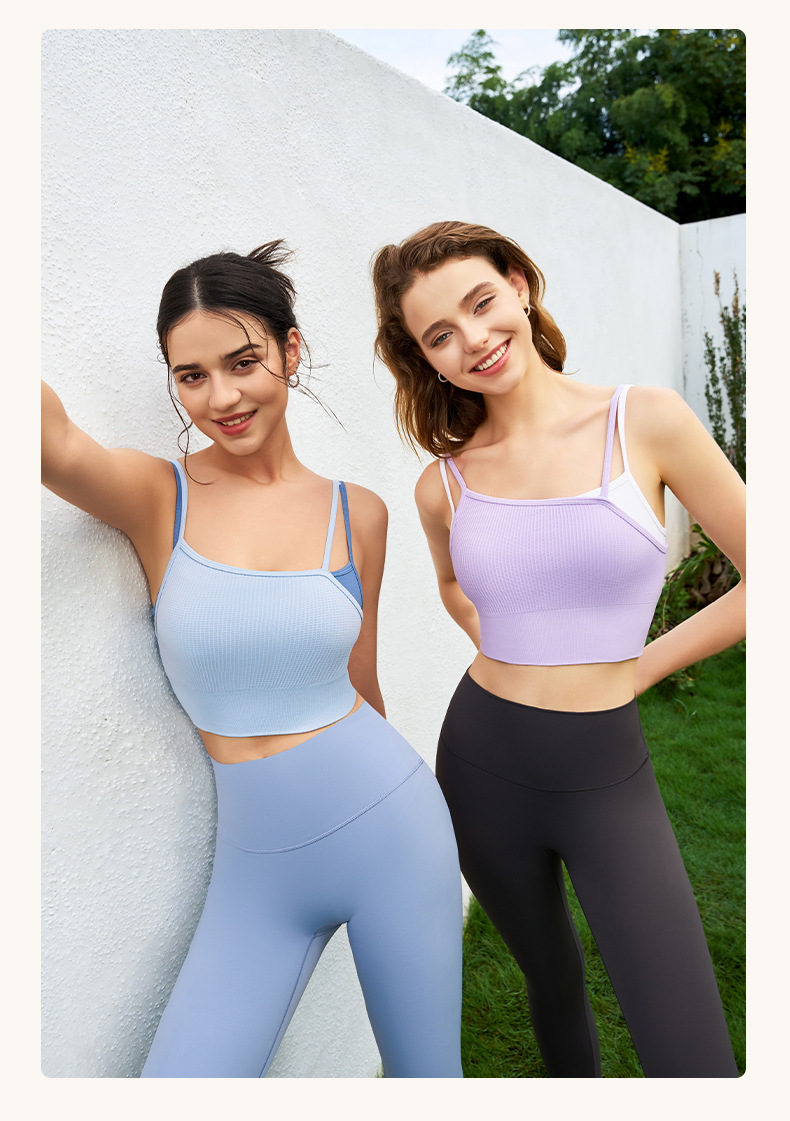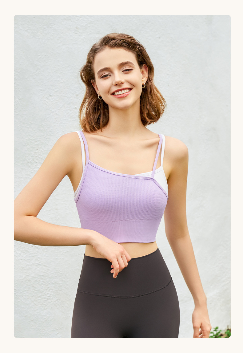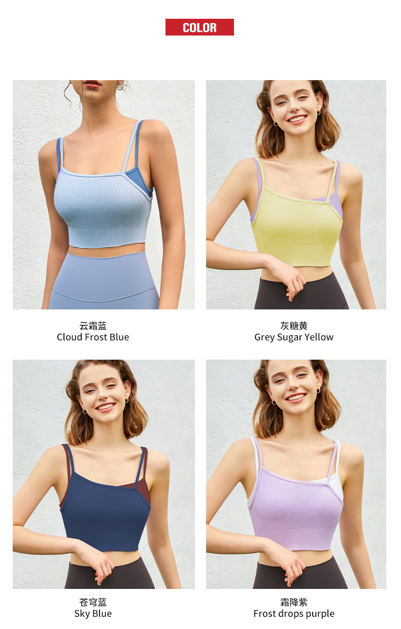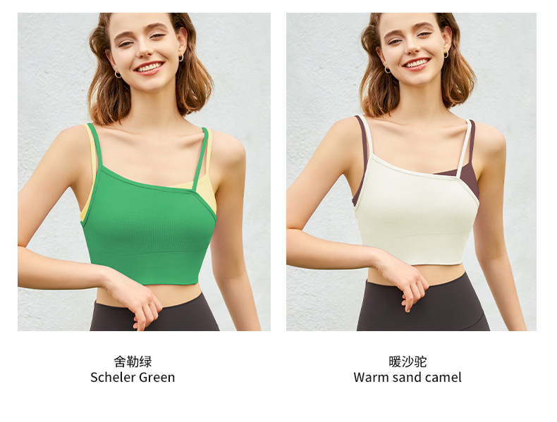 새로운 여름 스타일 2in1 자체 컵 가짜 투피스 대비 색상 질감은 요가 아름다운 등 속옷 외부 조끼 외부에 착용 가능