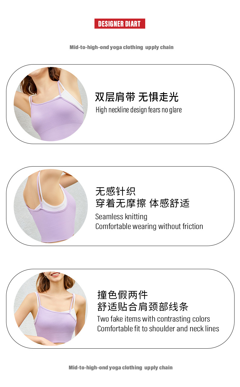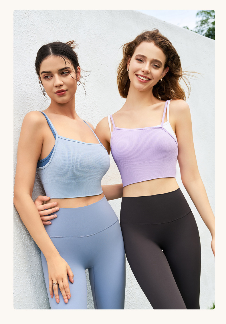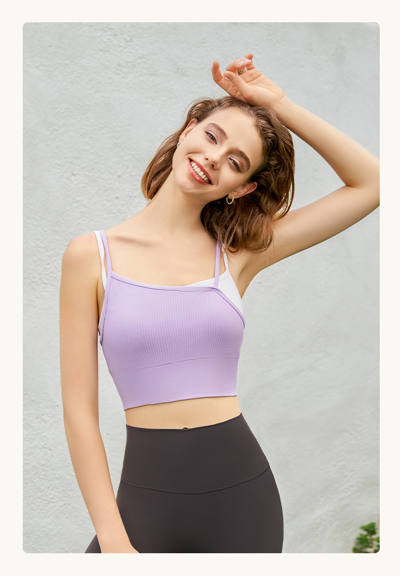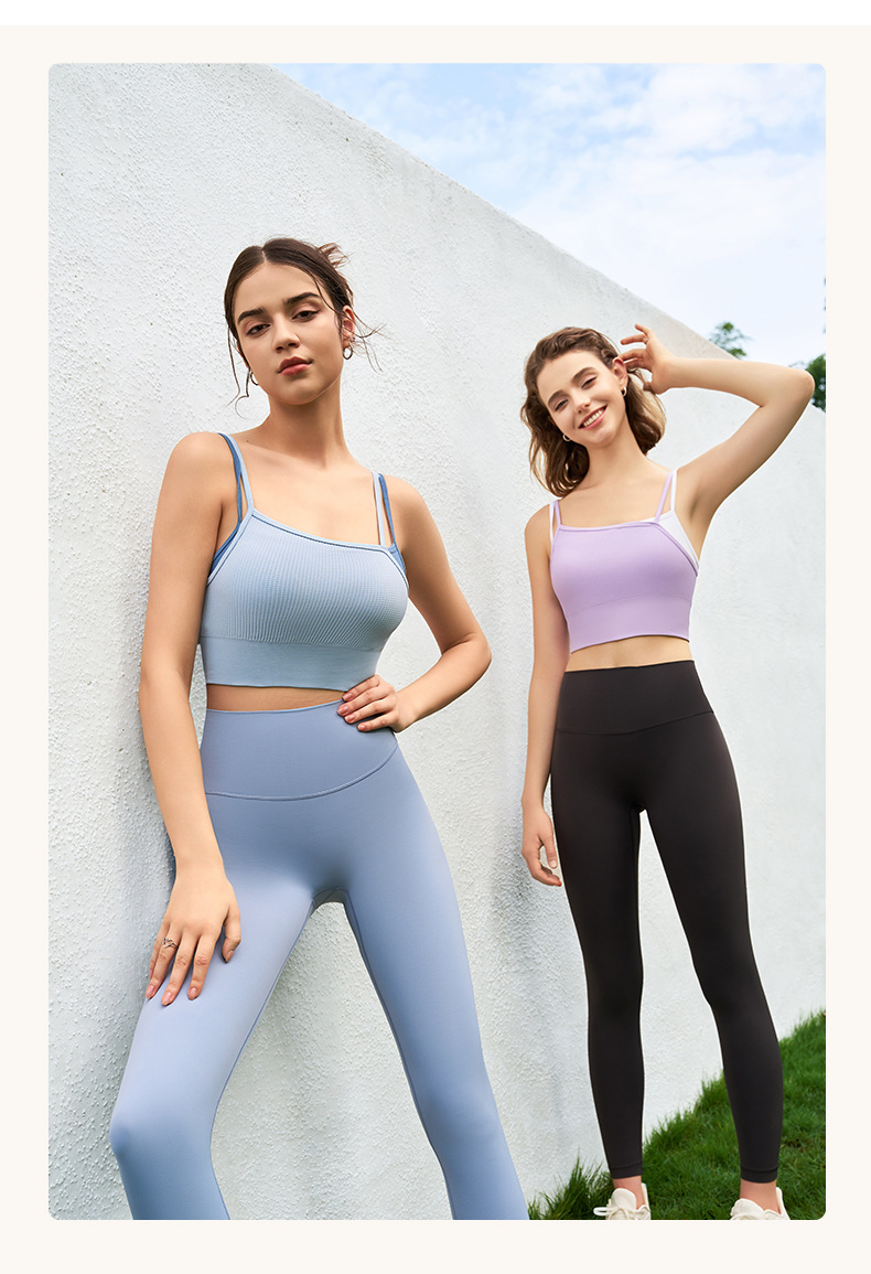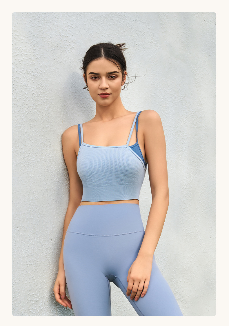 새로운 여름 스타일 2in1 자체 컵 가짜 투피스 대비 색상 질감은 요가 아름다운 등 속옷 외부 조끼 외부에 착용 가능