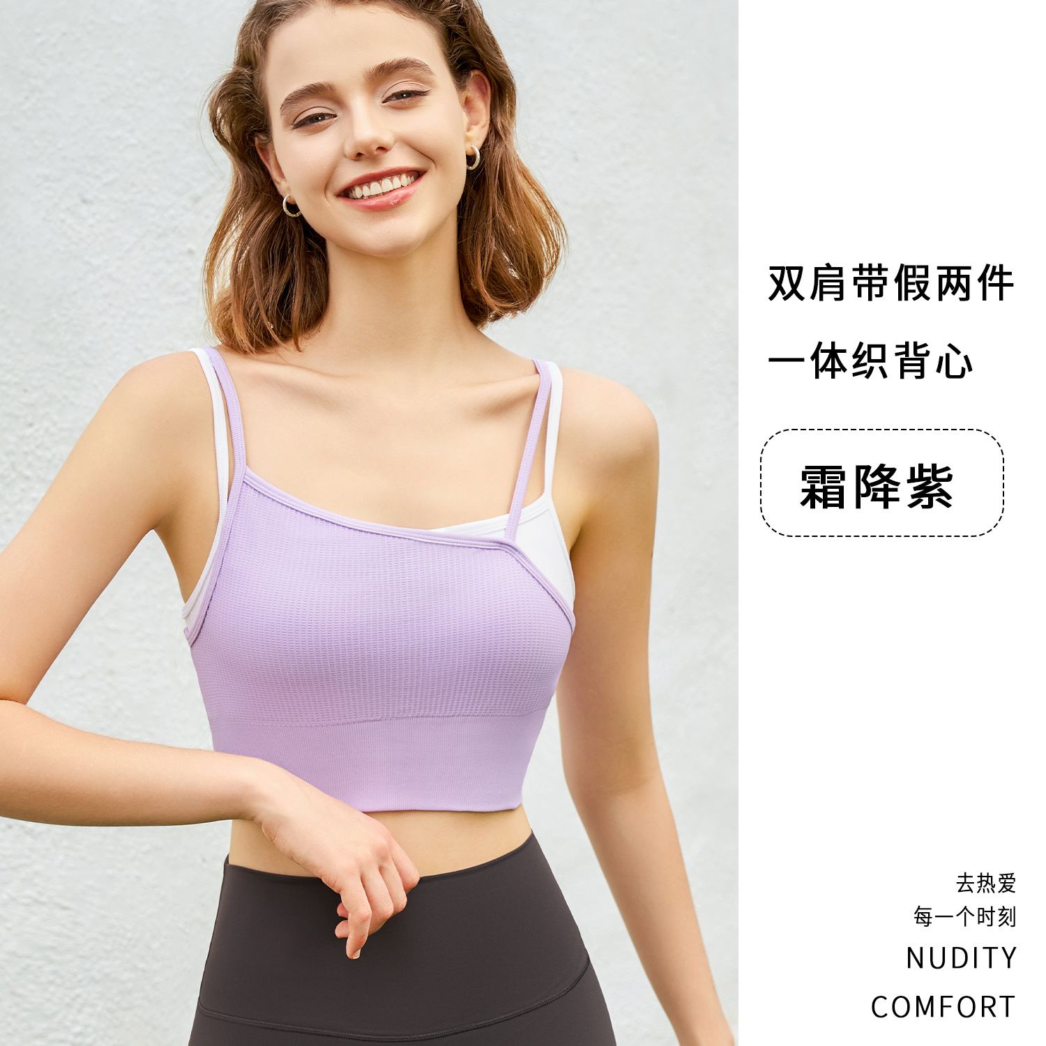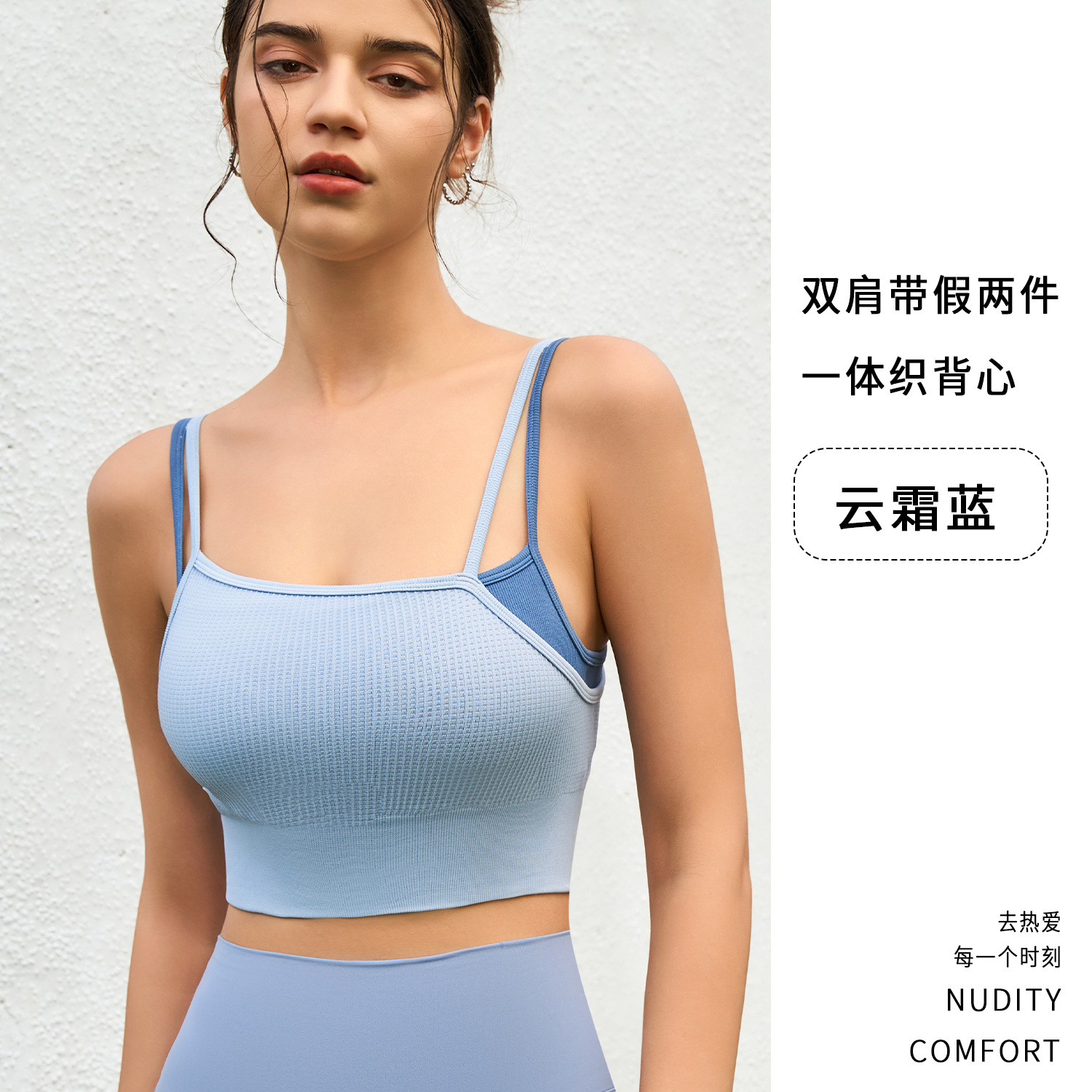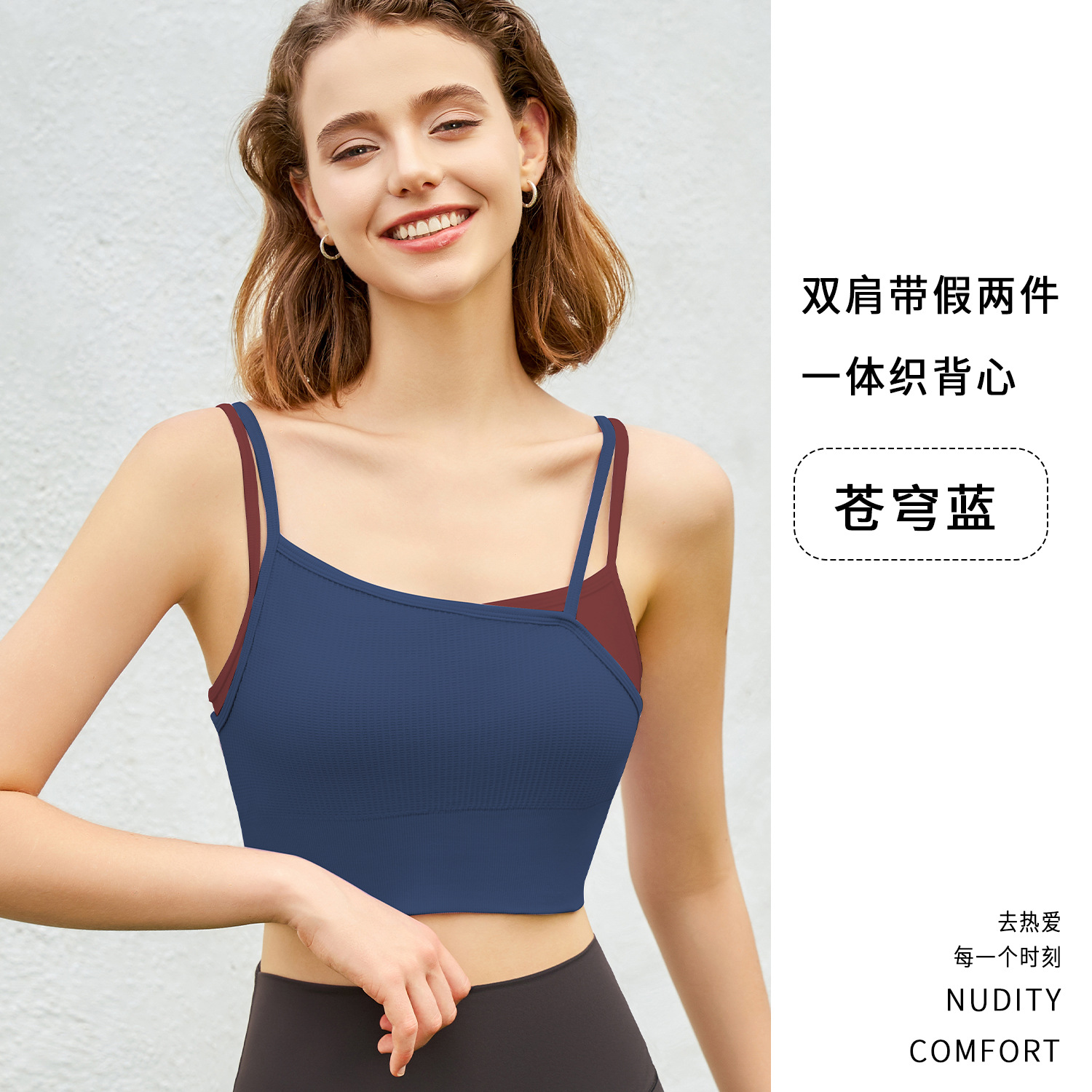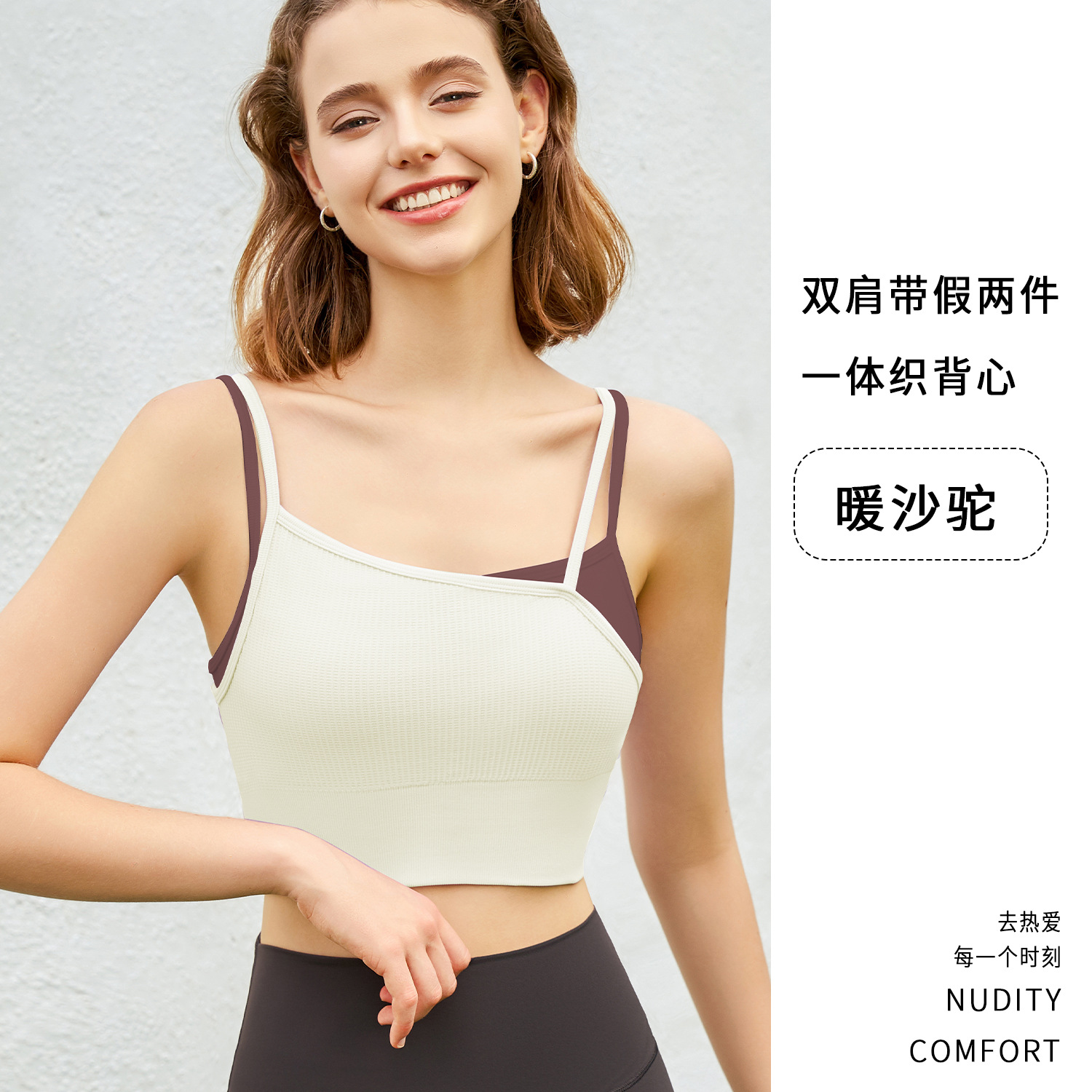 새로운 여름 스타일 2in1 자체 컵 가짜 투피스 대비 색상 질감은 요가 아름다운 등 속옷 외부 조끼 외부에 착용 가능