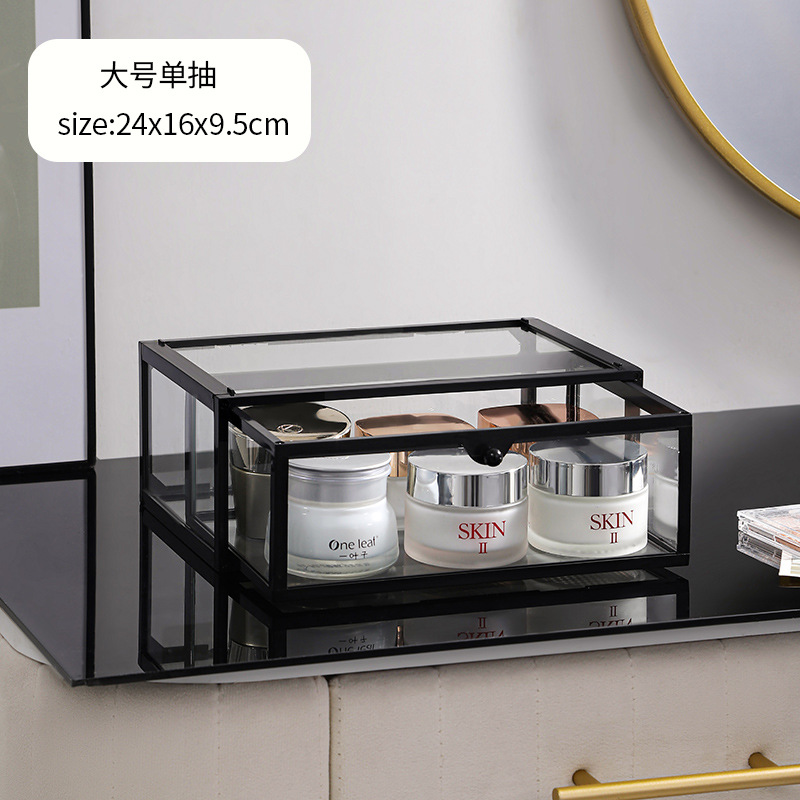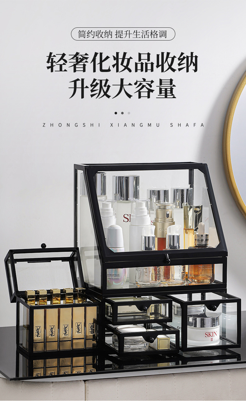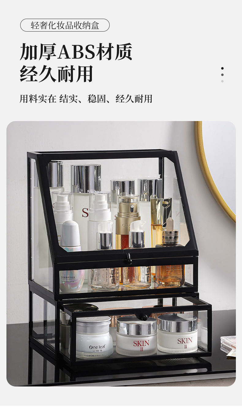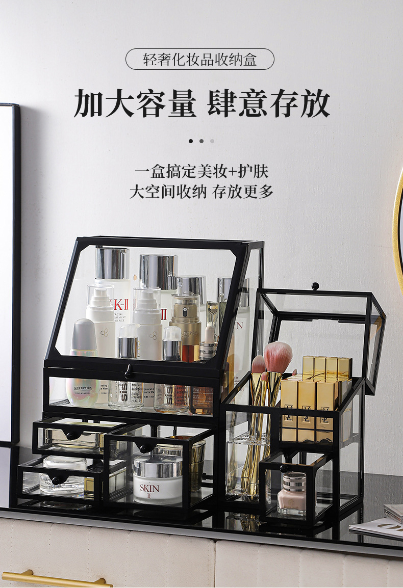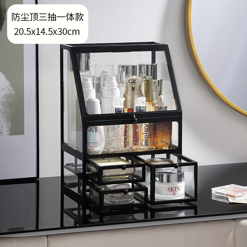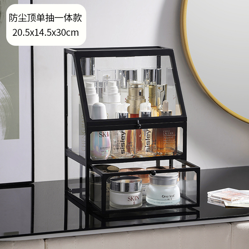 화장품 저장 상자 데스크탑 고급 먼지 방지 대용량 유리 서랍 드레싱 테이블 스킨 케어 스토리지 랙스토어 가기