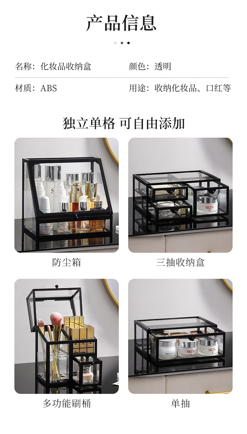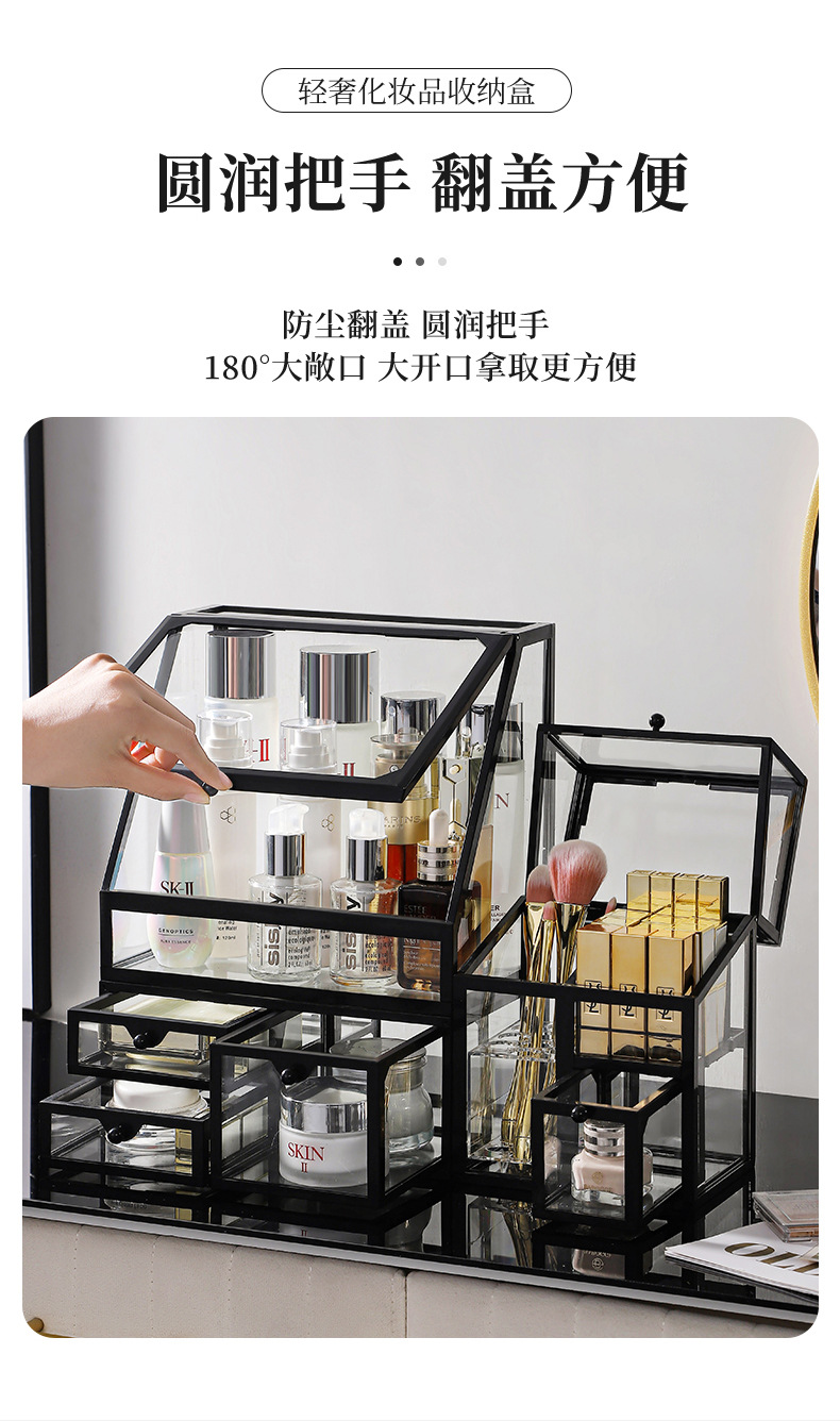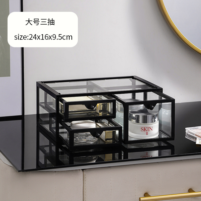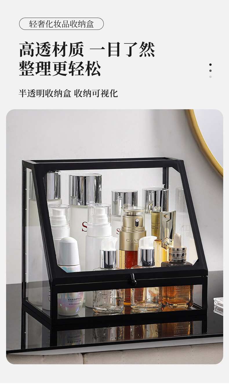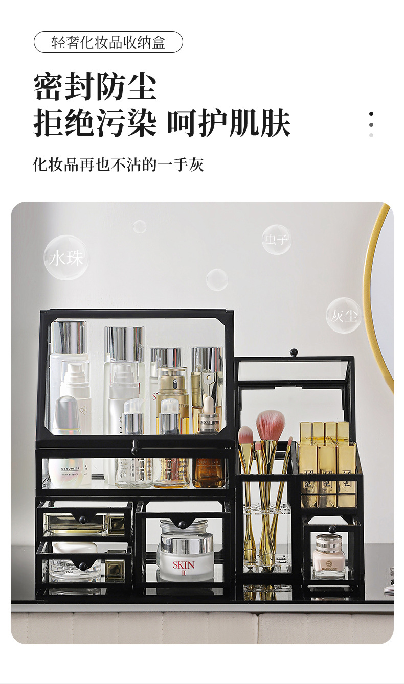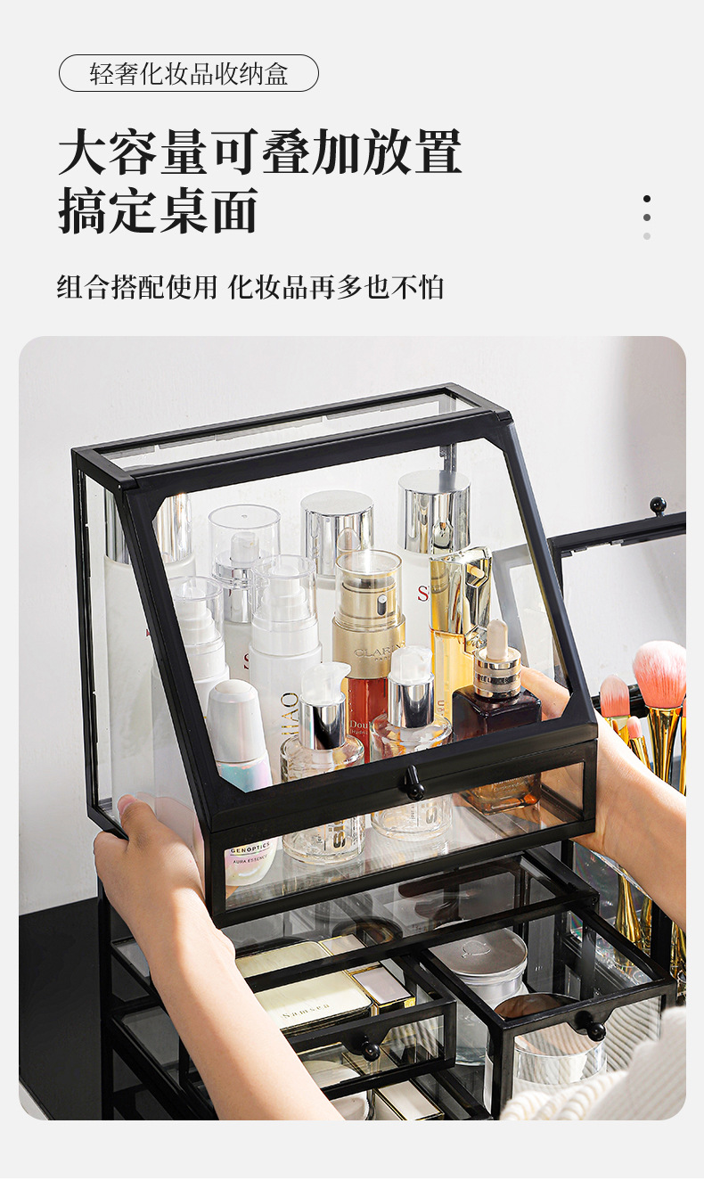 화장품 저장 상자 데스크탑 고급 먼지 방지 대용량 유리 서랍 드레싱 테이블 스킨 케어 스토리지 랙스토어 가기