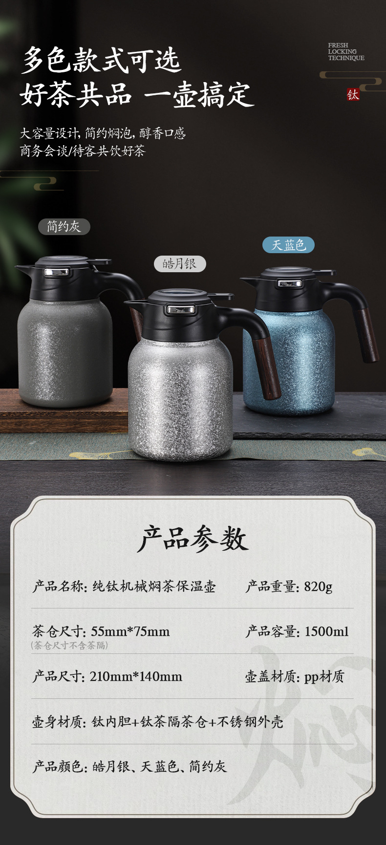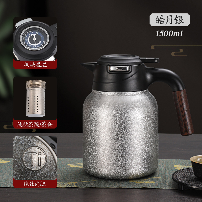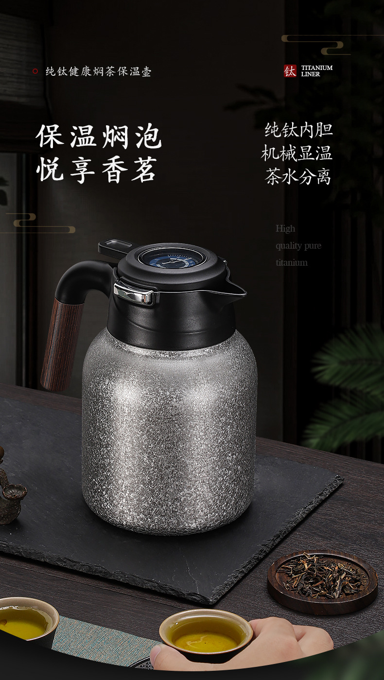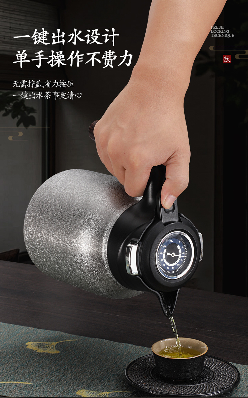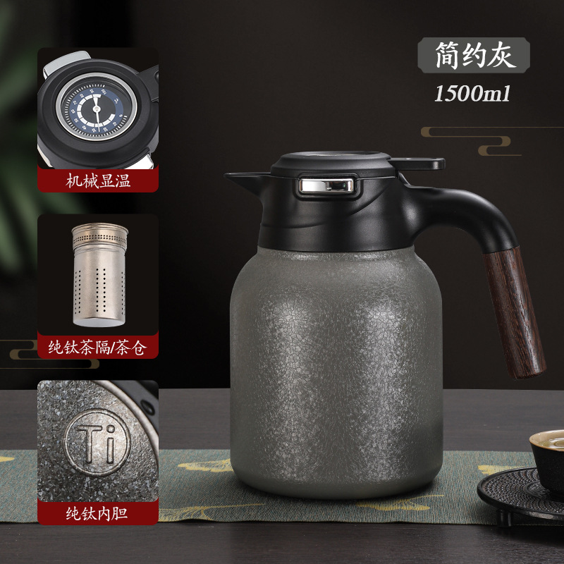 순수한 티타늄 디스플레이 온도 스튜 주전자 높은 색상 가치 차 물 분리 열 절연 주전자 야외 가정용 대용량 휴대용 열 절연 주전자스토어 가기
