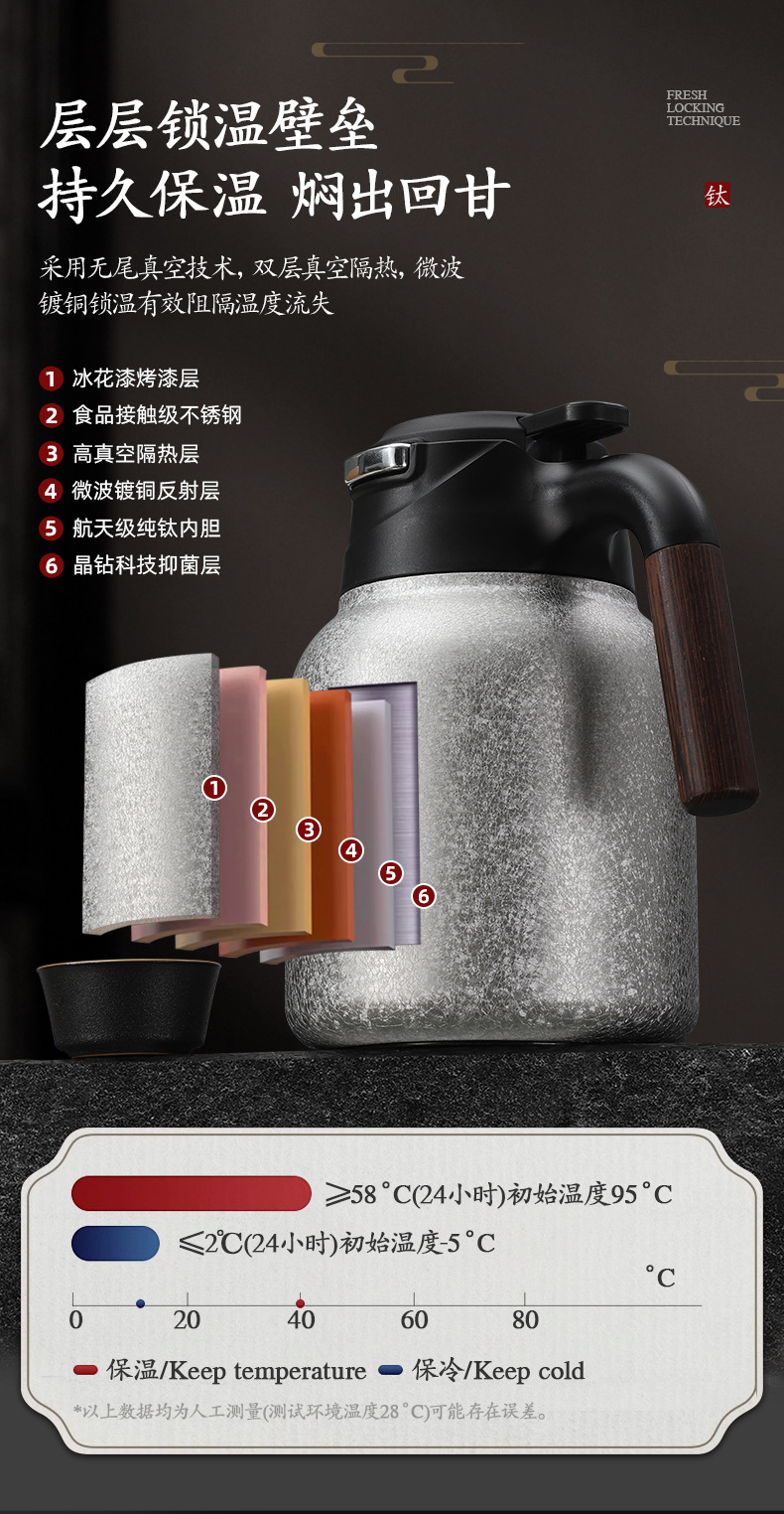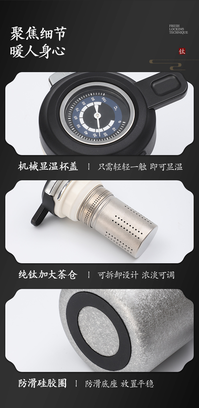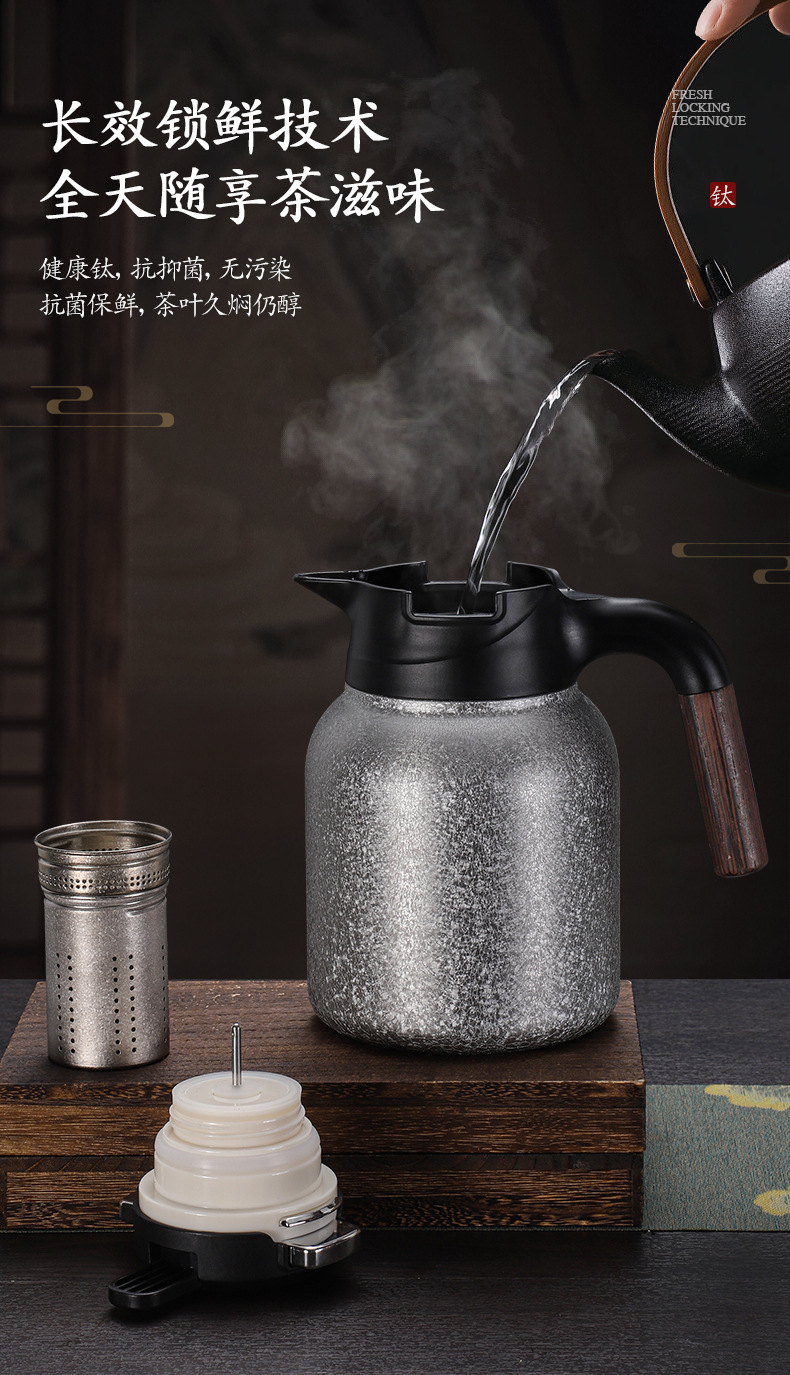 순수한 티타늄 디스플레이 온도 스튜 주전자 높은 색상 가치 차 물 분리 열 절연 주전자 야외 가정용 대용량 휴대용 열 절연 주전자스토어 가기