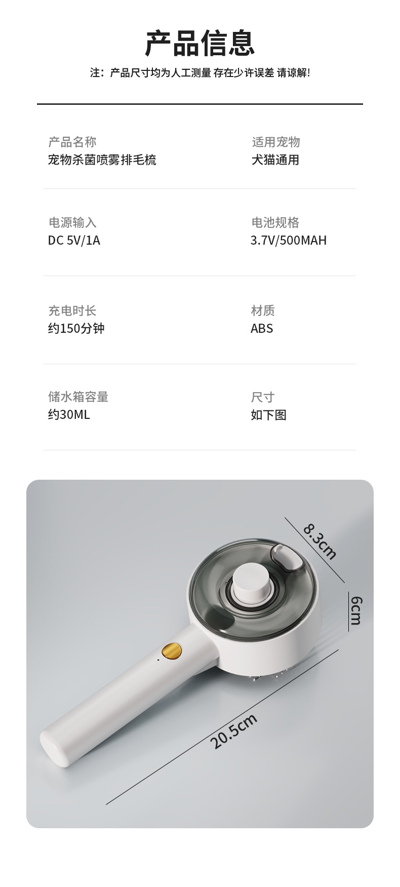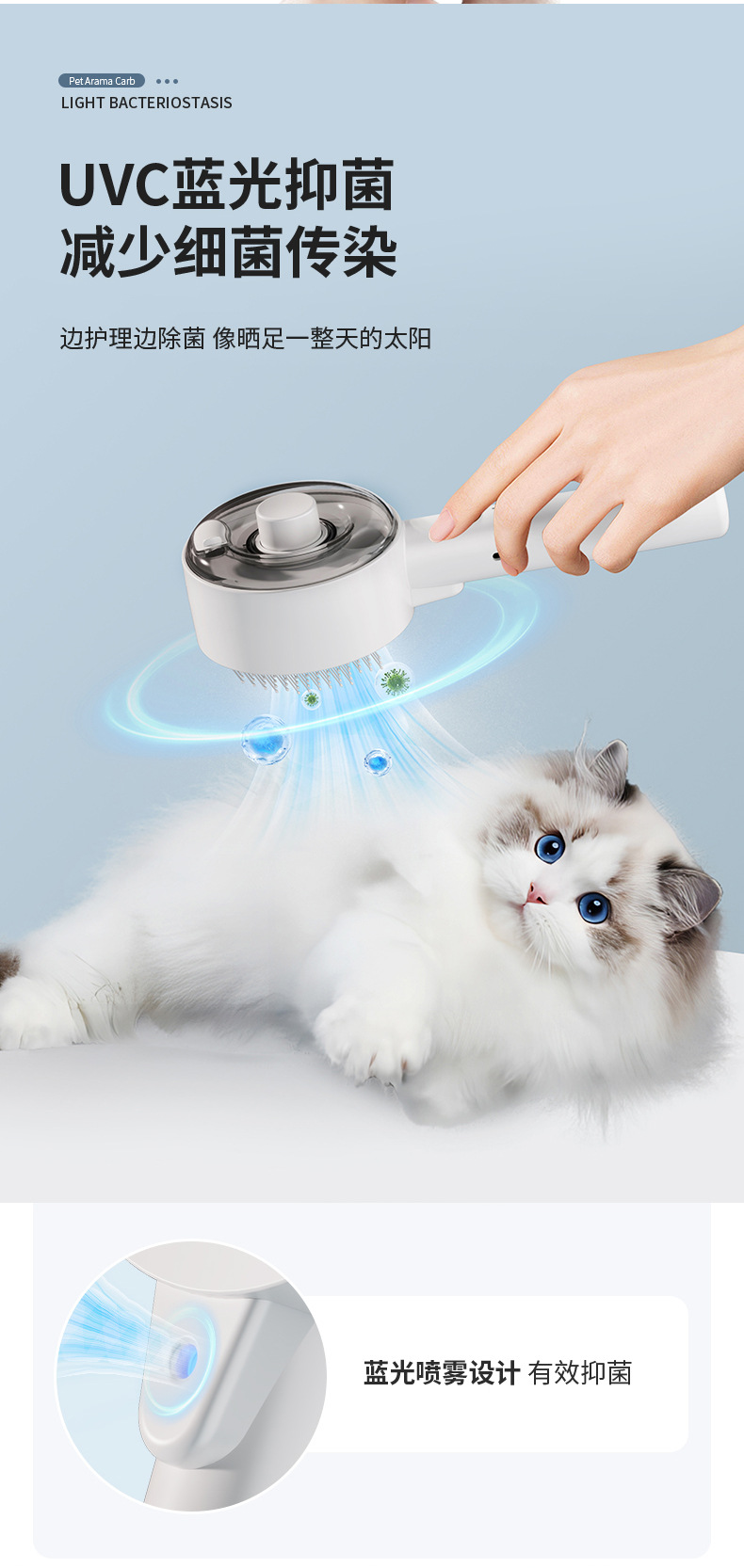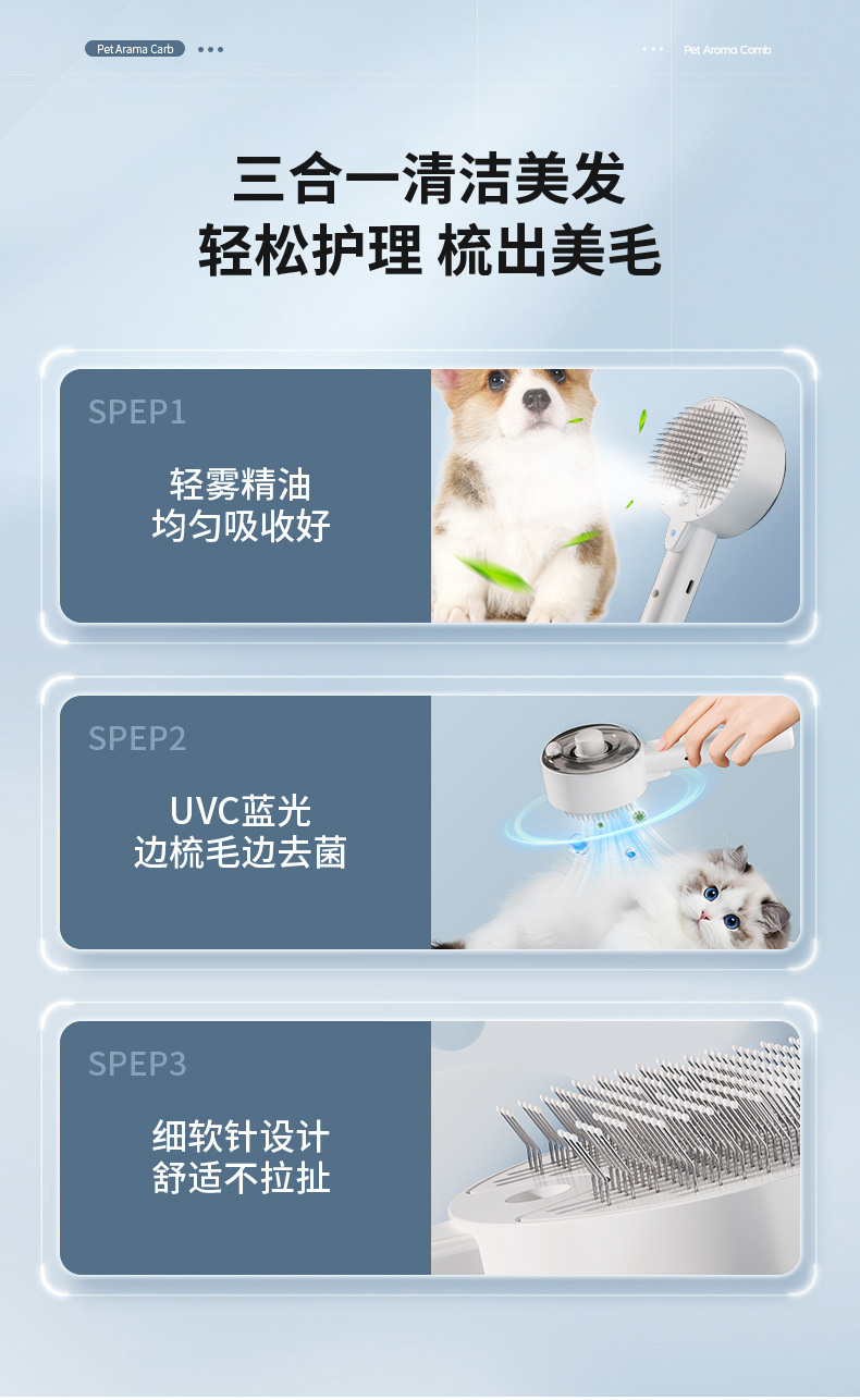 전기 스프레이 애완동물샵 강아지 고양이 털 제거 빗 고양이 빗 자외선 살균 진드기 제거 빗질 도구스토어 가기