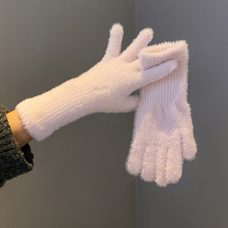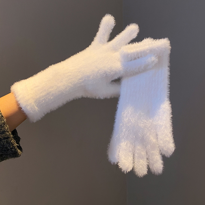 흰색 모조 토끼 모피 라인 장갑 여성 겨울 한국식 기모 모피 학생 쓰기 중장 팔 가드