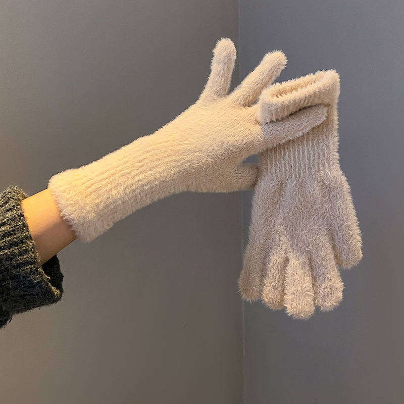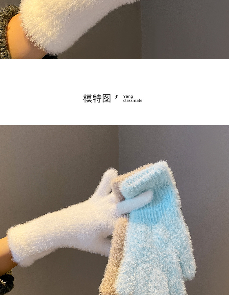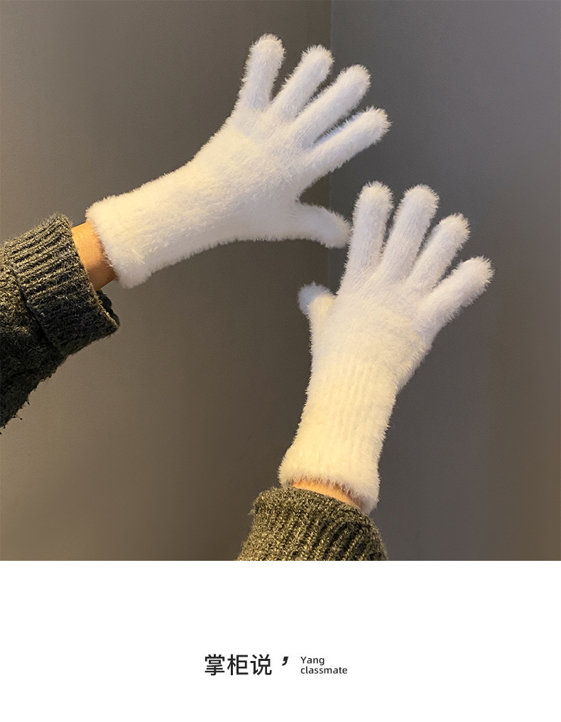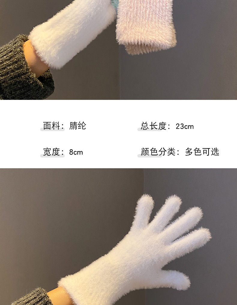 흰색 모조 토끼 모피 라인 장갑 여성 겨울 한국식 기모 모피 학생 쓰기 중장 팔 가드스토어 가기