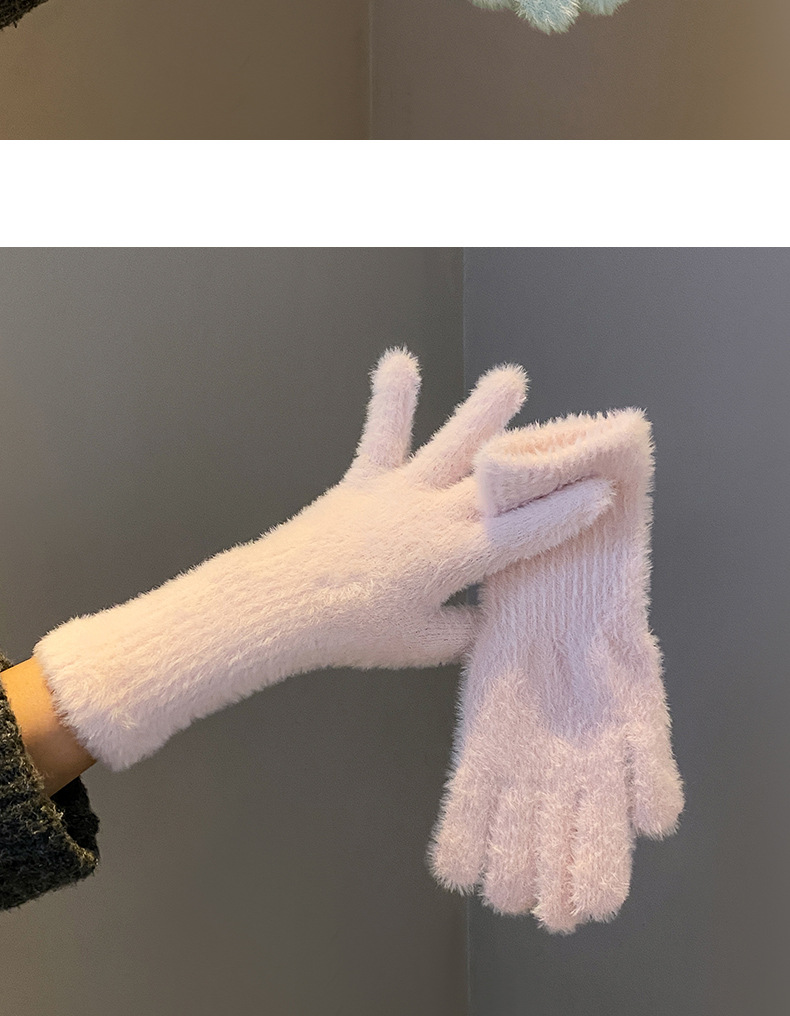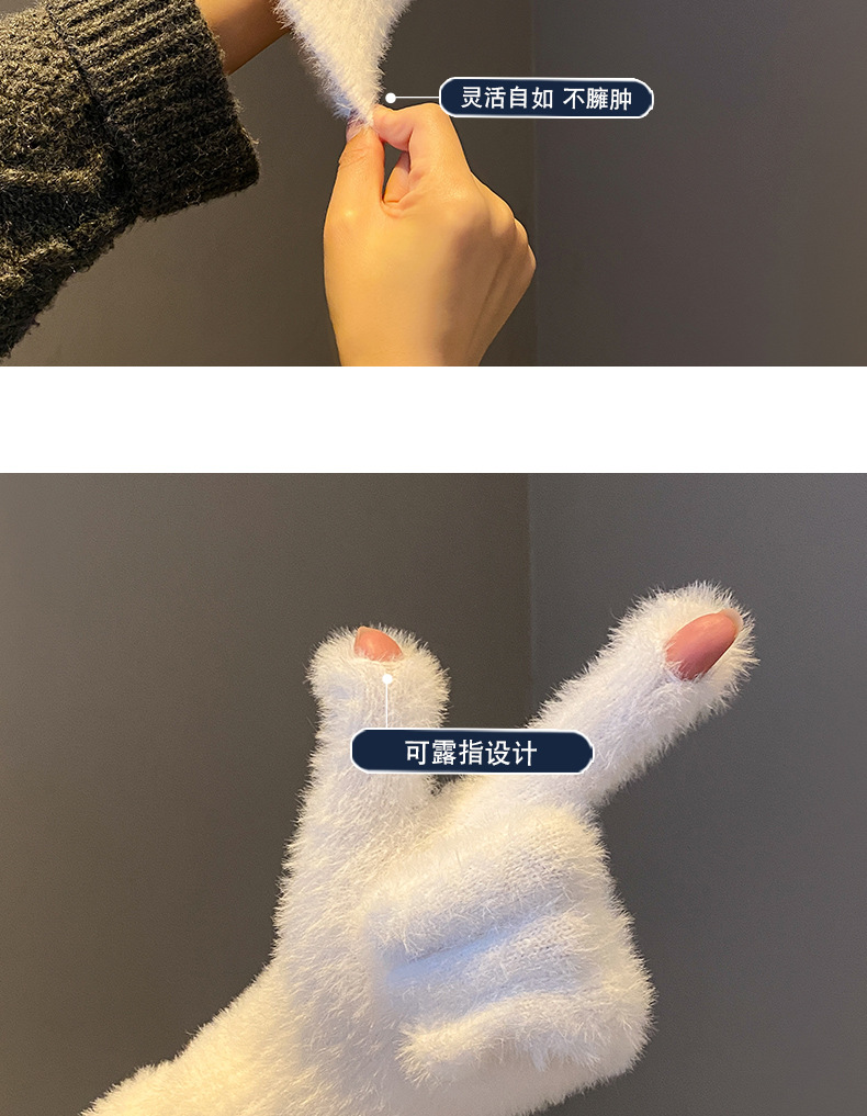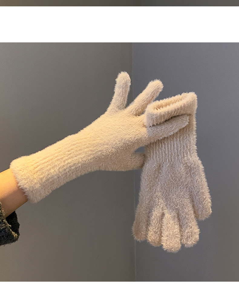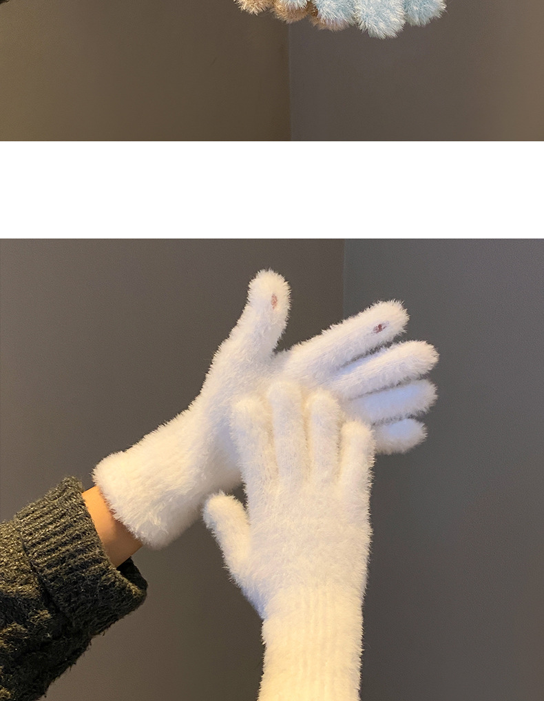 흰색 모조 토끼 모피 라인 장갑 여성 겨울 한국식 기모 모피 학생 쓰기 중장 팔 가드스토어 가기