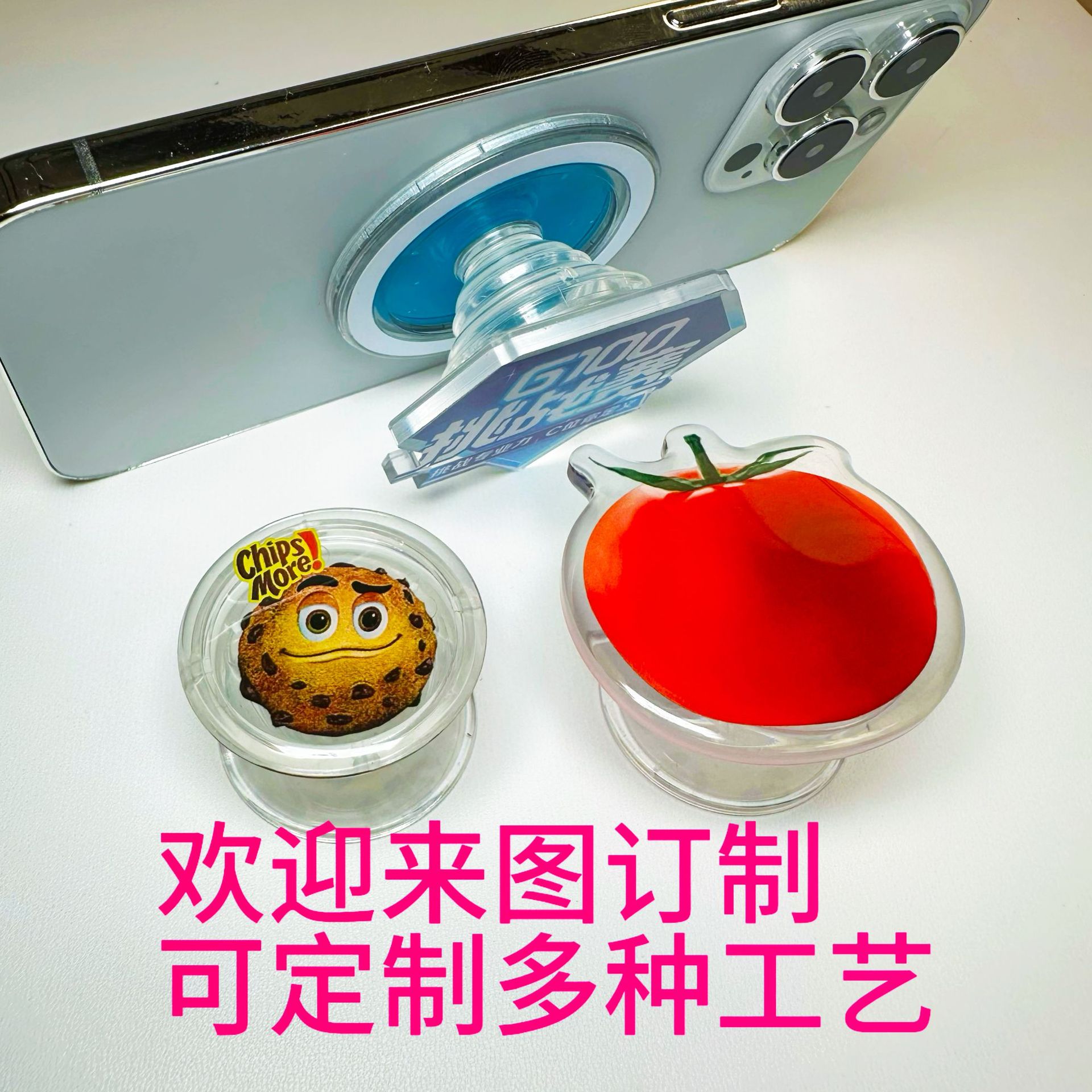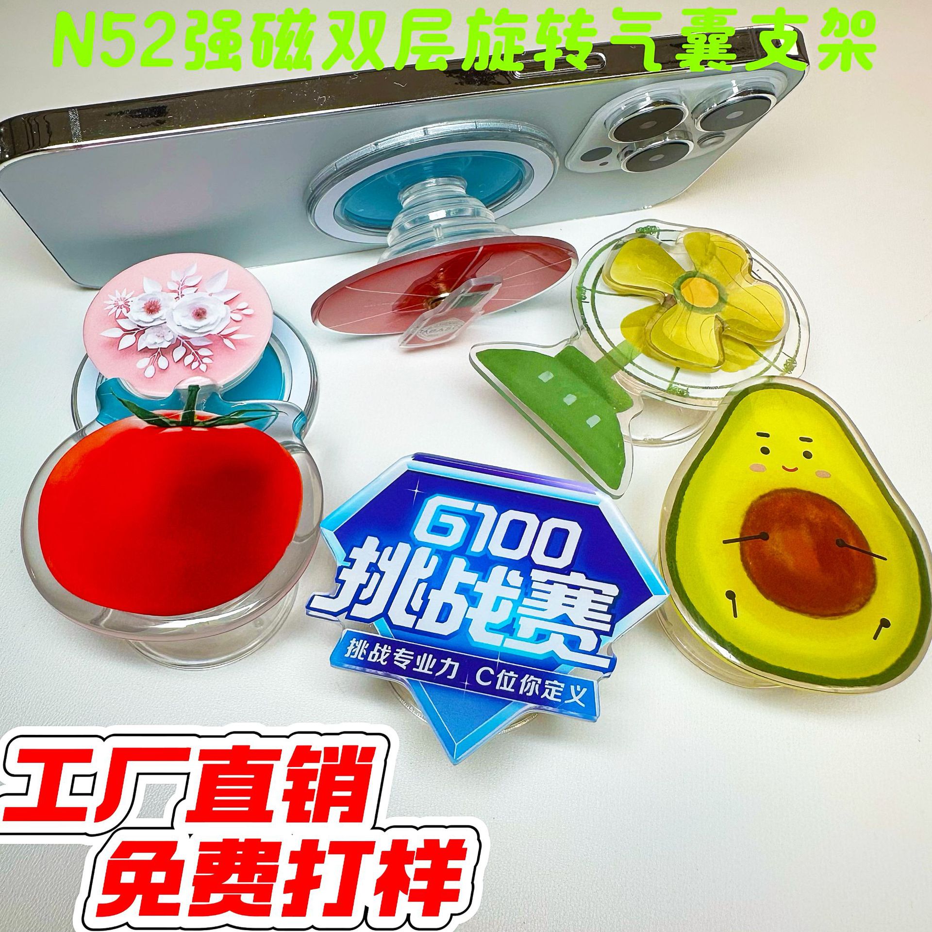 특수 모양의 아크릴 휴대 전화 에어백 브래킷 바람 회전 가능한 작은 선물 로고 데스크탑 애니메이션 마그네틱 브래킷스토어 가기