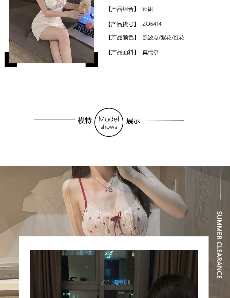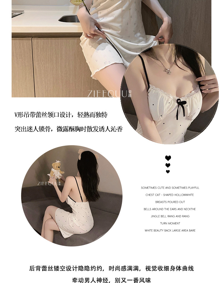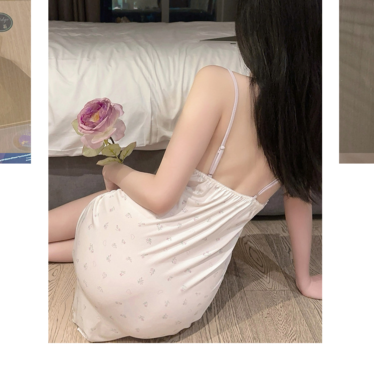 재미있는 섹시한 슬링 스트랩 꽃 레이스 파자마 달콤한 신선한 스타일 인쇄 된 나이트 드레스 가슴 패드 홈 의류 여성 6414스토어 가기