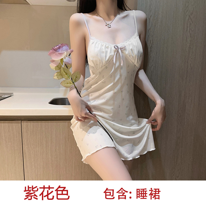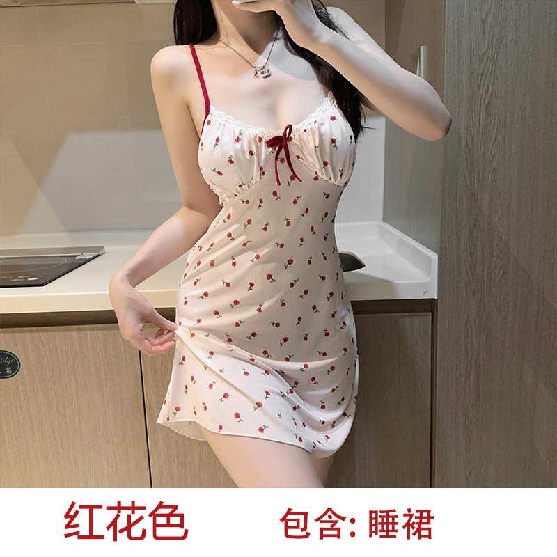 재미있는 섹시한 슬링 스트랩 꽃 레이스 파자마 달콤한 신선한 스타일 인쇄 된 나이트 드레스 가슴 패드 홈 의류 여성 6414