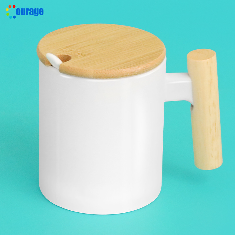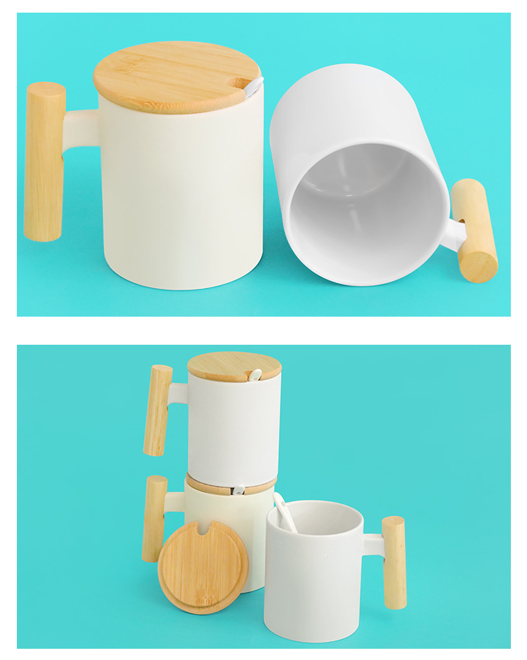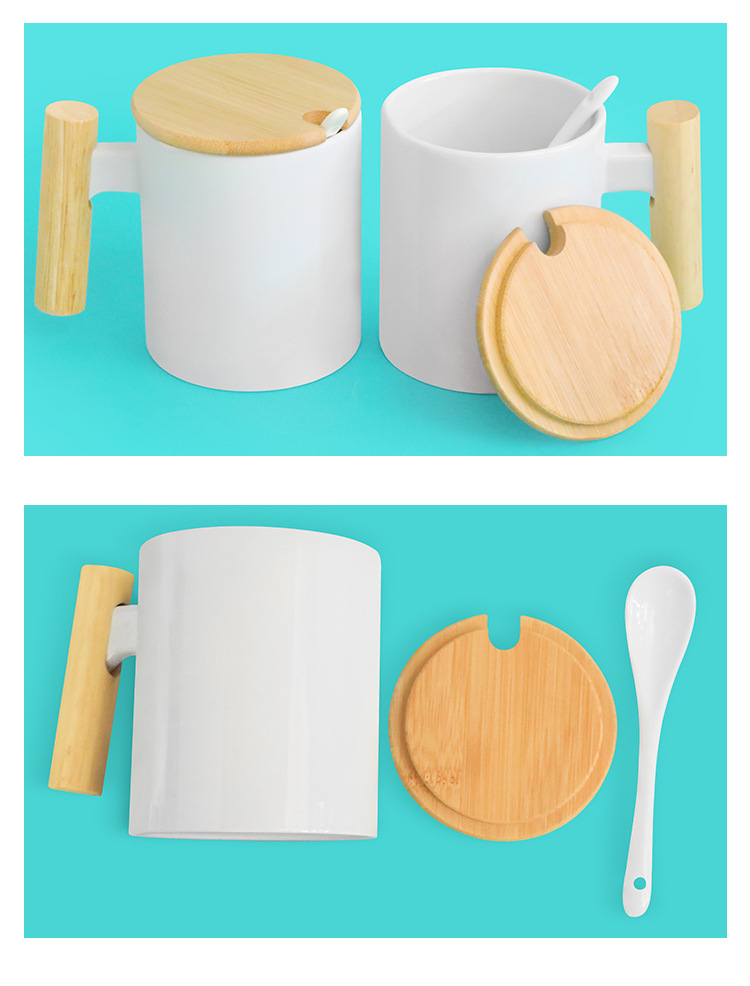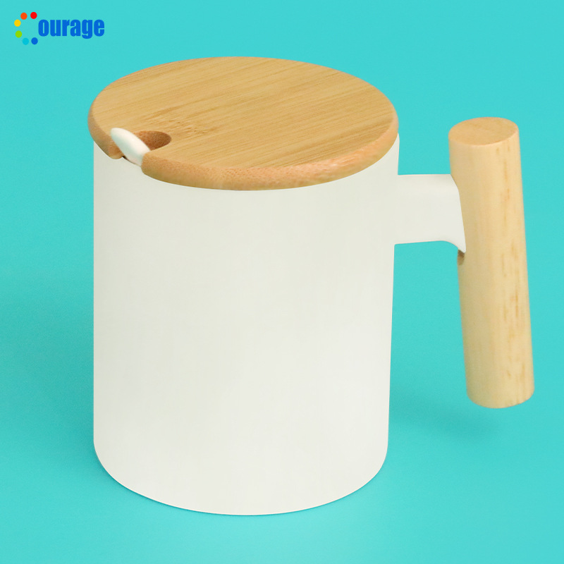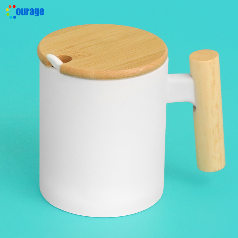 사무실 나무 손잡이 머그잔 커피 컵 베이지 프로스트 머그잔 간단한 물 컵 나무 컵 뚜껑 숟가락