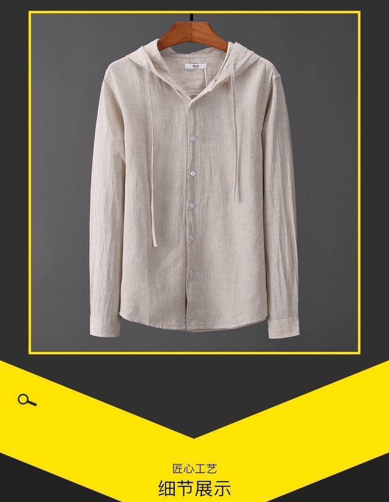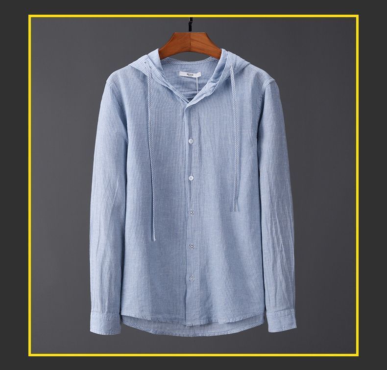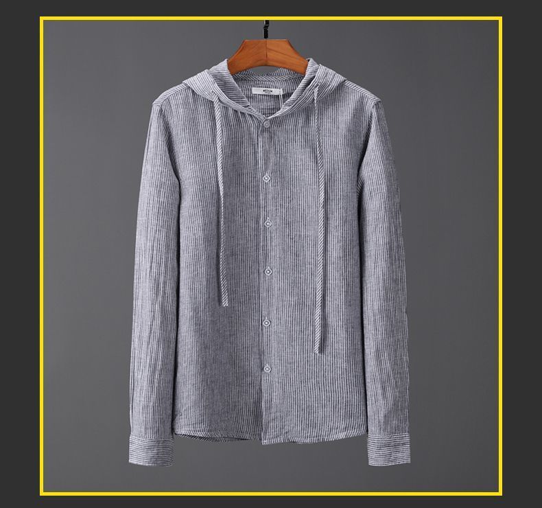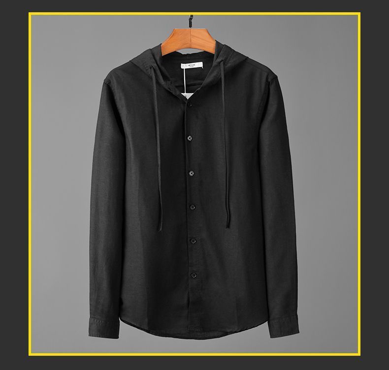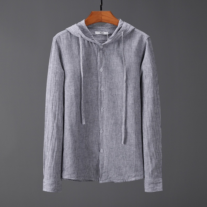 후드 테더 얇은 느슨한 리넨 긴 소매 남성용 셔츠 청소년 코튼 리넨 통기성 리넨 셔츠 최고 남성 패션스토어 가기